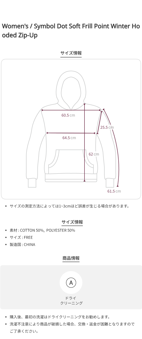 Symbol Dot Soft Frill Point Winter Hooded Zip-Up [Black]