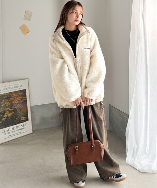 表面のボア異素材切り替えで、カジュアルなのに旬顔なデザイン。