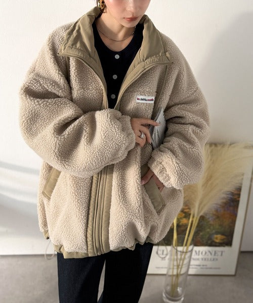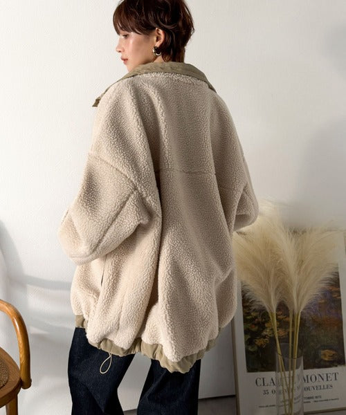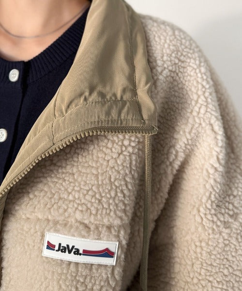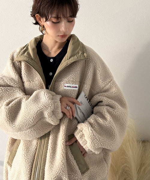 《JaVaジャバコラボ》冷え知らず&洒落見えアウター。あったかボア異素材切り替えブルゾン jv1240102