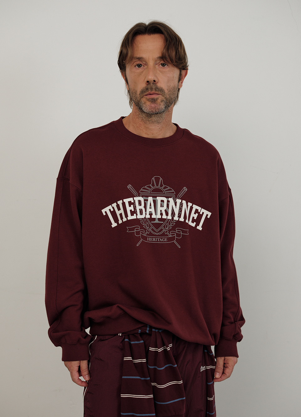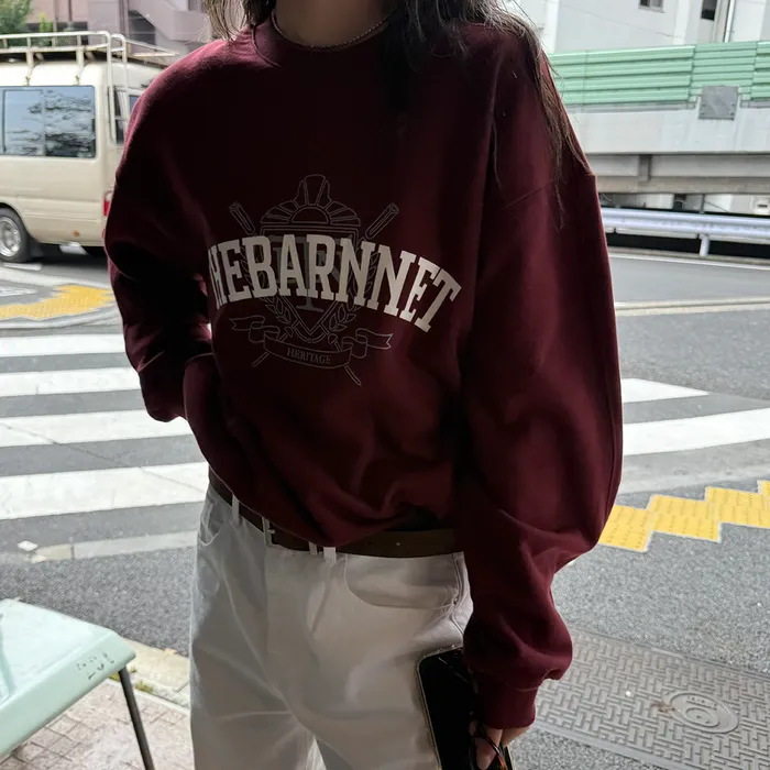 トーンダウンしたバーガンディカラーと柔らかくしっかりしたコットン生地 ラウンドネックとエッジリップ組織仕様のスウェットシャツタイプ ファブリックカラーに備えた配色メインロゴプリント コットン100% Burgundy Cotton ラウンドネック Drop shoulder Ribbed trim Contrast Logo Printing