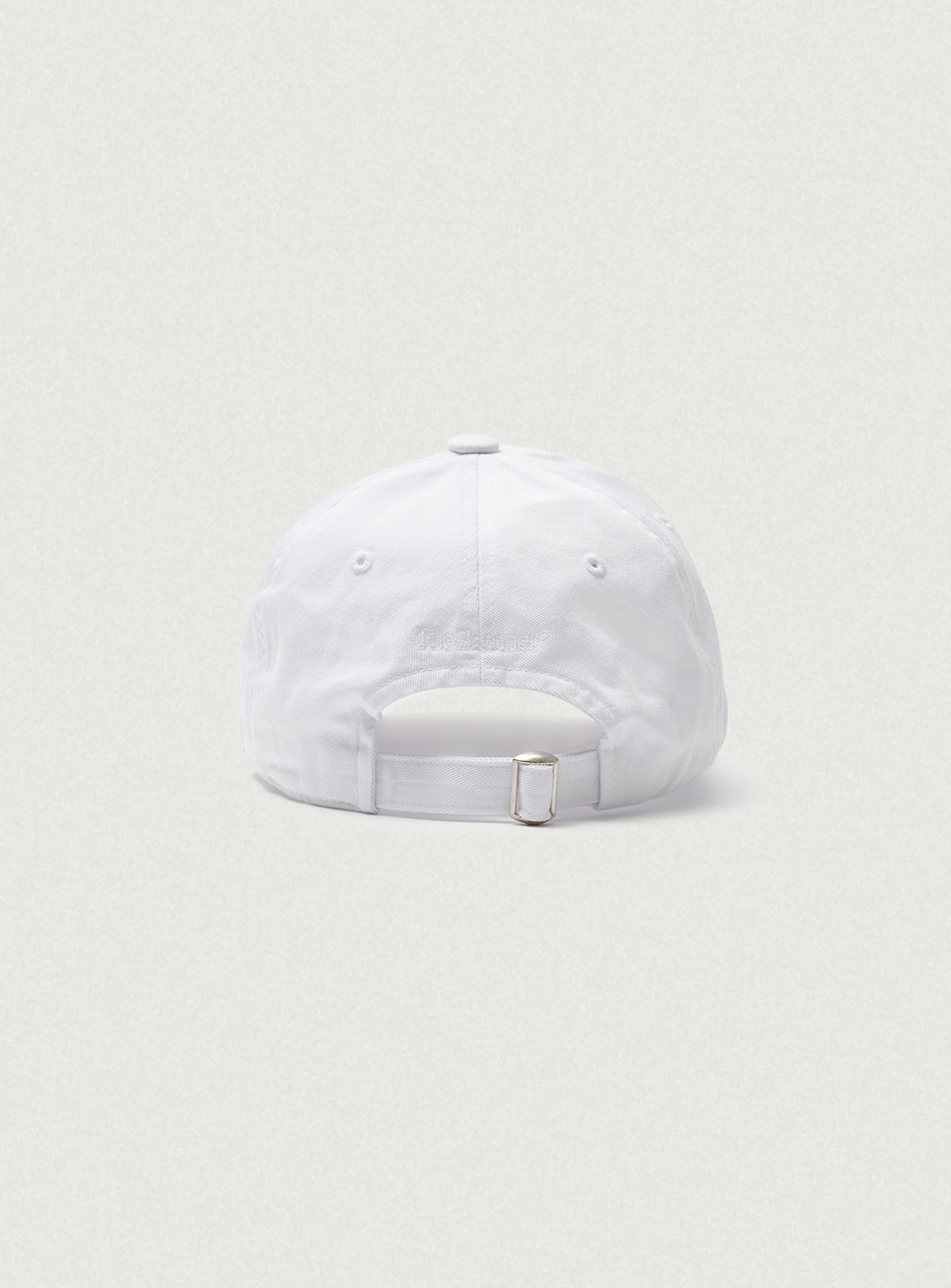 調節可能なストラップ付き、アンストラクチャー仕様のベースボールキャップタイプ。