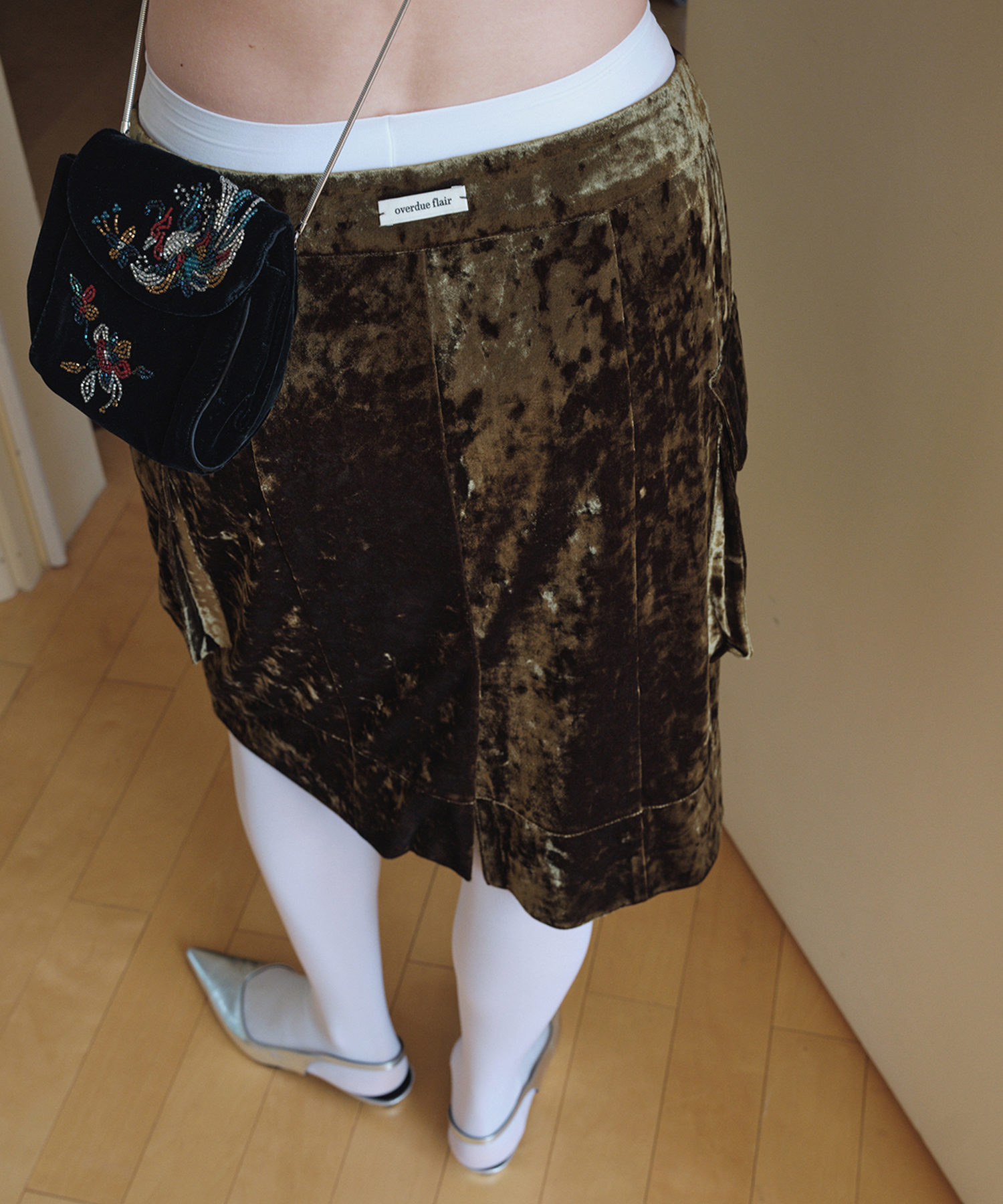 【購入特典】[yang x overdue flair] VELVET CARGO MIDI SKIRT_OLIVE KHAKI