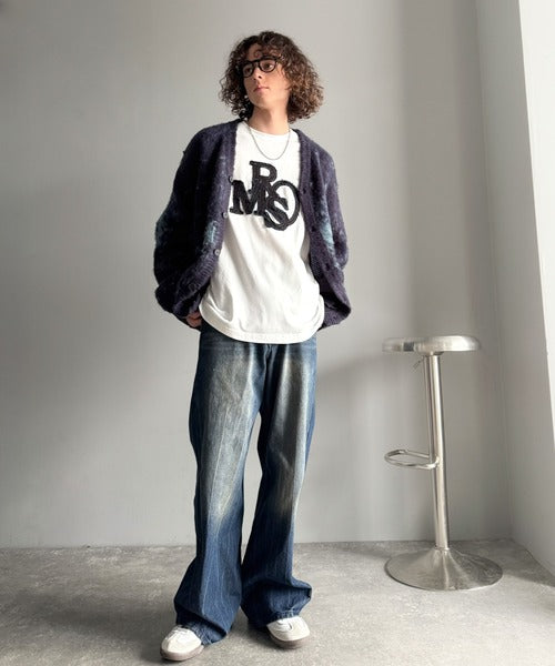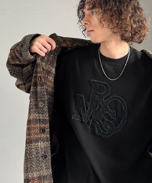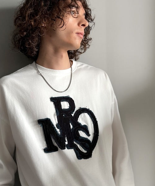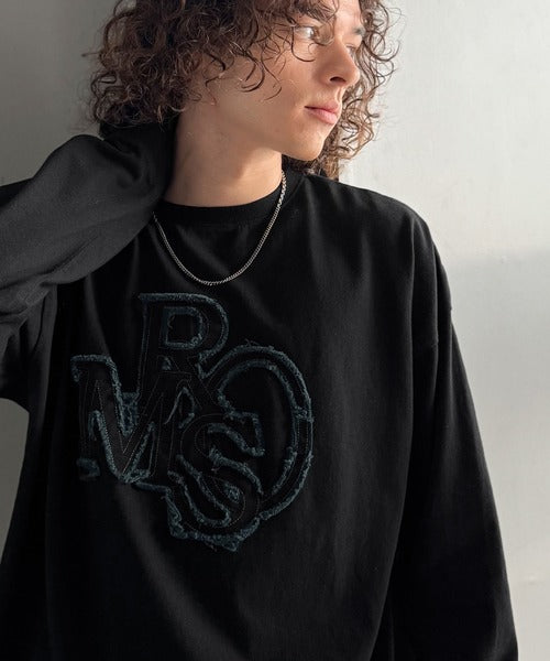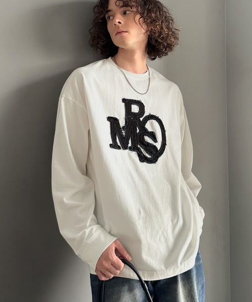 フリンジワッペンロンTは、印象的なダメージ加工が施されたデザインが特徴。