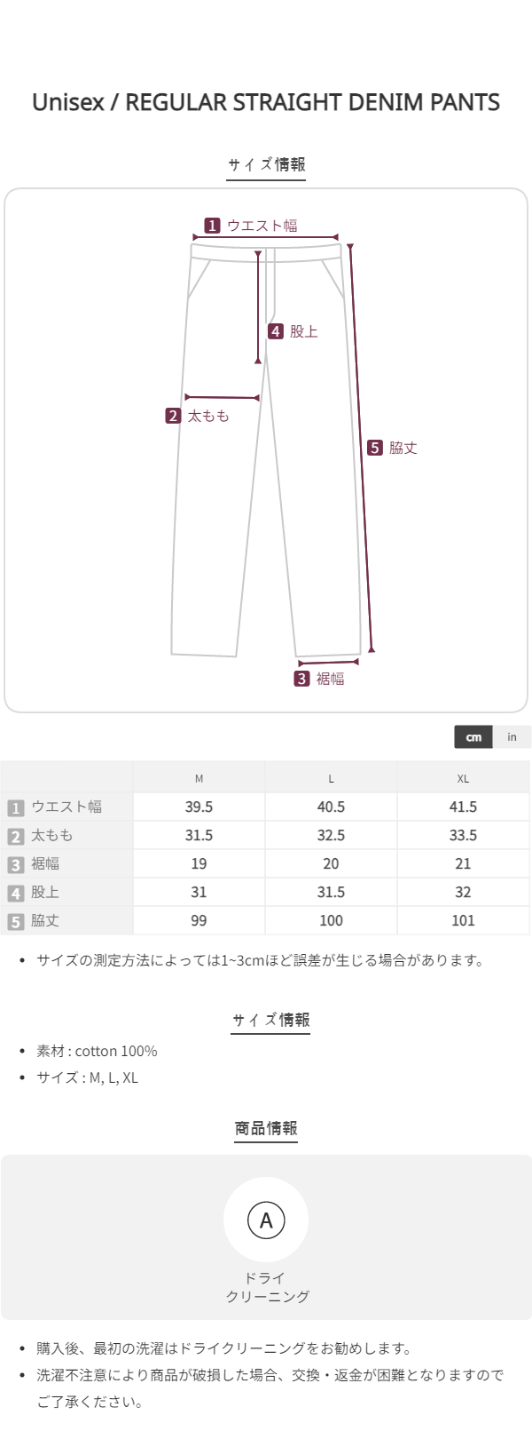 REGULAR STRAIGHT DENIM PANTS [WASHED DEEP BLUE]