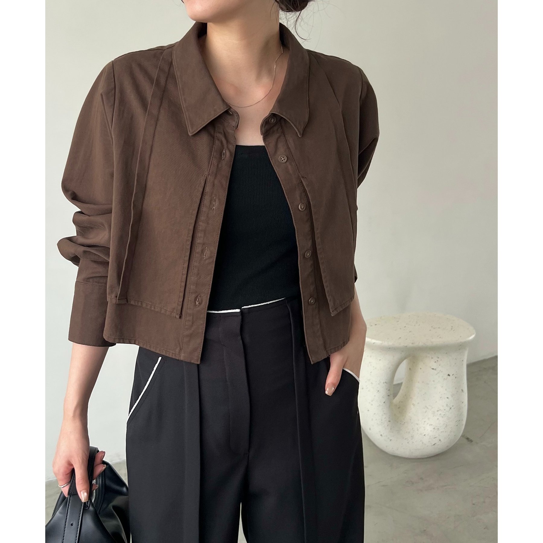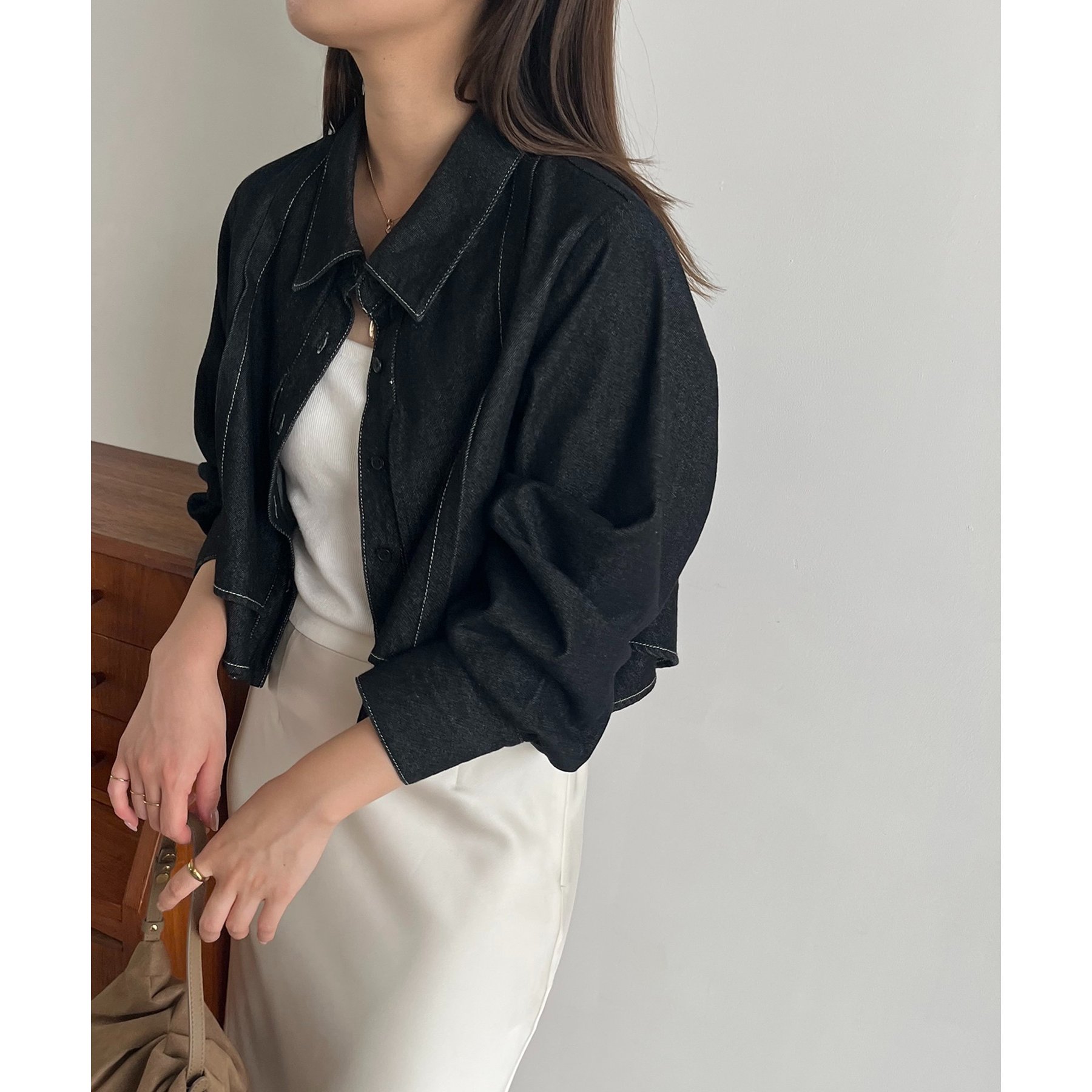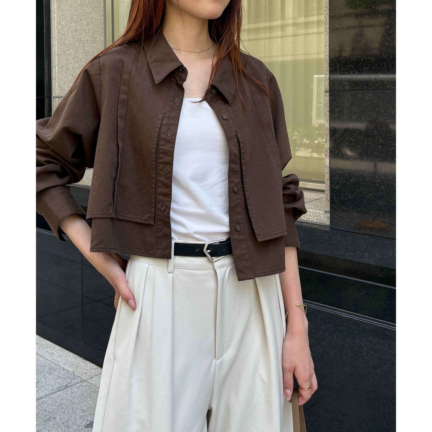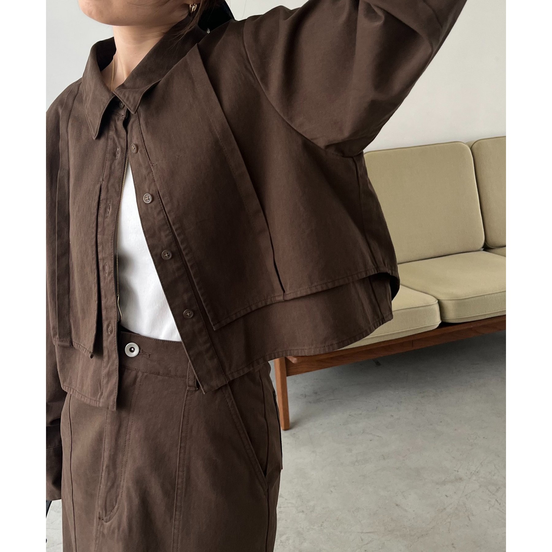 羽織やトップスとして長く使えるクロップシャツ