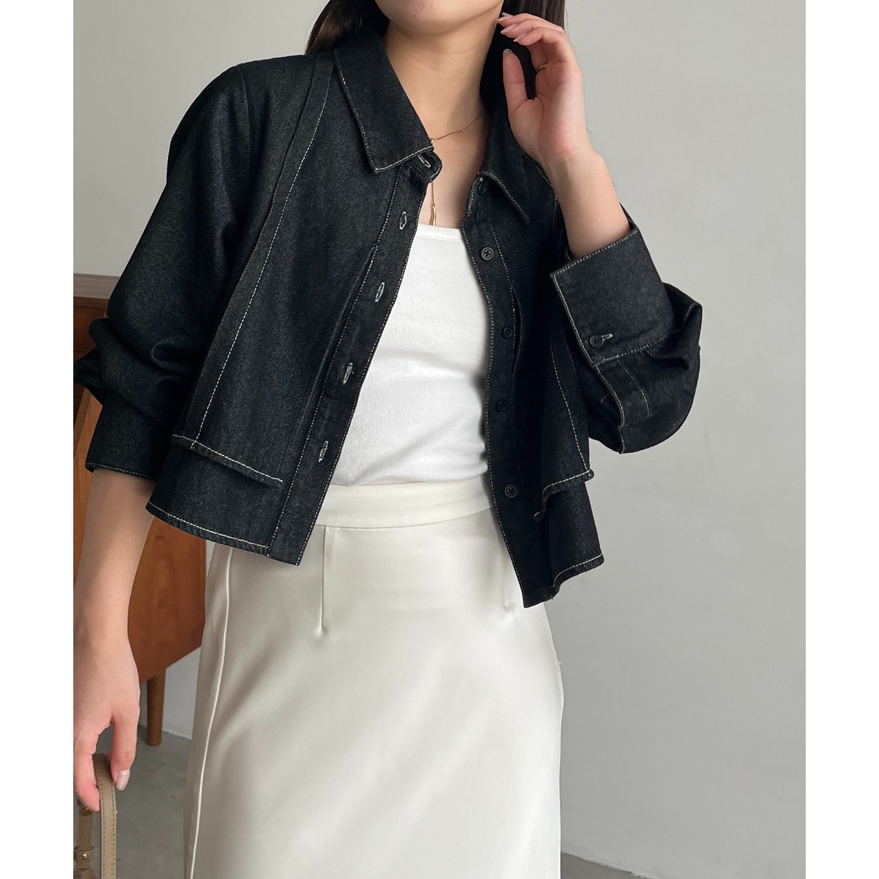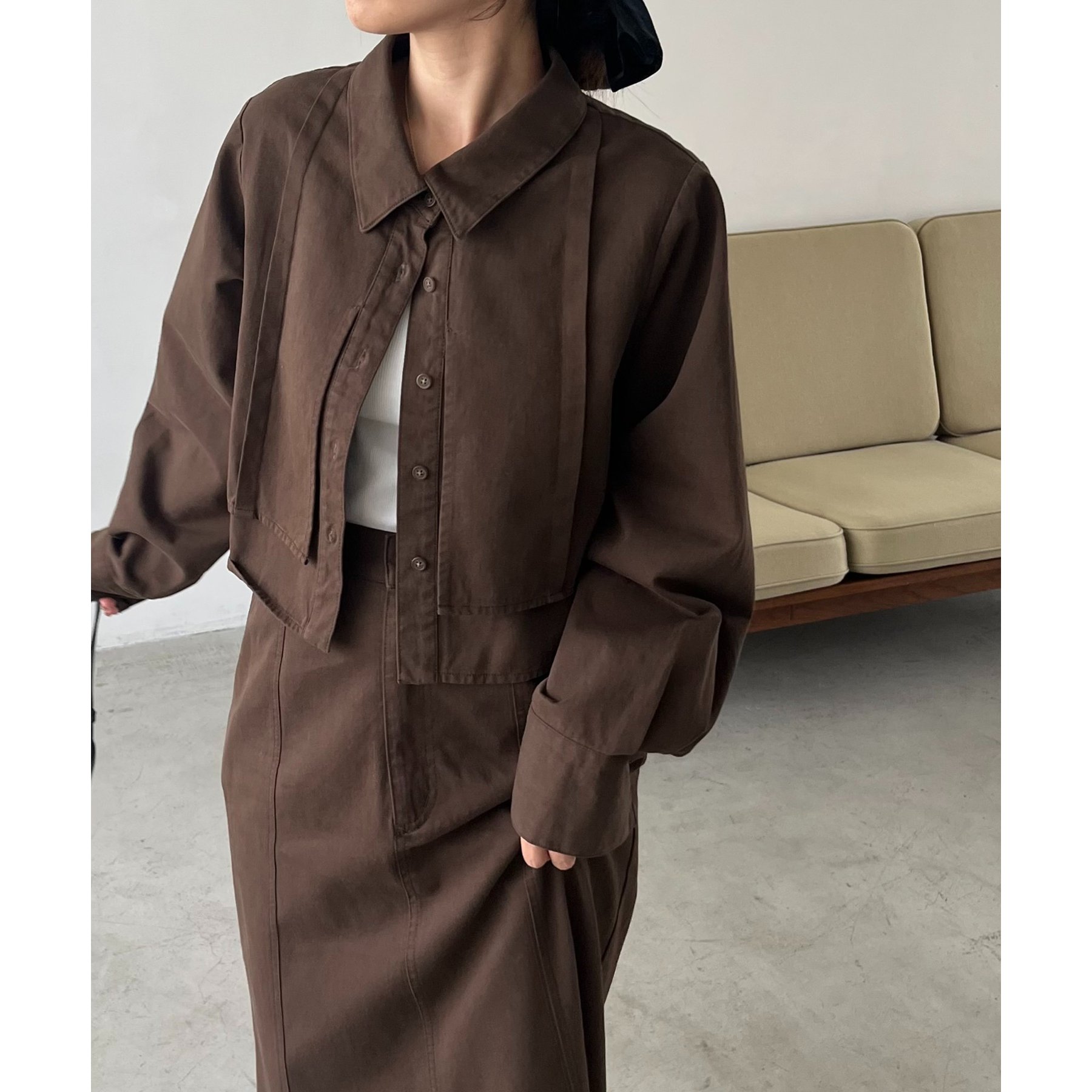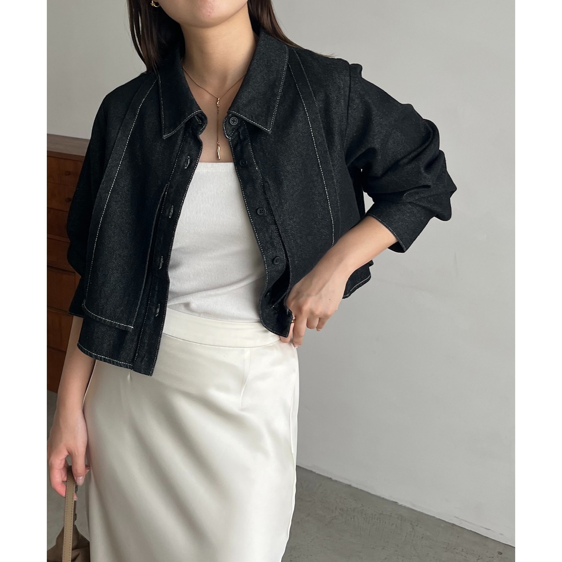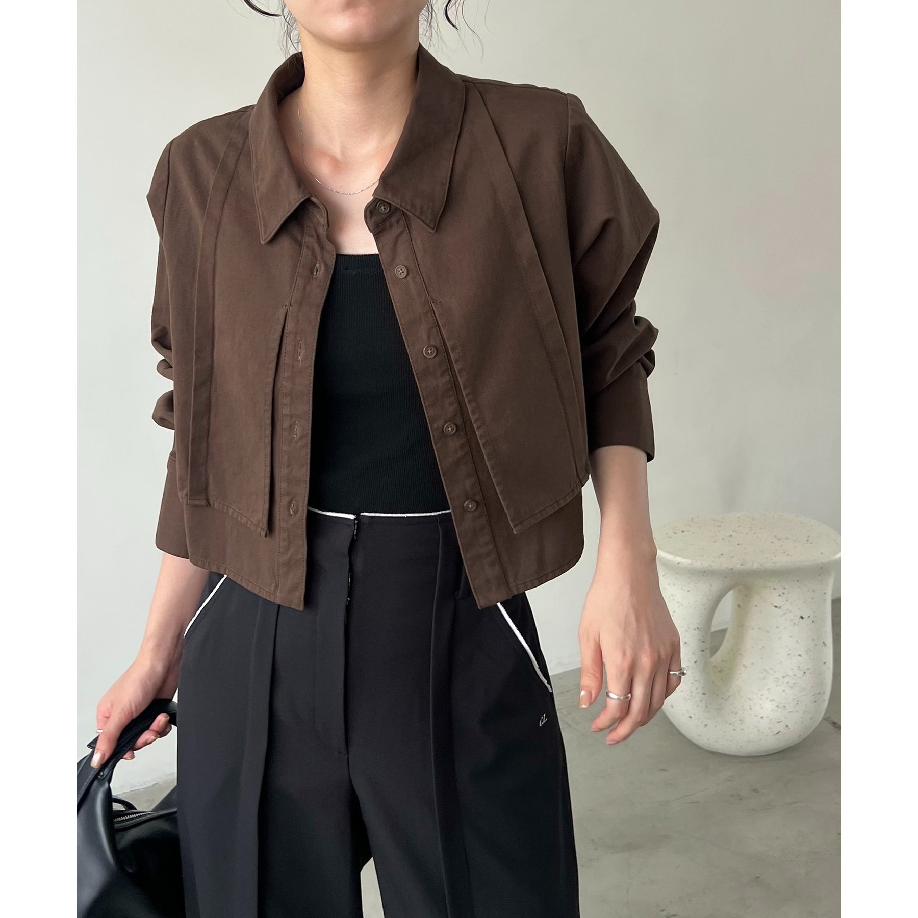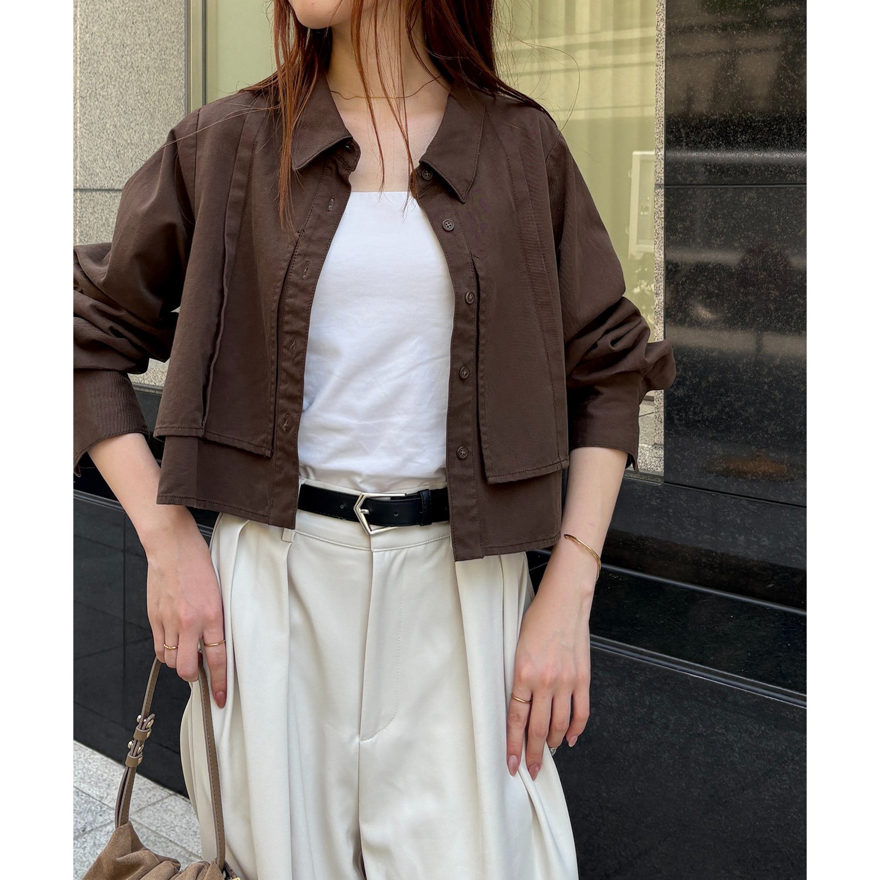 羽織やトップスとして長く使えるクロップシャツ