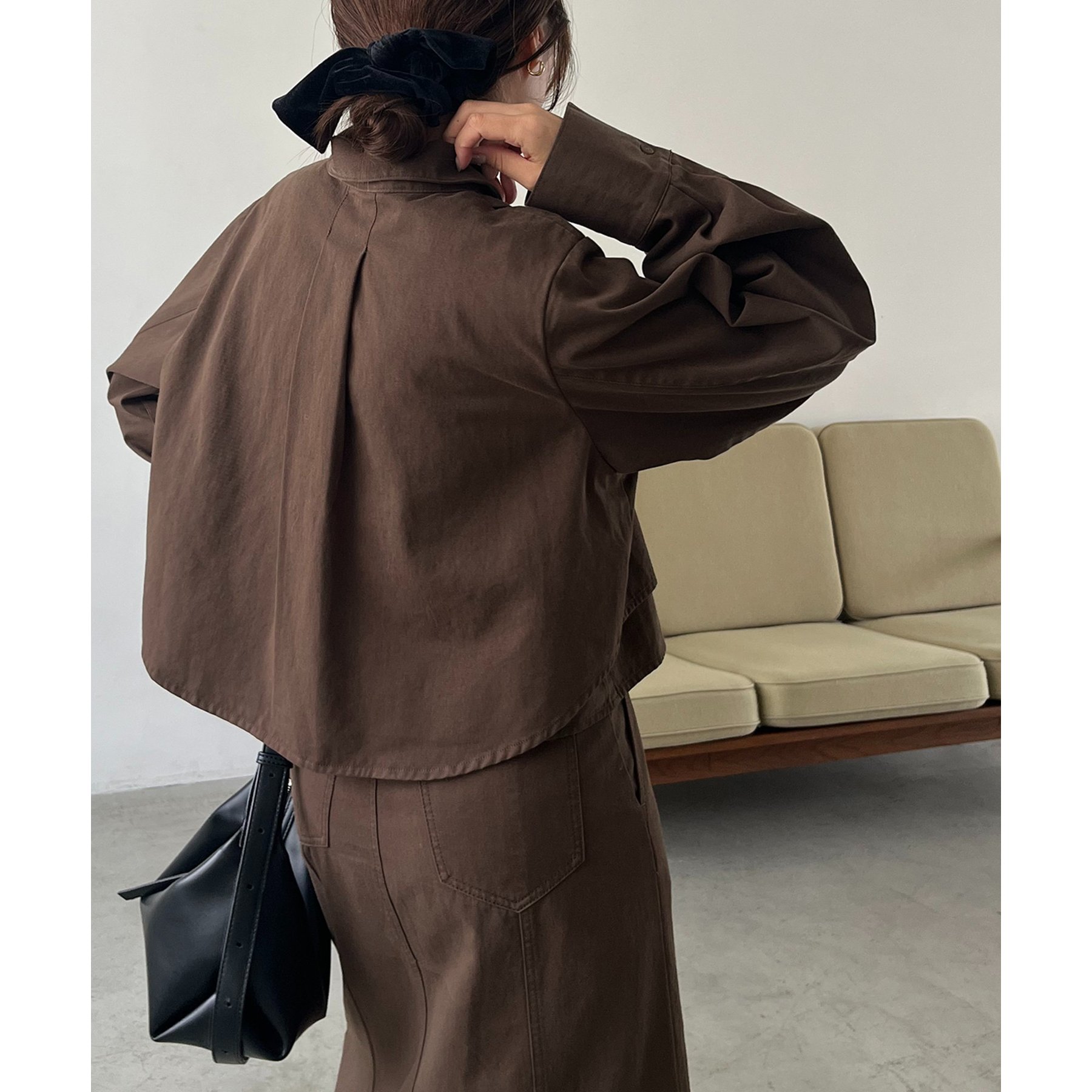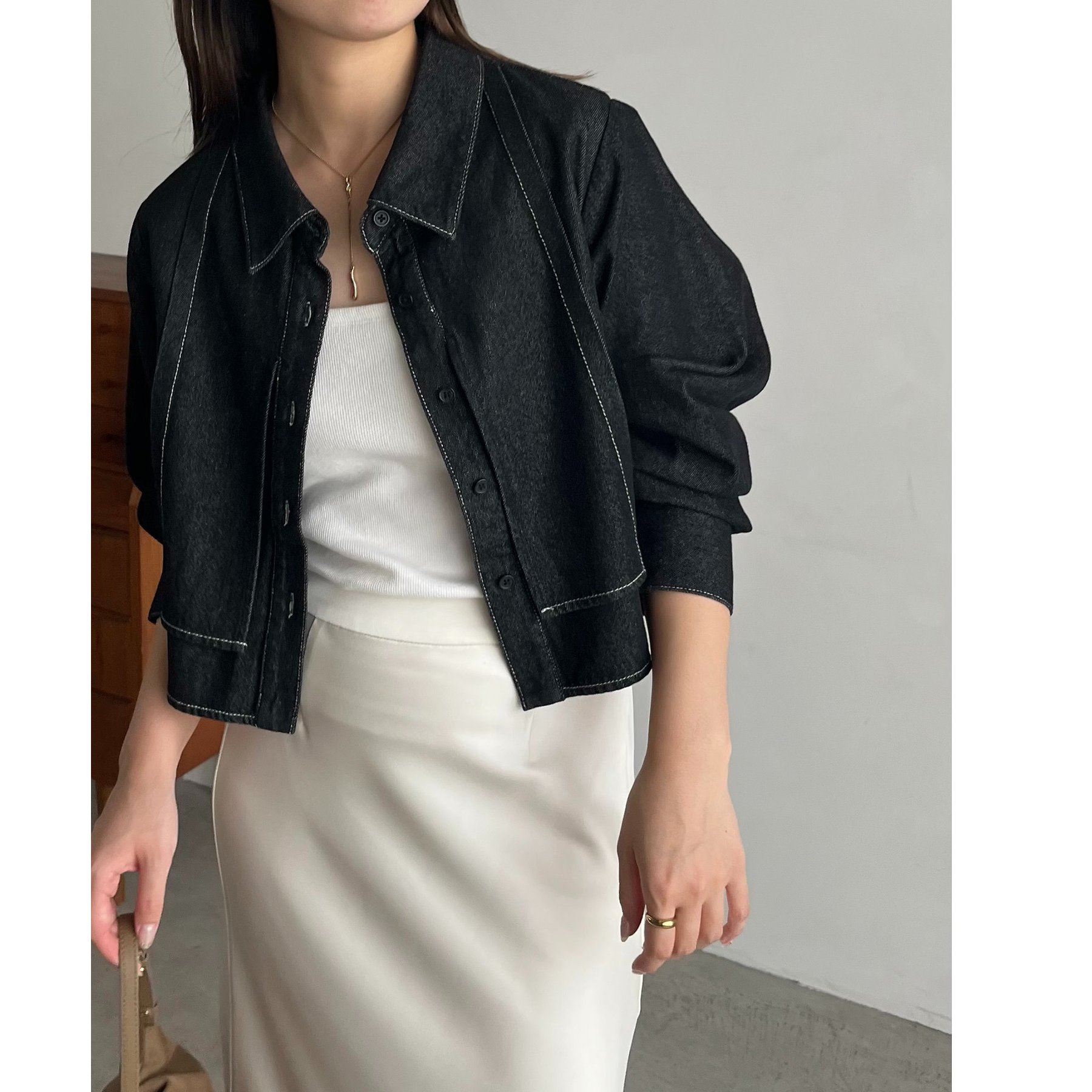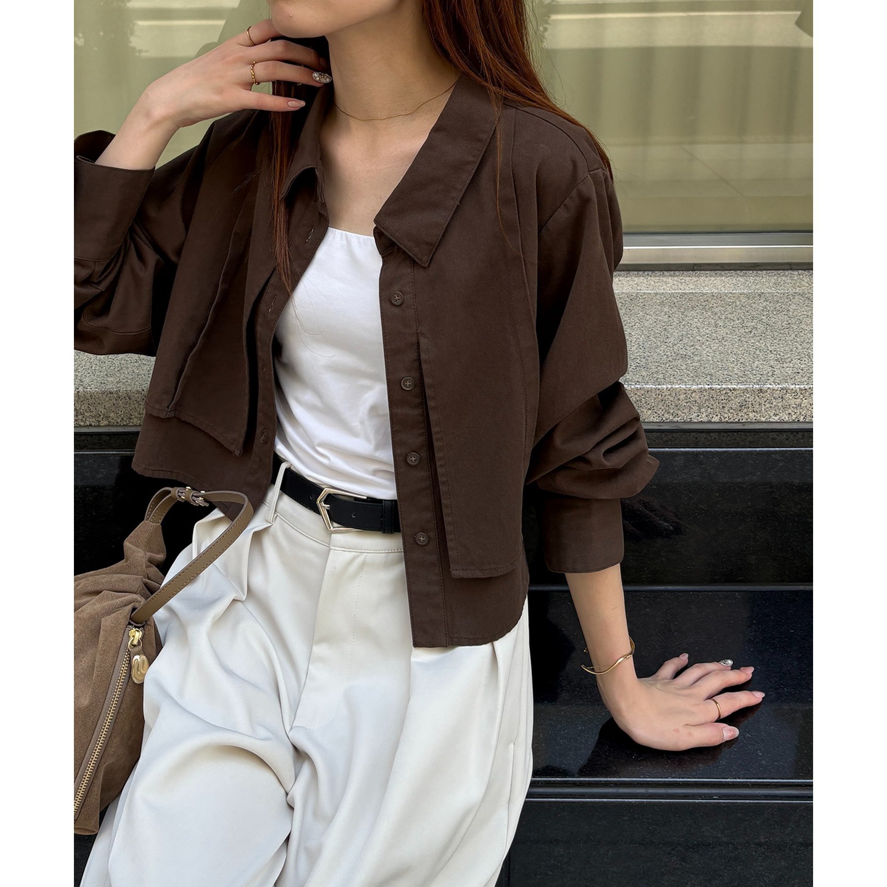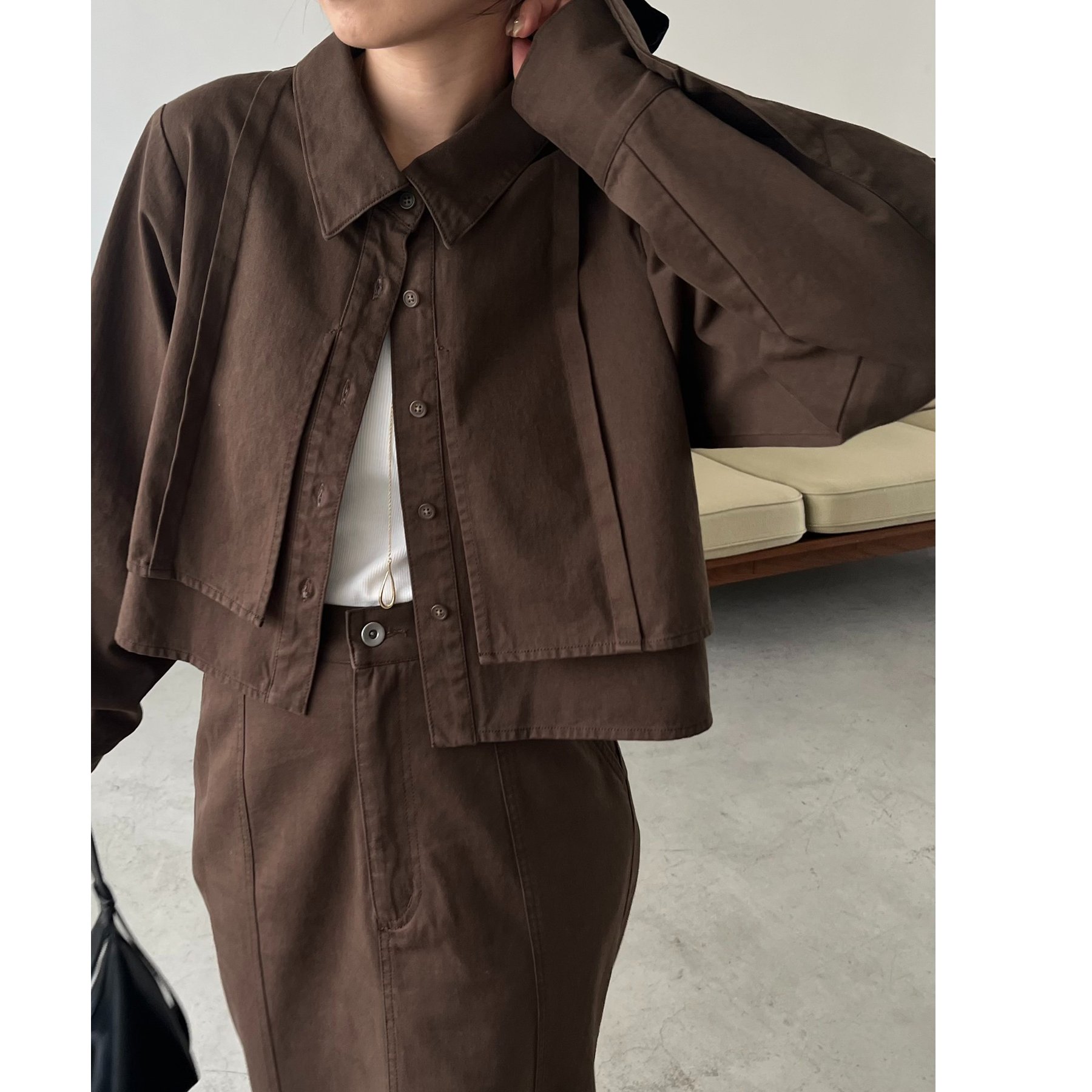 羽織やトップスとして長く使えるクロップシャツ