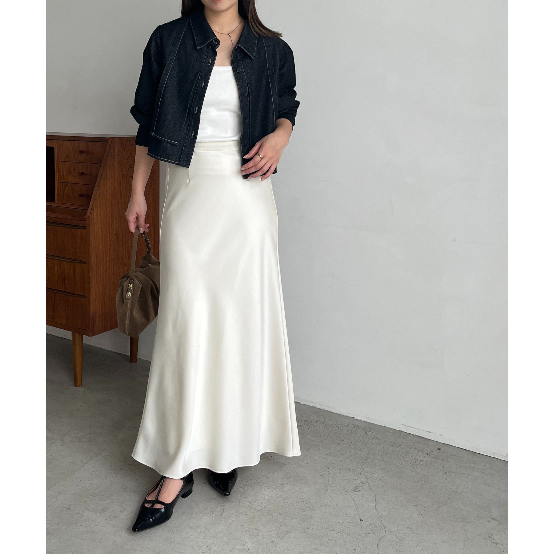 ・マキシ丈スカートと合わせてレディライクに