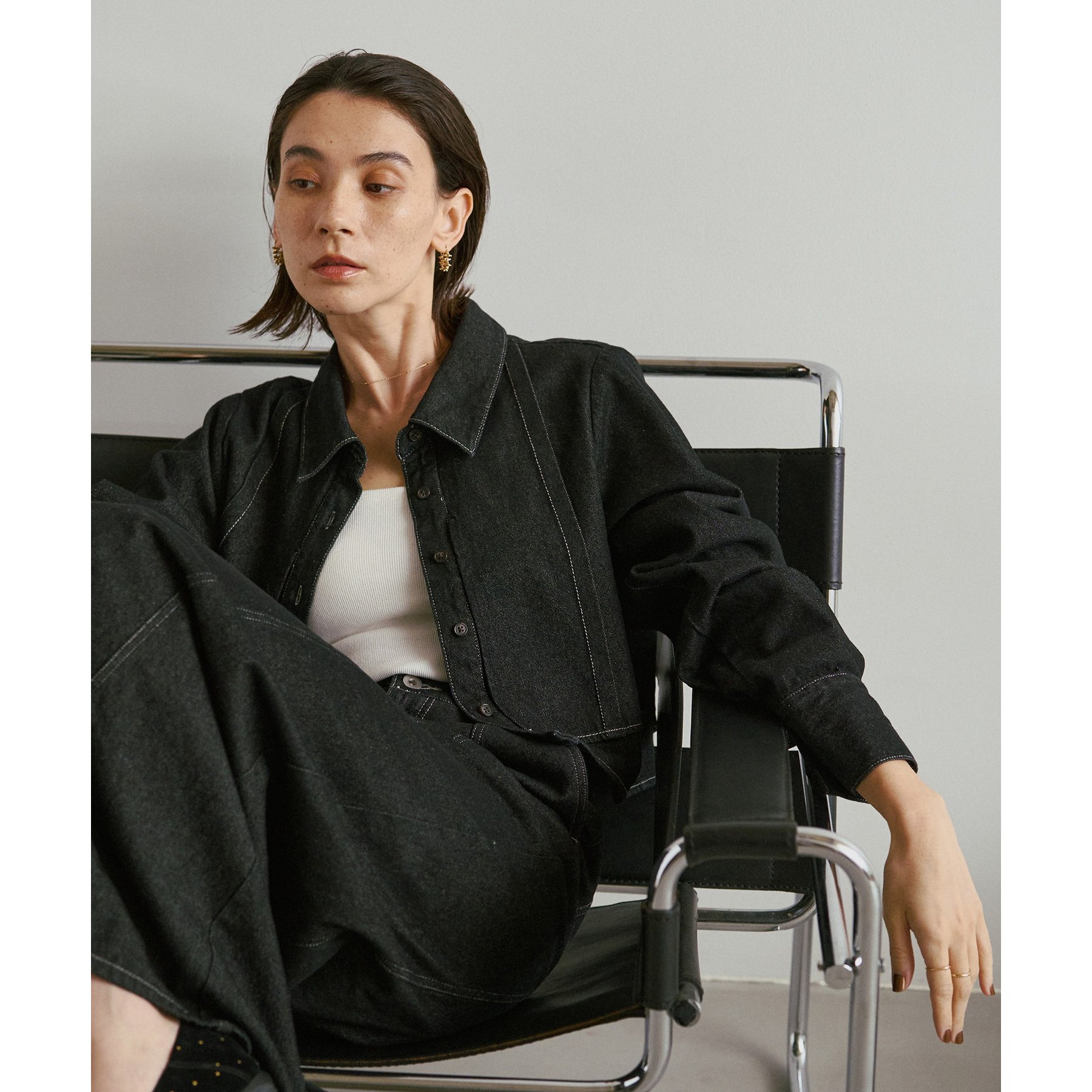 ・ゆったりした身幅にクロップ丈のバランスがボトムを選らばずに着まわせる