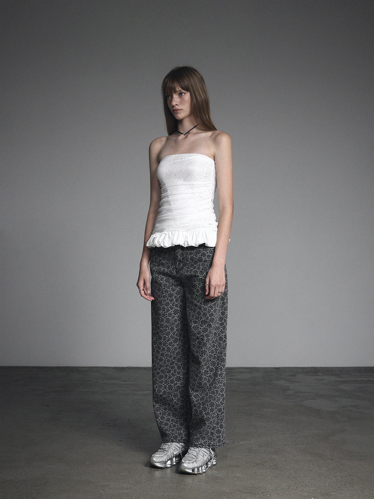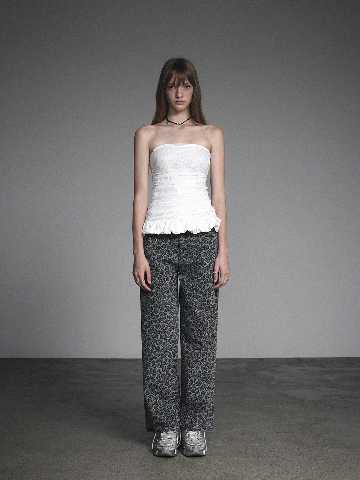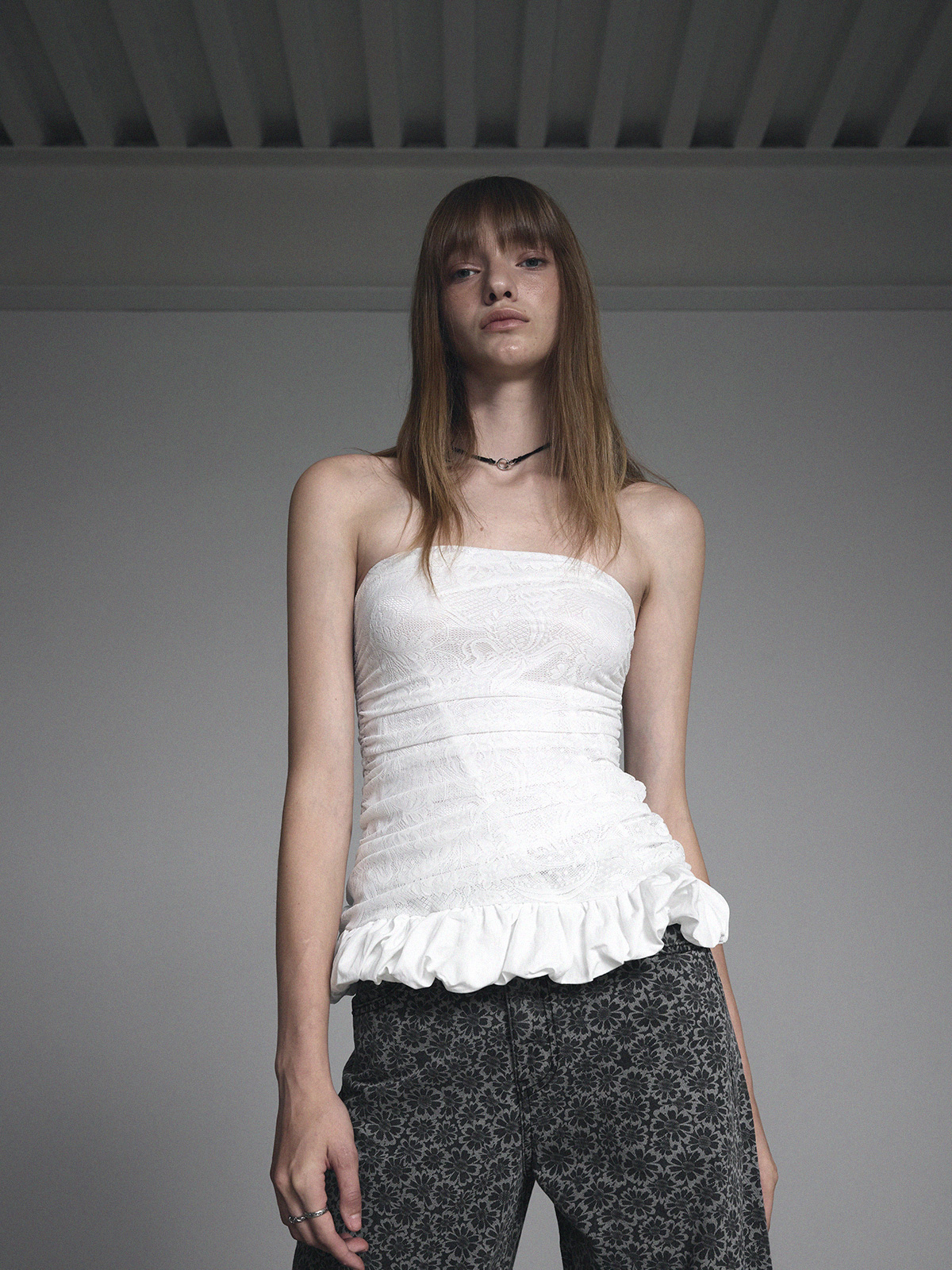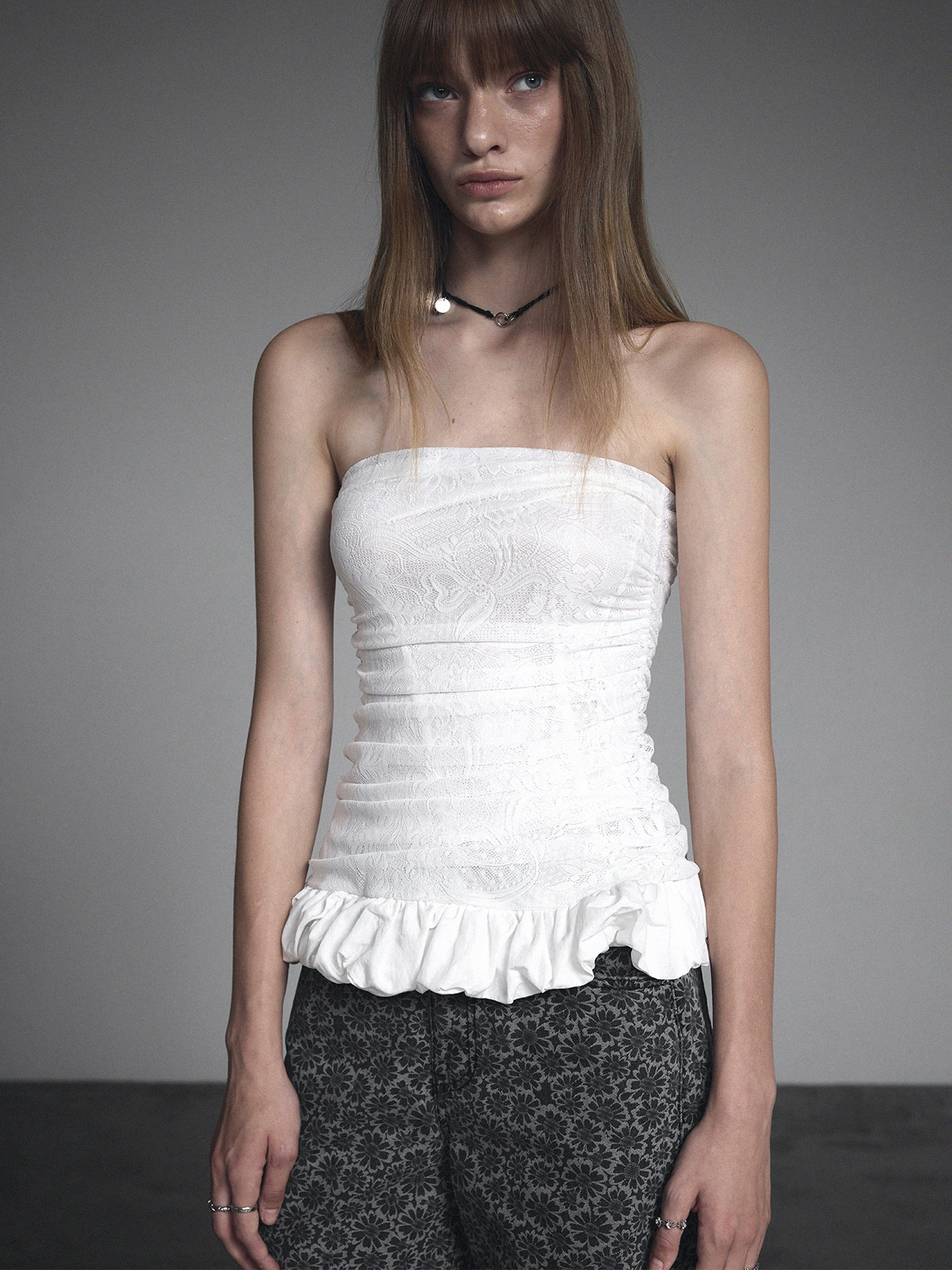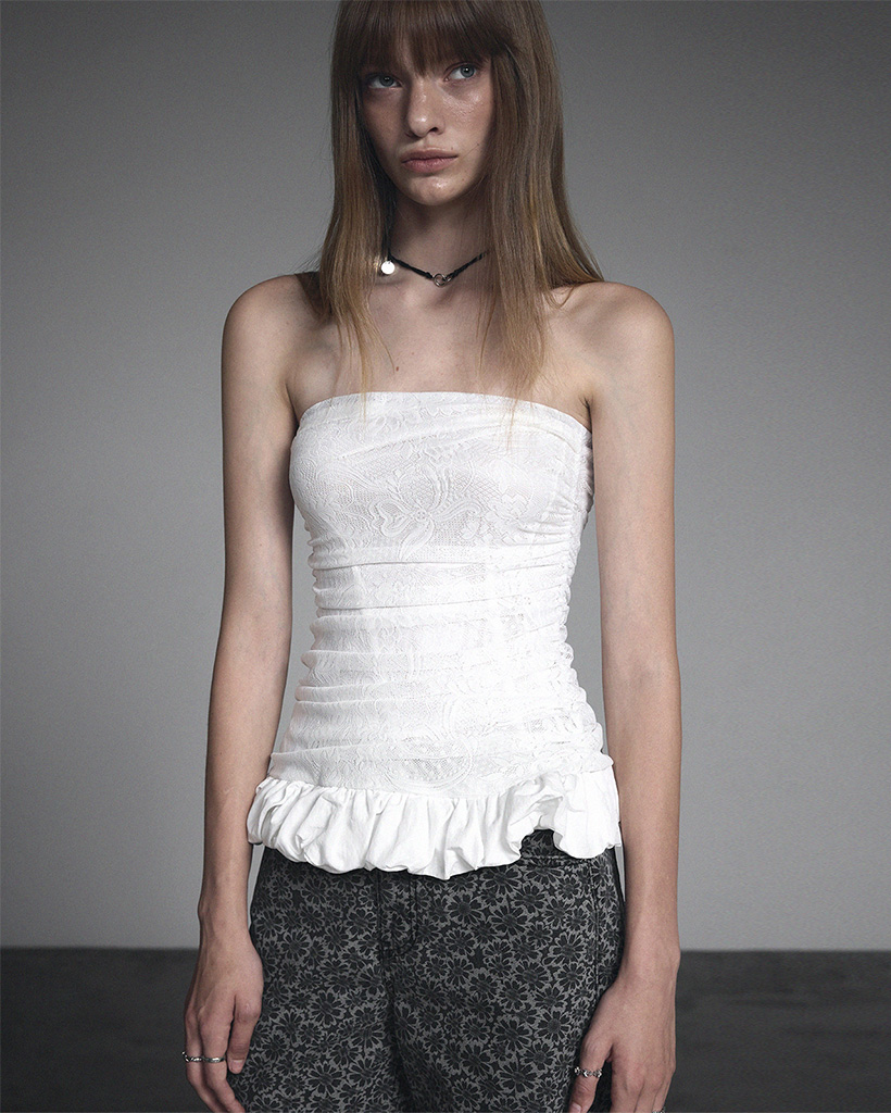 [GROWHIDE] Nella Lace Shirring Frill Top