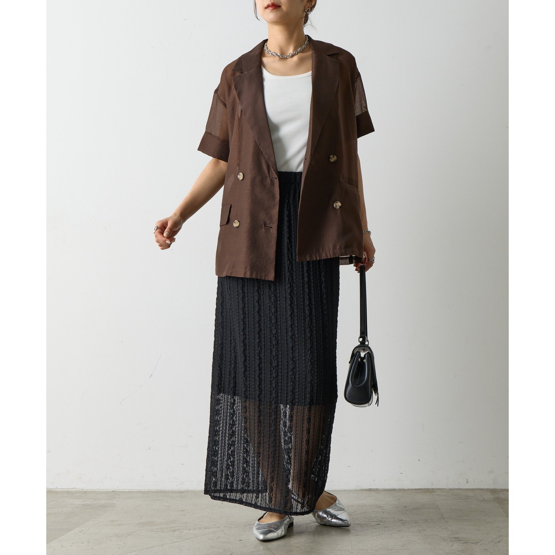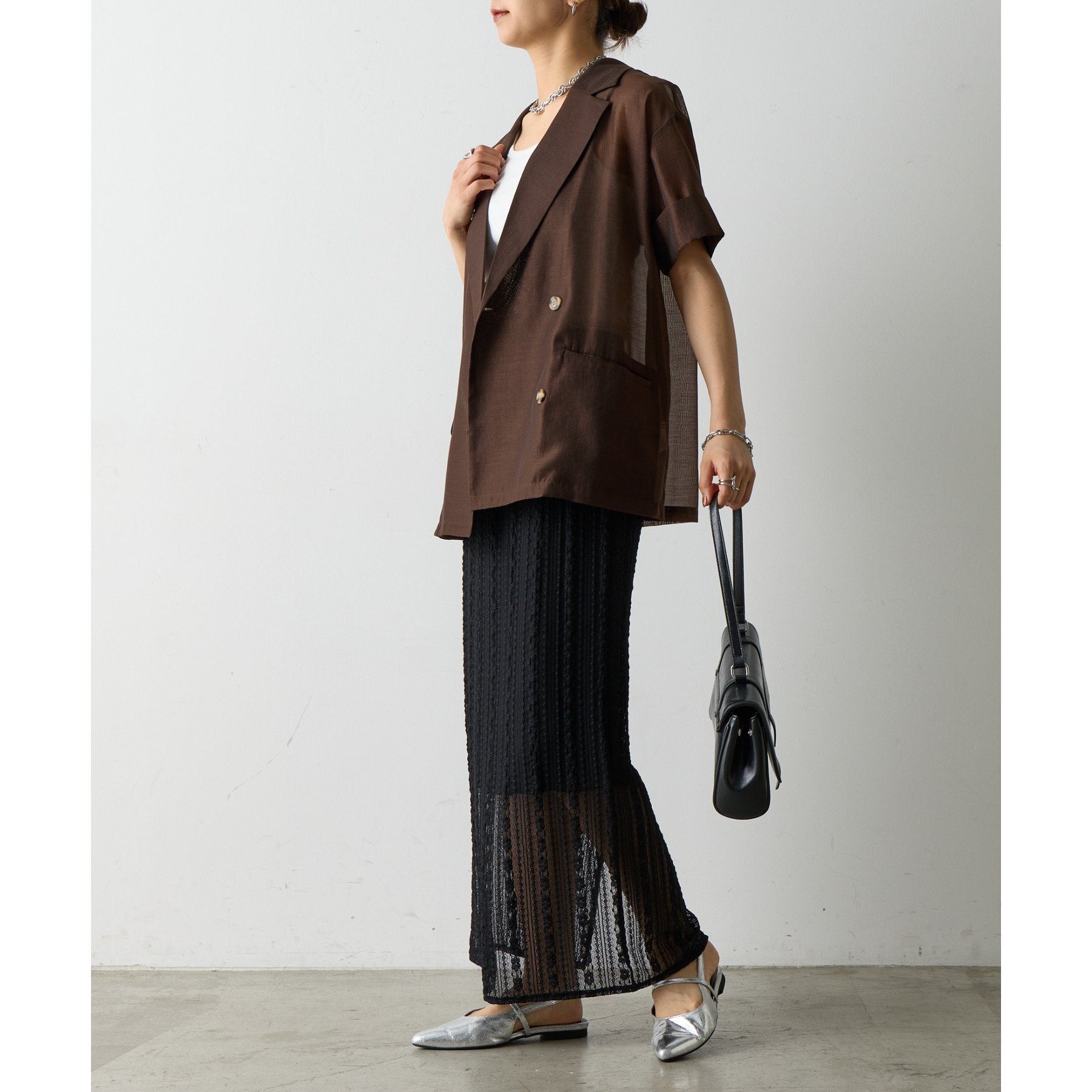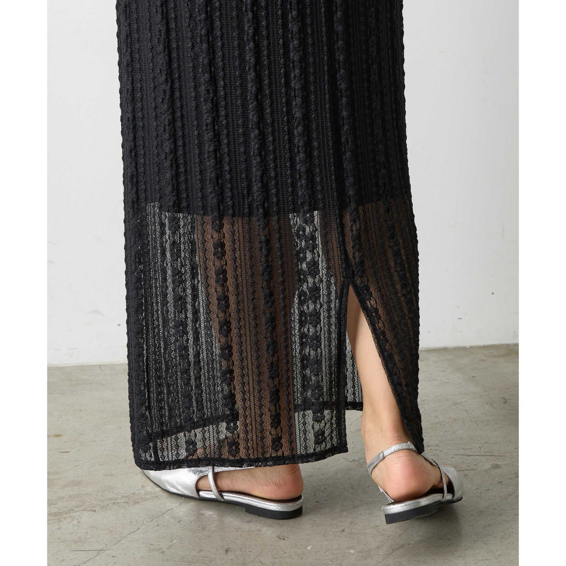 トレンド感のあるレースからほんのり素肌が覗き、涼しげで上品な印象に。