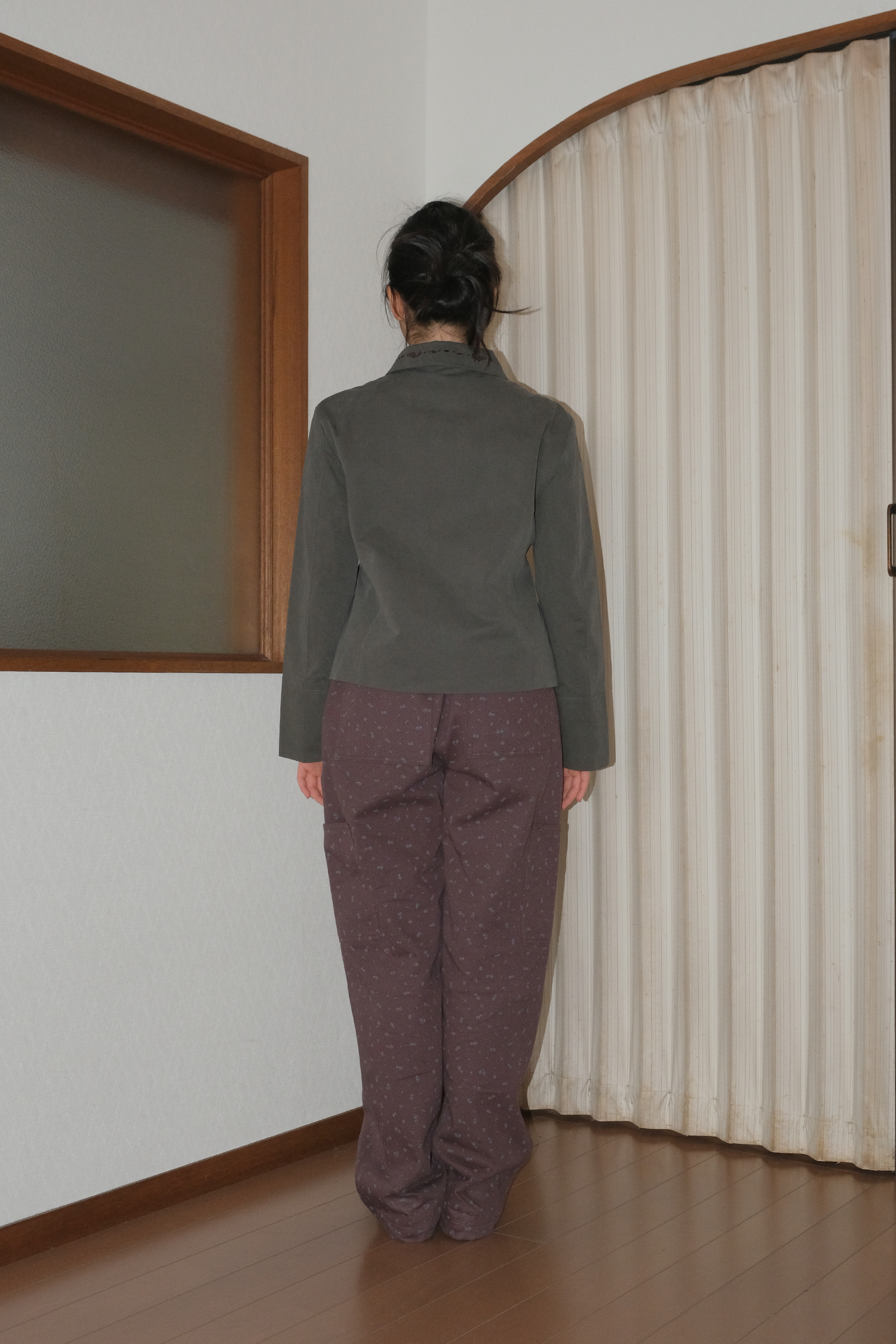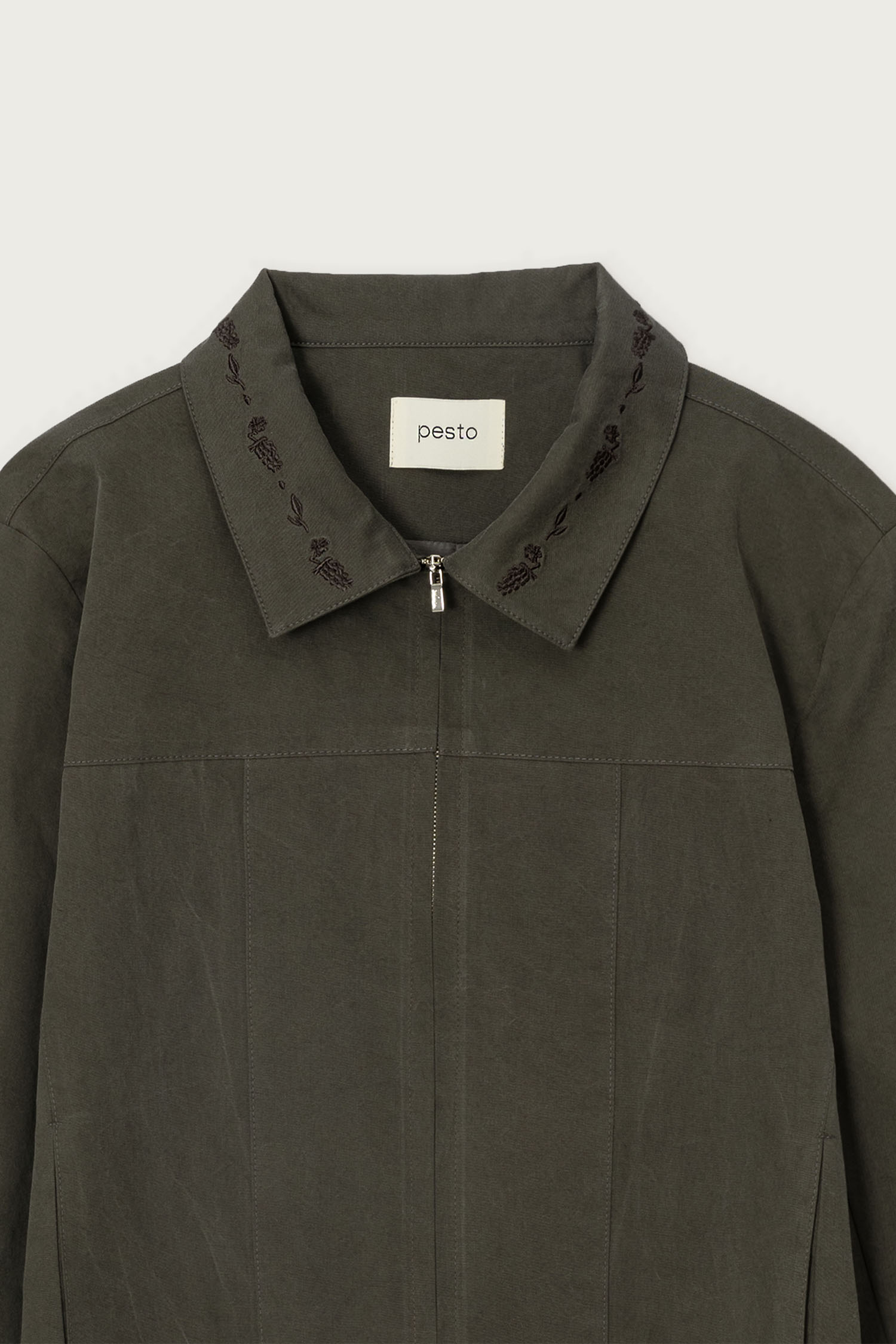- embroidered grape pattern at collar