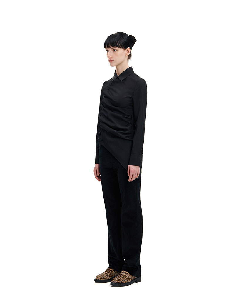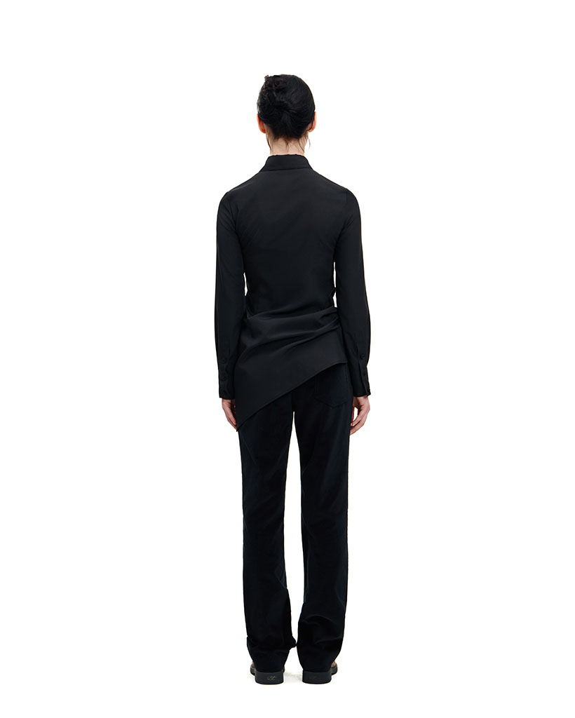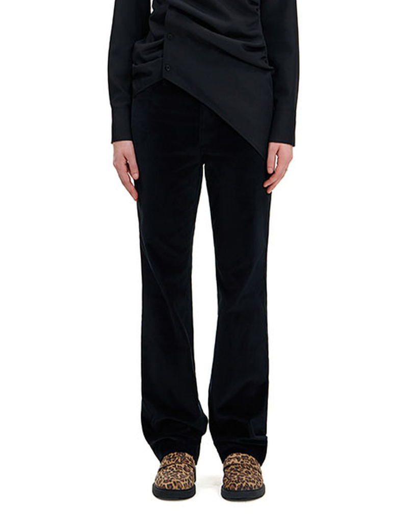 BLACK COTTON VELVET SLIGHT BOOTCUT TROUSERS