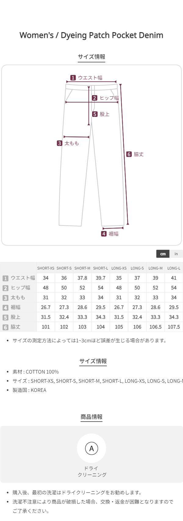 100% COTTON のデニム生地にダイ加工を施し、深みのある自然な表面感に仕上げたパンツです。染色工程の特性上、カラーにほのかなムラ感や微細なトーン差が生じる場合があり、時間とともに自然にエイジングしていく魅力があります。
