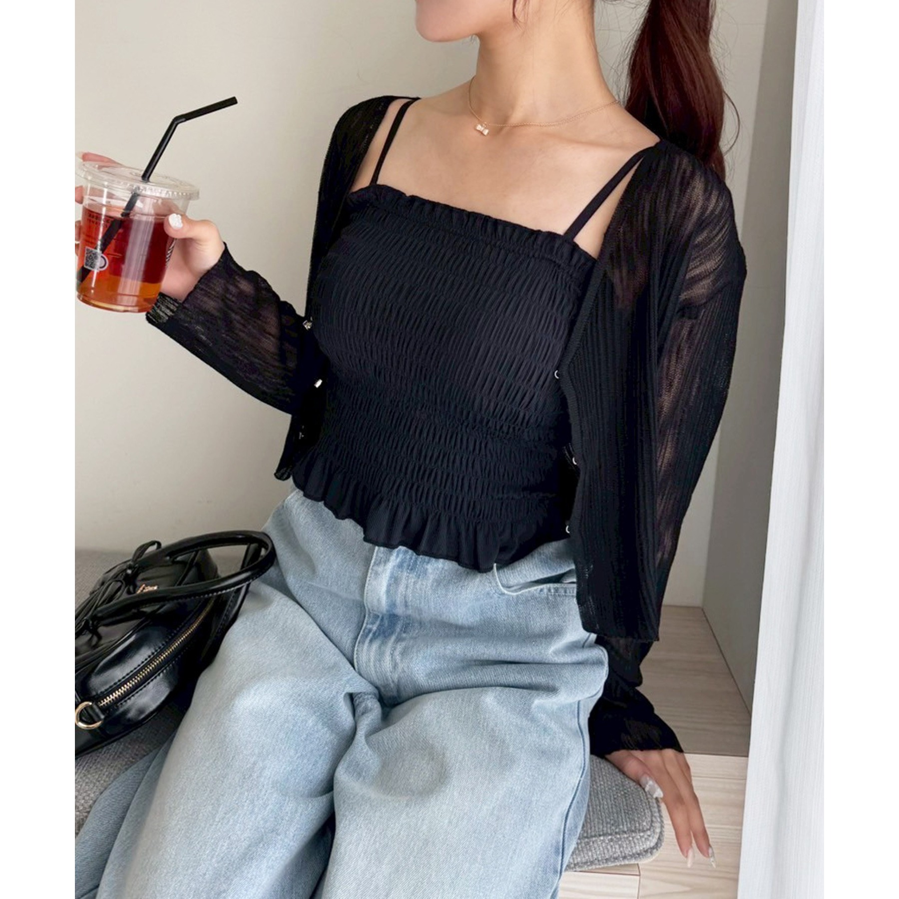 シアーシャツや、カーデガンのインナーに合わせてお使いいただけます。