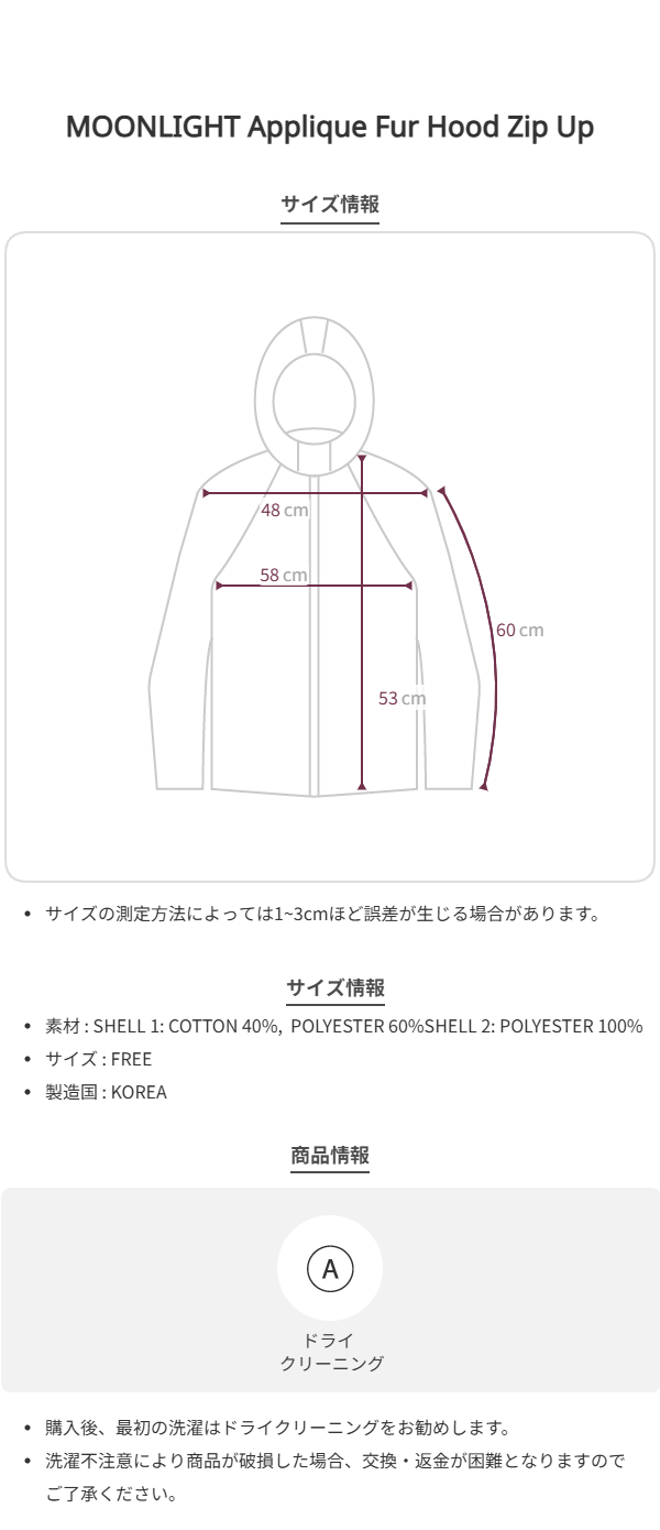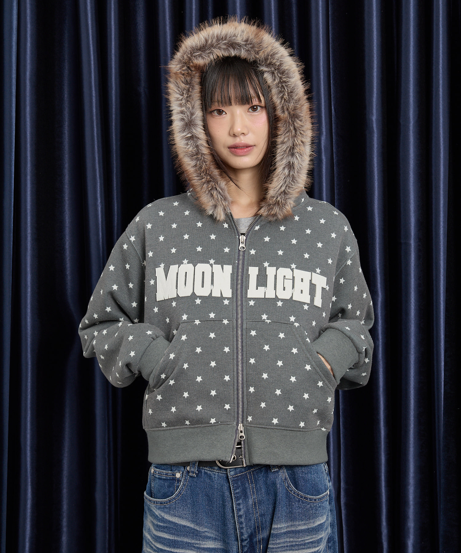 【購入特典】[Inflencer pick] MOONLIGHT Applique Fur Hood Zip Up CHARCOAL