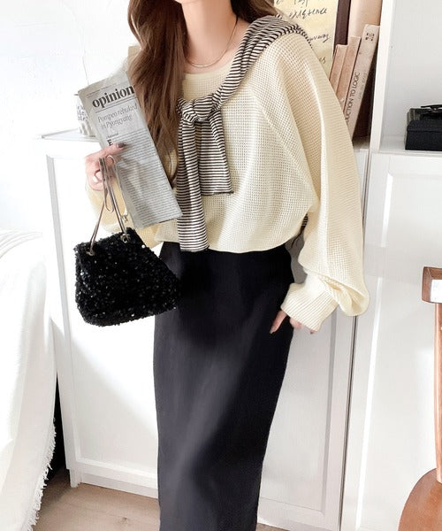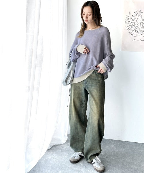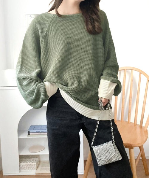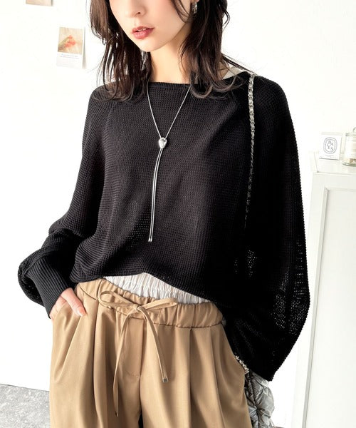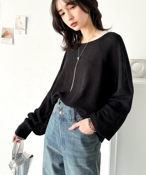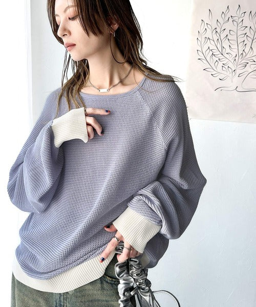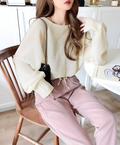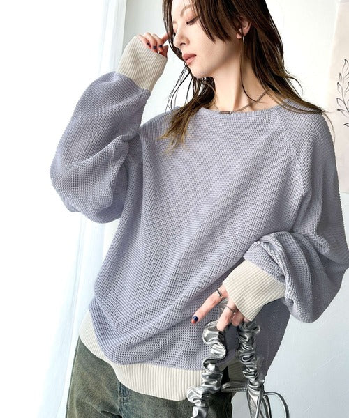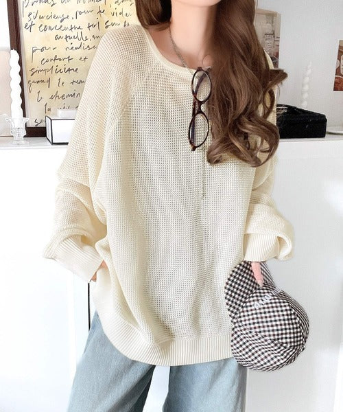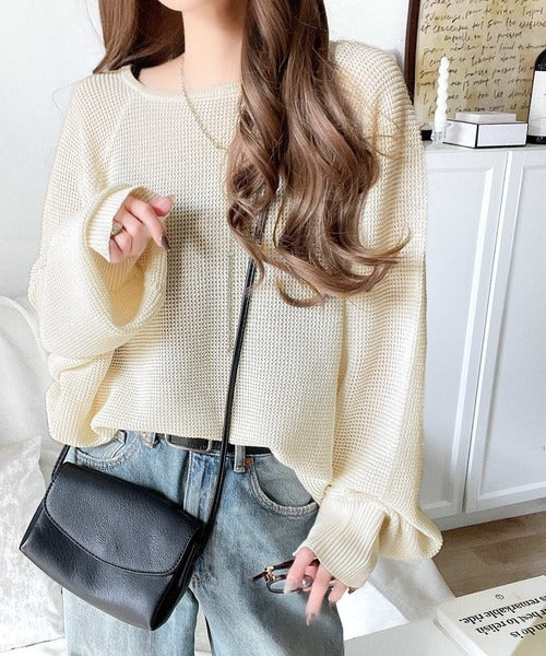遊び心のある程よい透け感。オーバーサイズワッフル編みドルマン袖トップス(長袖) ce1050276
