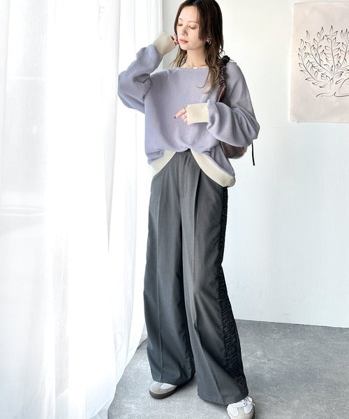 ワッフルボートネックニットプルオーバーは、シンプルながらもお洒落な印象を与えてくれる優秀アイテム。