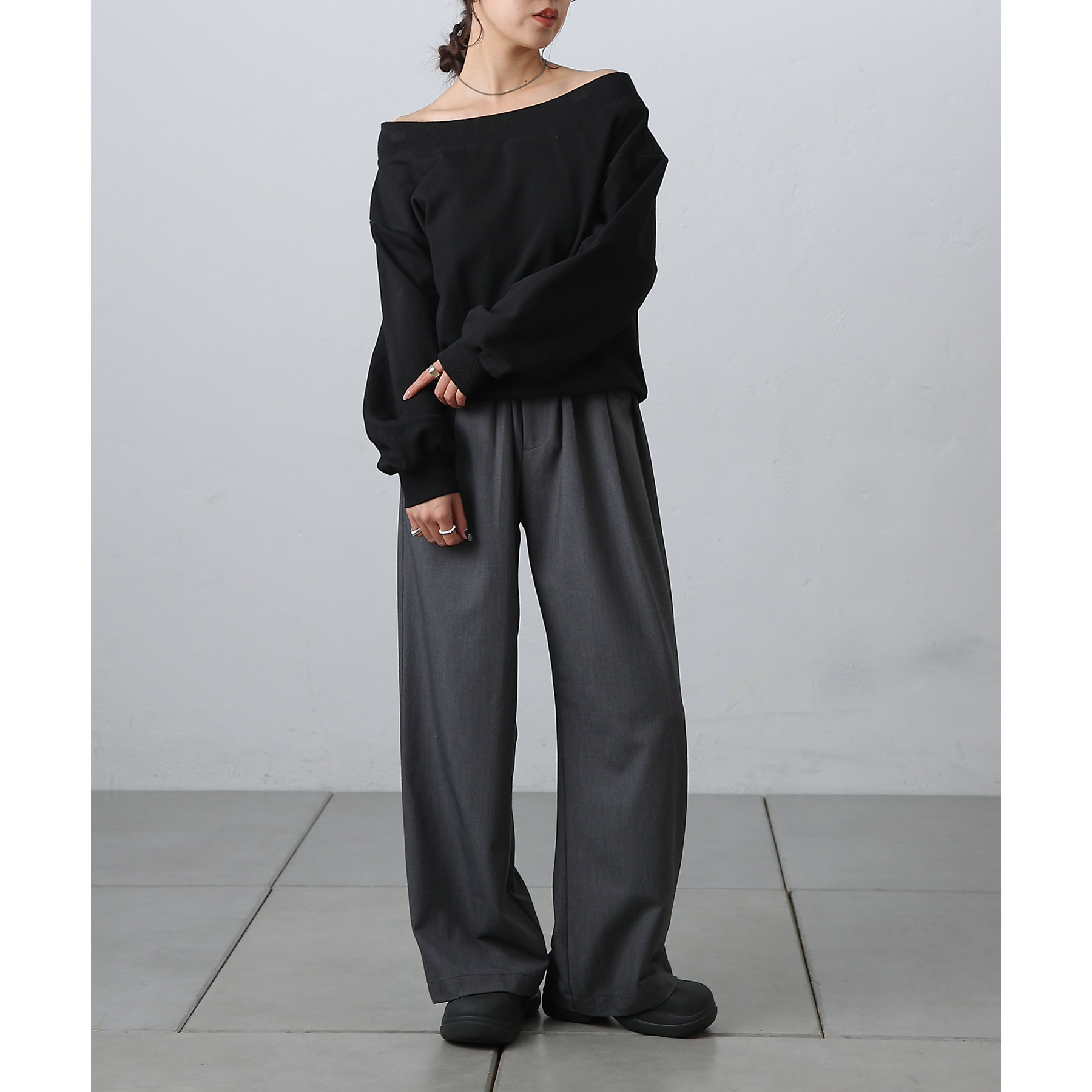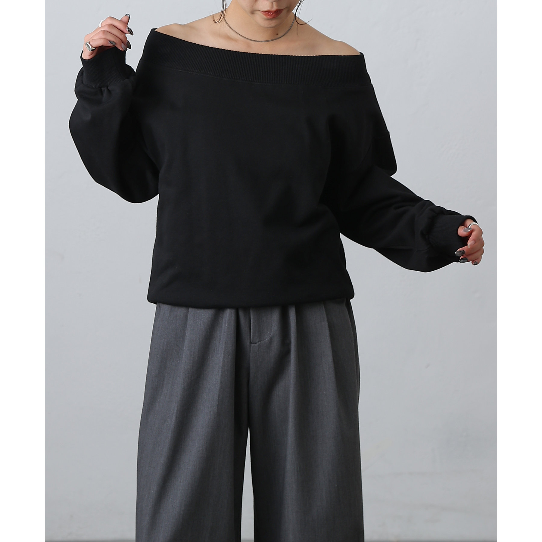 程よい肌見せでレディライクに仕上げてくれるオフショルスウェット