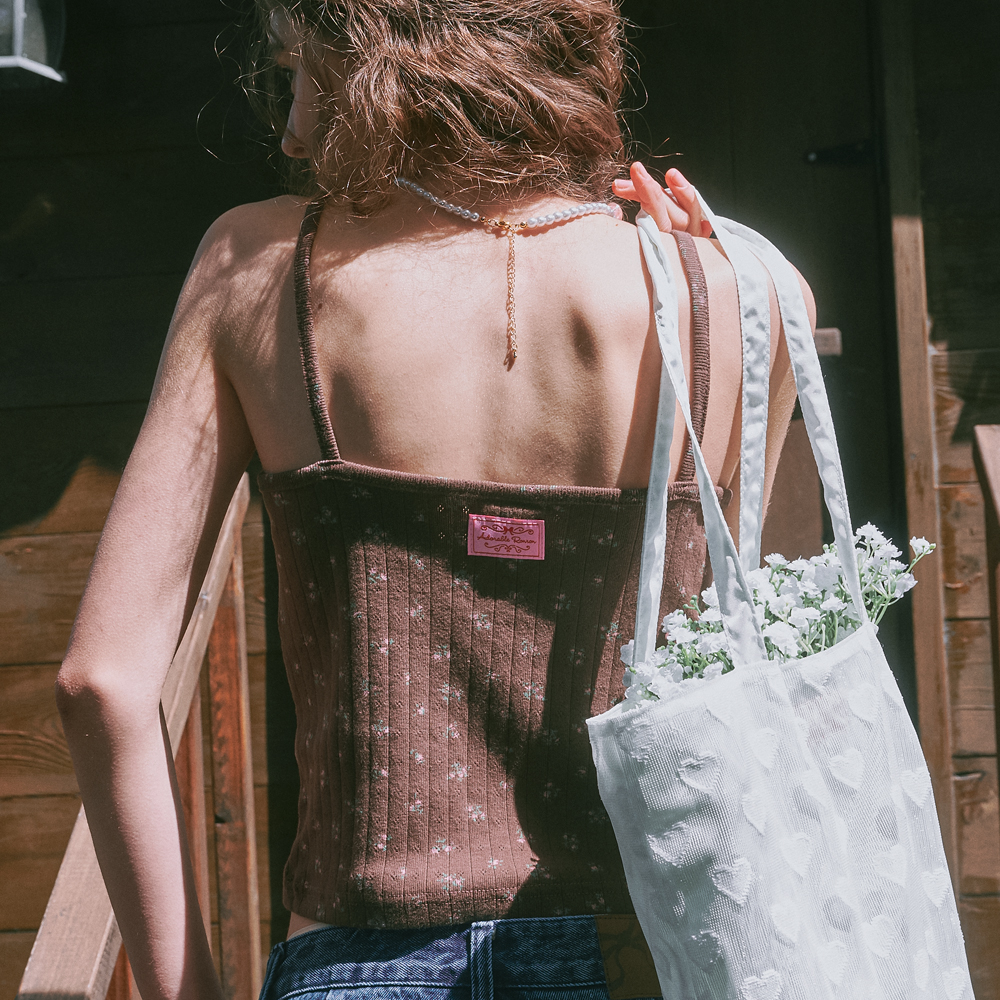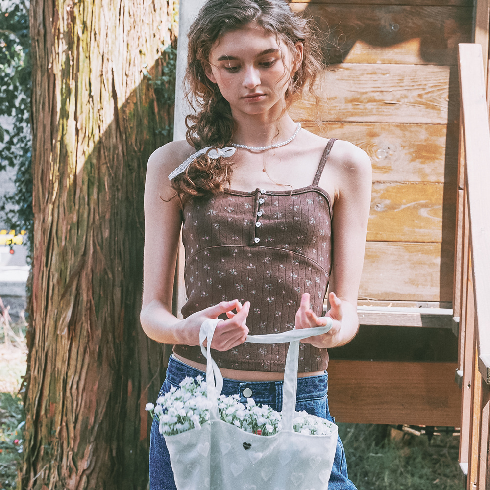 HEART BUTTON GOLGI SLEEVELESS EYELET BROWN