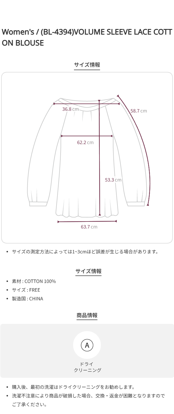 (BL-4394)VOLUME SLEEVE LACE COTTON BLOUSE