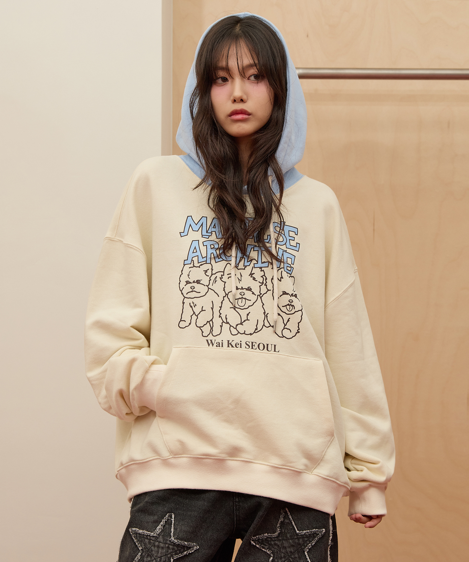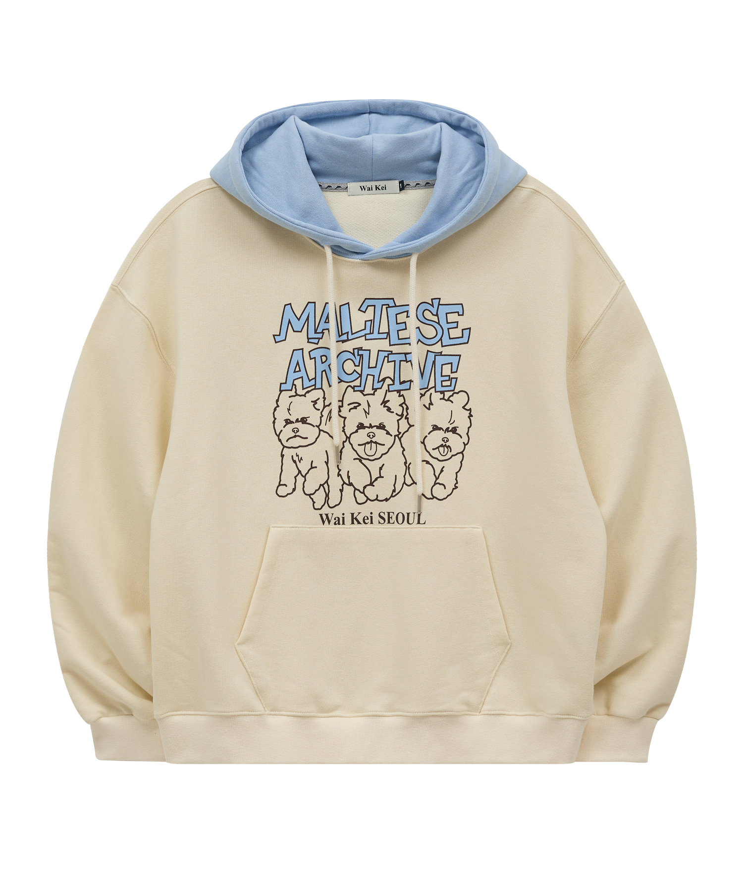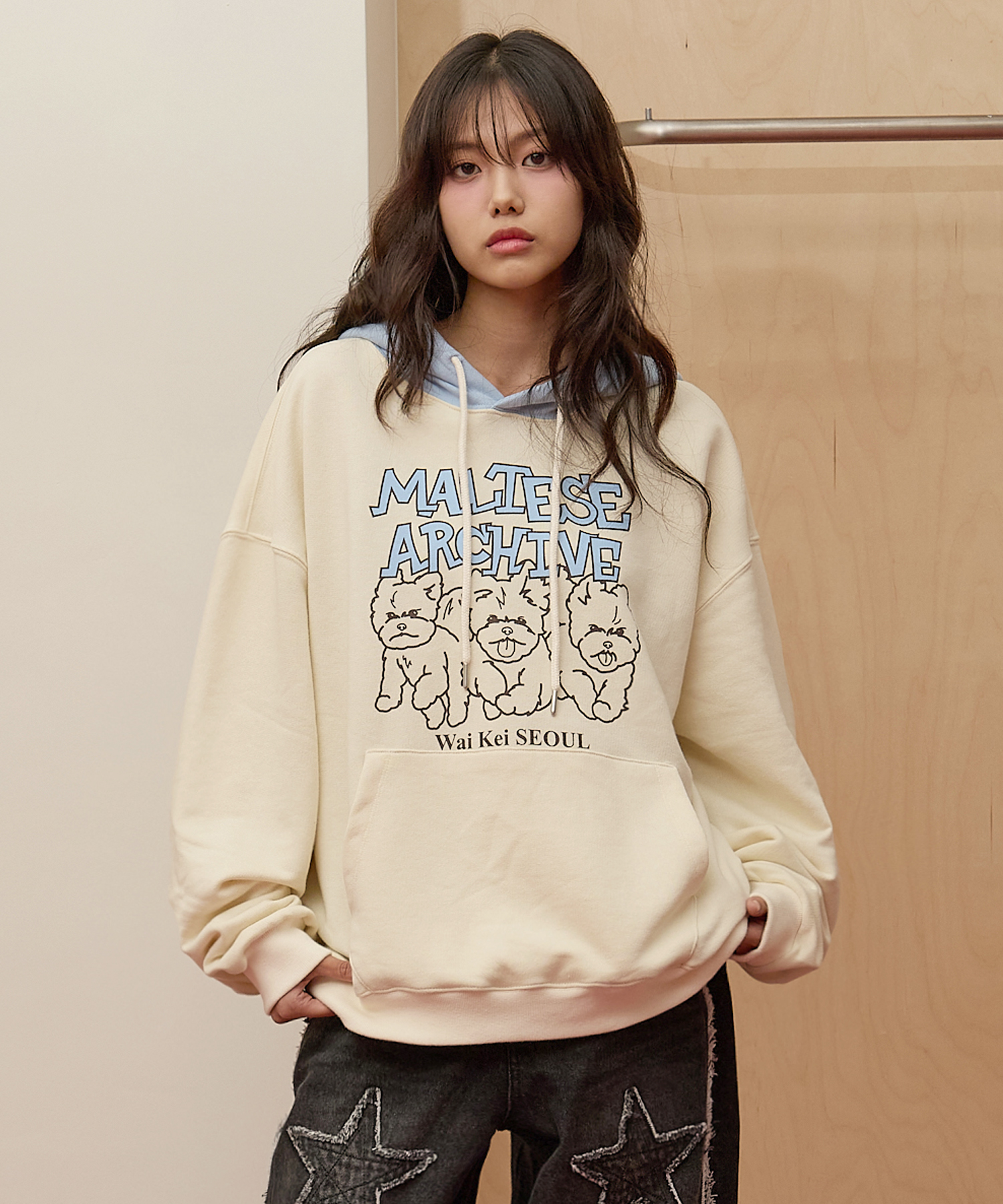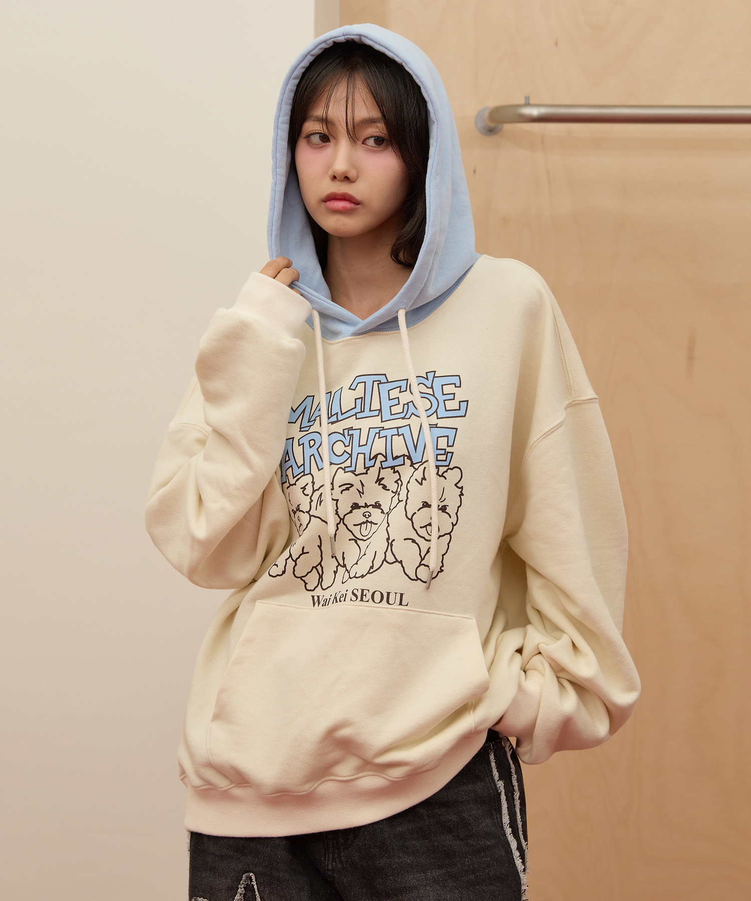 [K-POPアイドル着用] Maltese Archive Line Graphic Two Tone Hoody IVORY