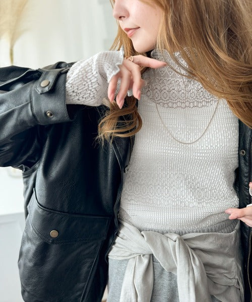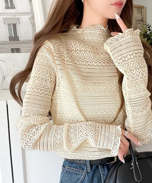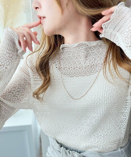 薄手のレース素材でインナーとして襟や袖口から覗くだけでもキャッチーなアイテム。
