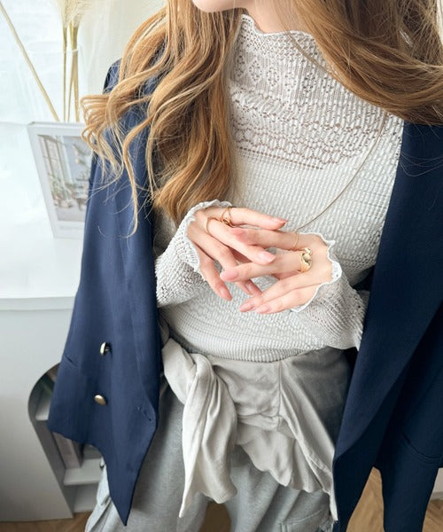 華やかで品格のある大人トップス。レースメローハイネックトップス ce1110088