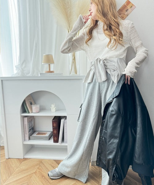 高級感もあり個性的なレーストップスですが、カジュアルにもきれいめスタイルにもハマる優れもの。