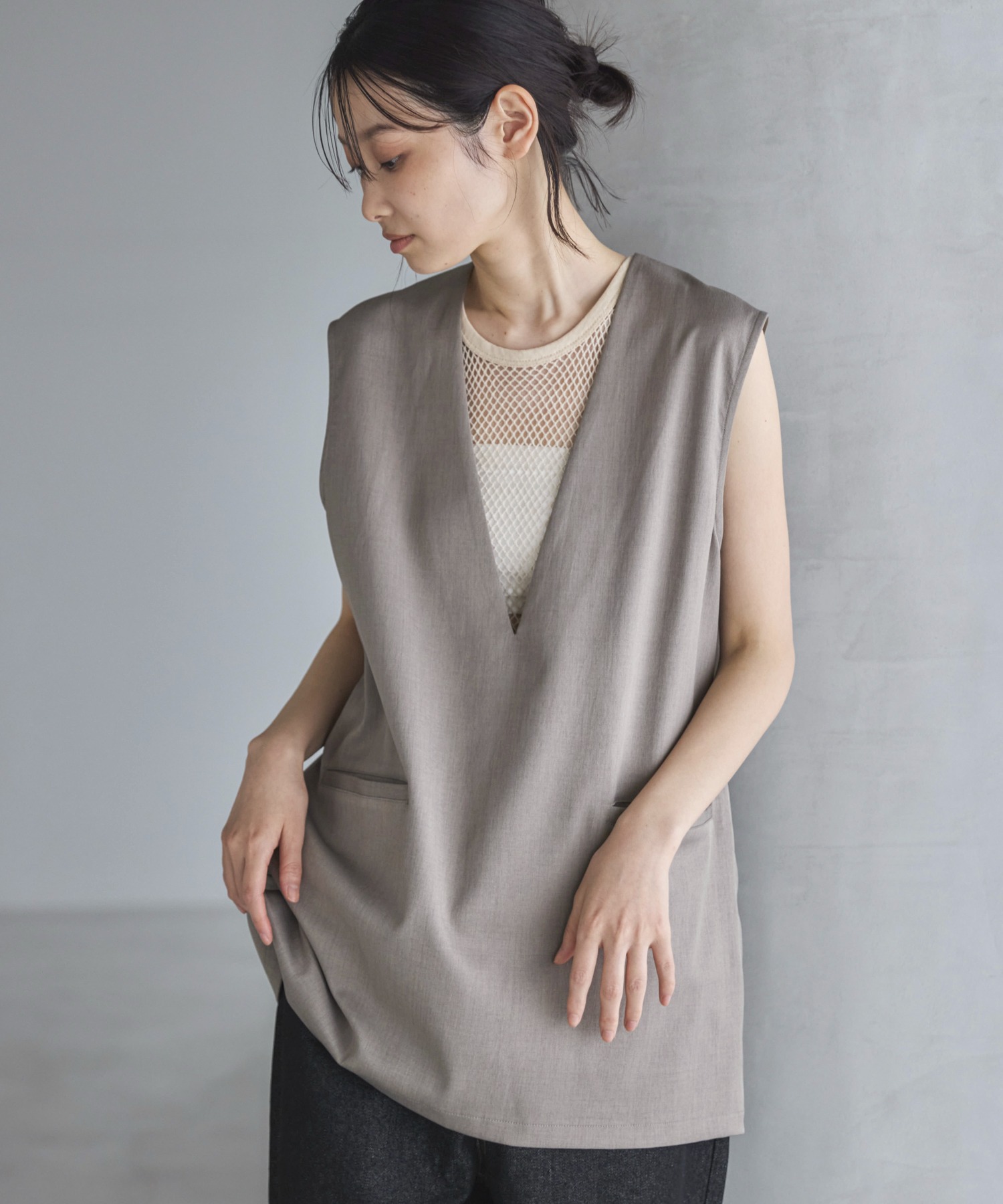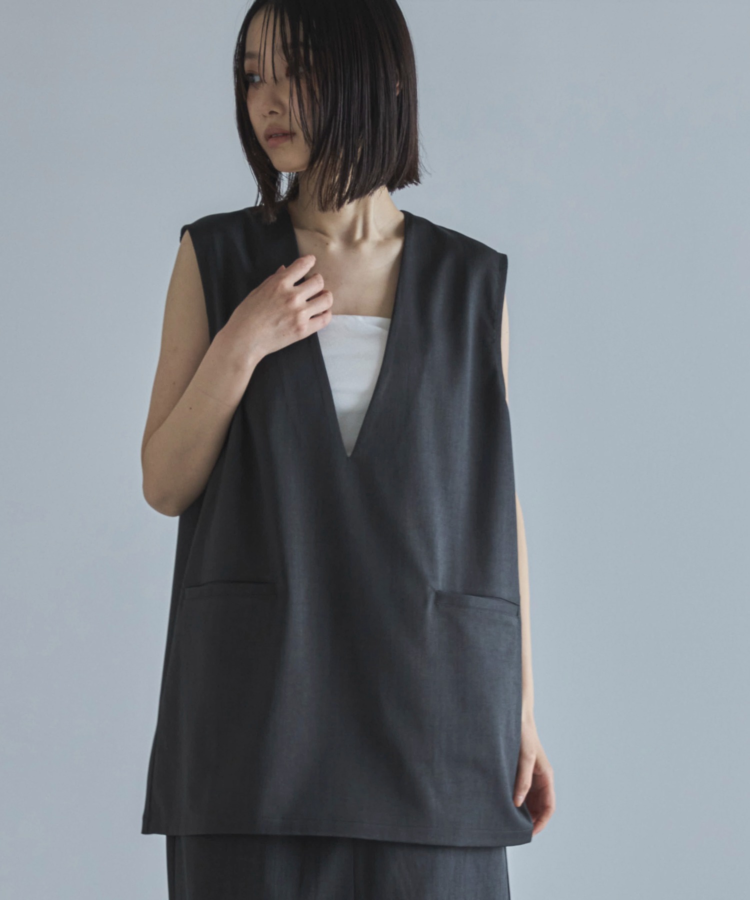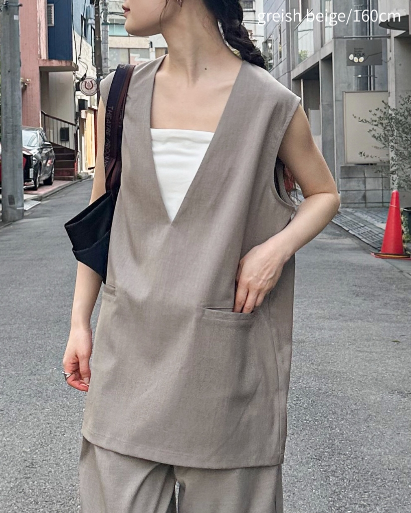 【セットアップ可】Vネックノースリーブプルオーバー
