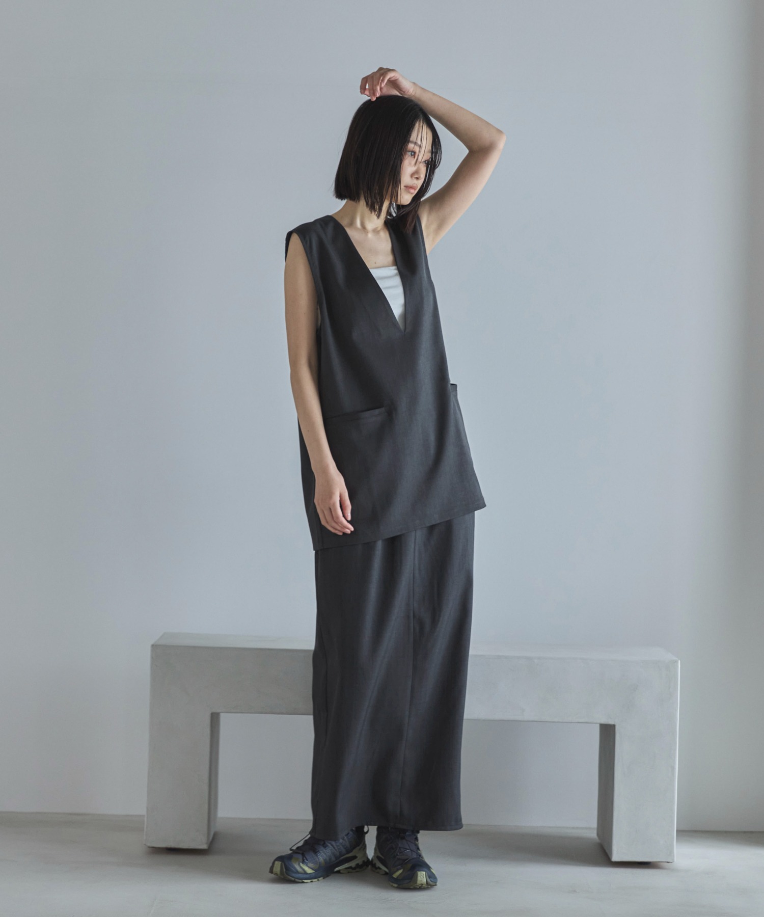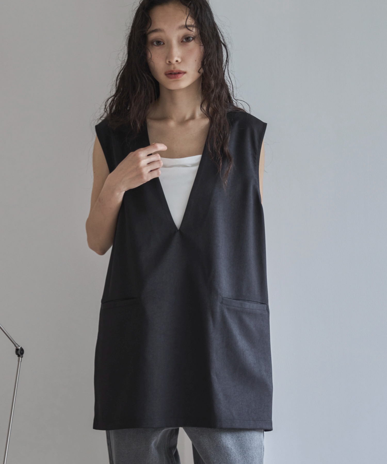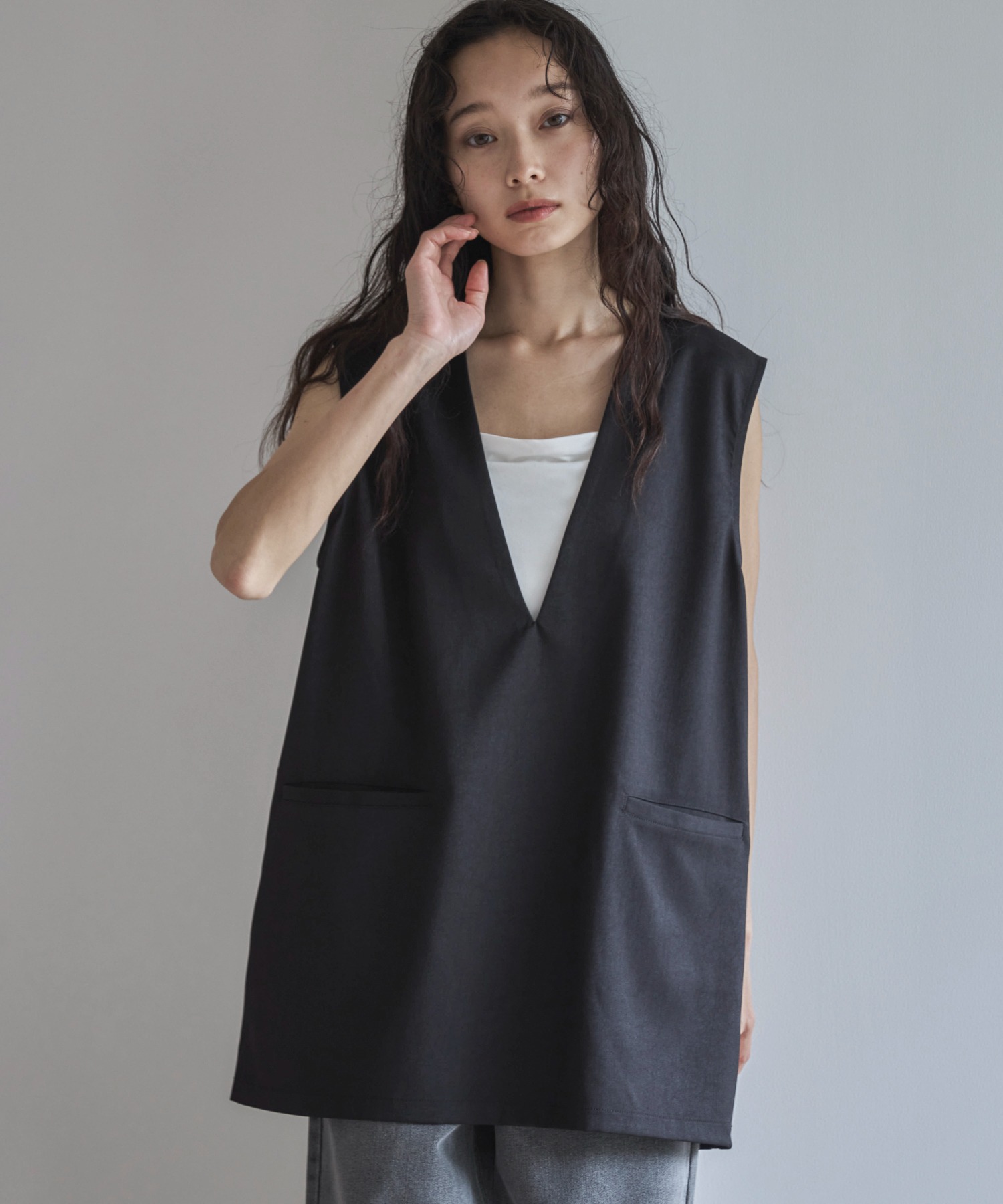 【セットアップ可】Vネックノースリーブプルオーバー