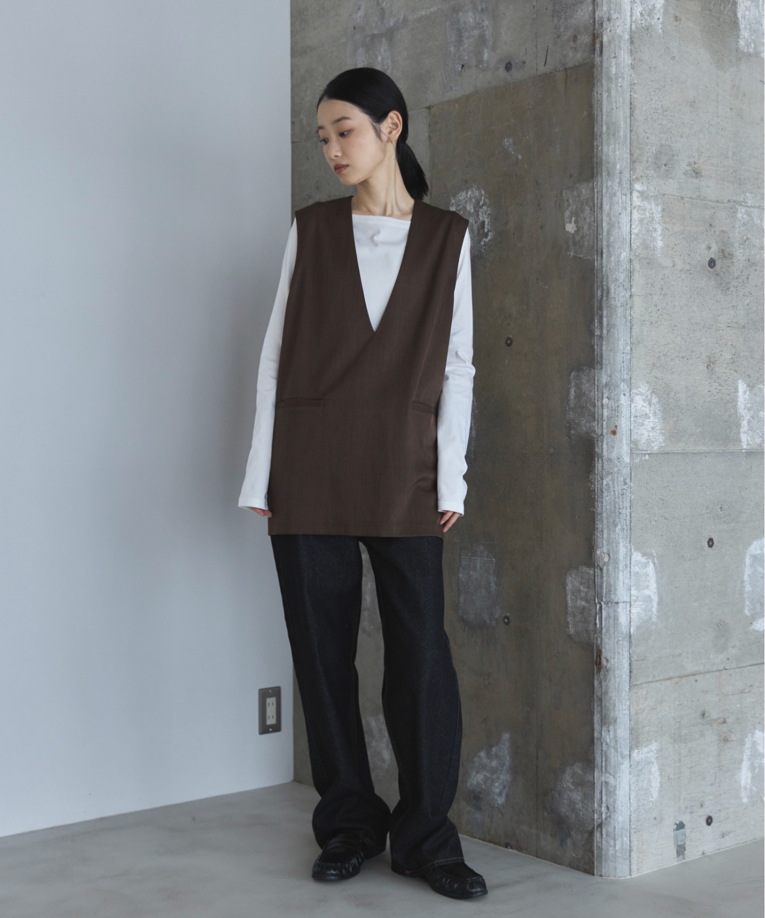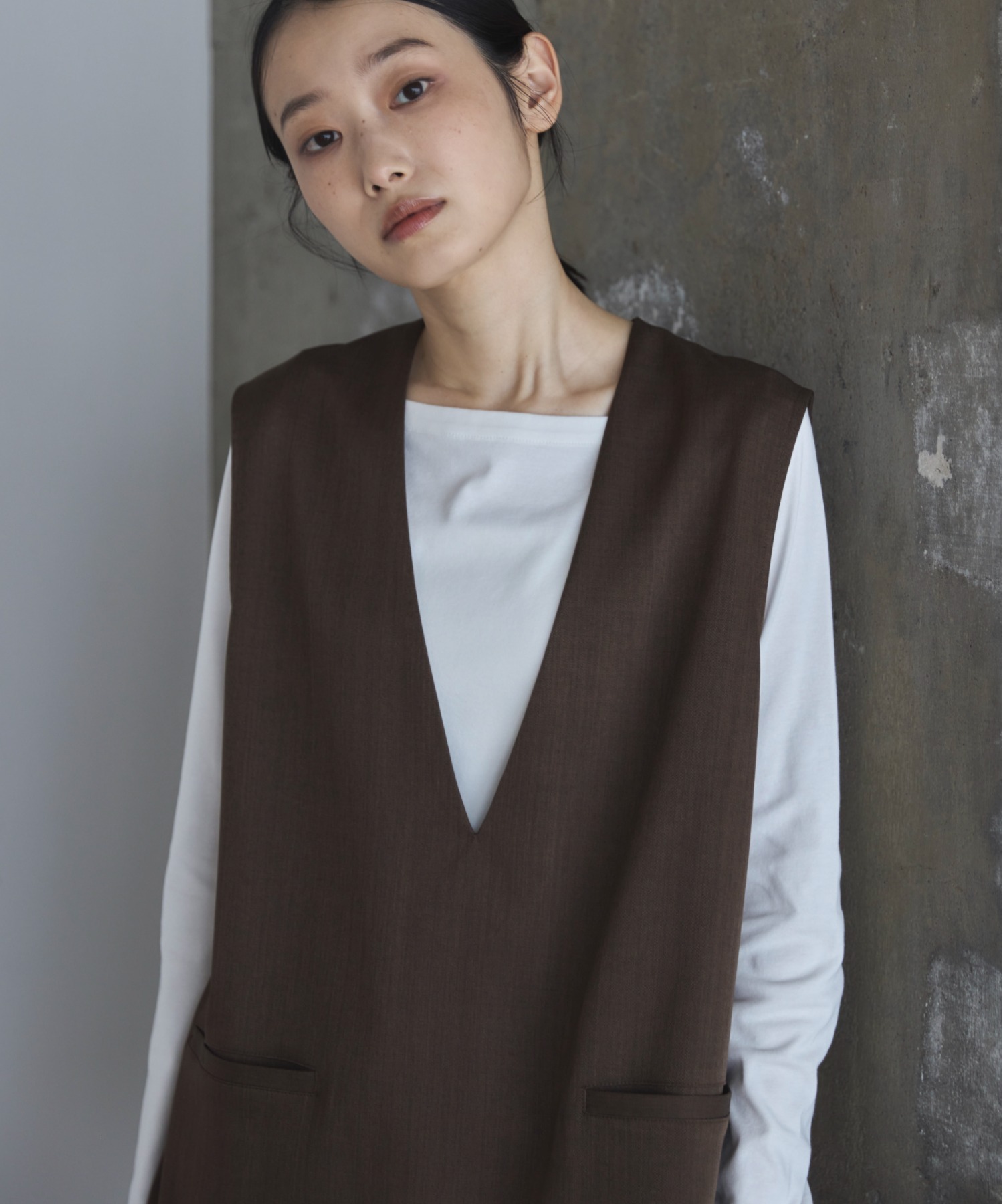 深めに開いたネック部分が程よい抜け感を演出。