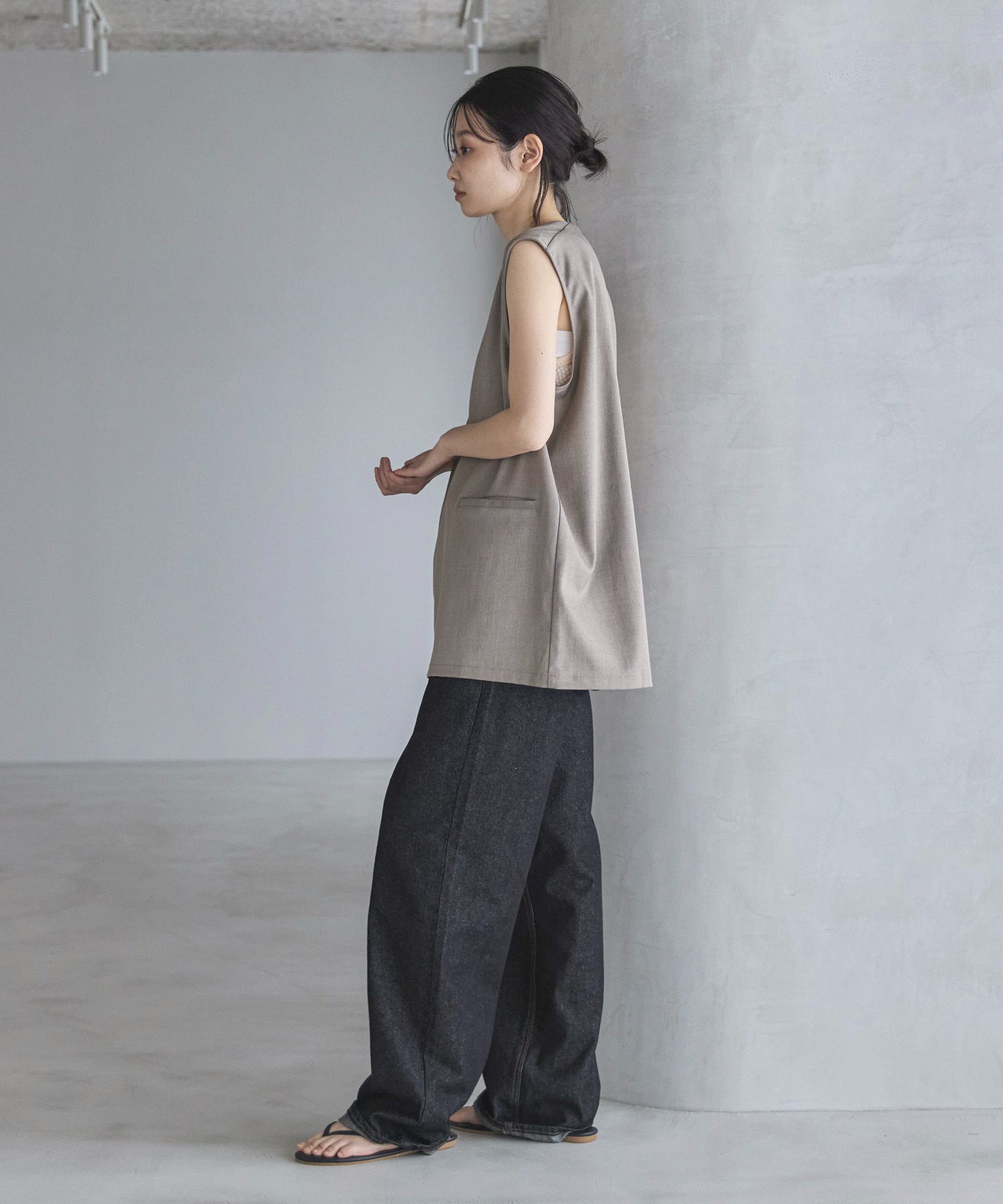 シンプルなキャミソールインナーやタンクトップをレイヤードすれば簡単にお洒落スタイリングが完成します。