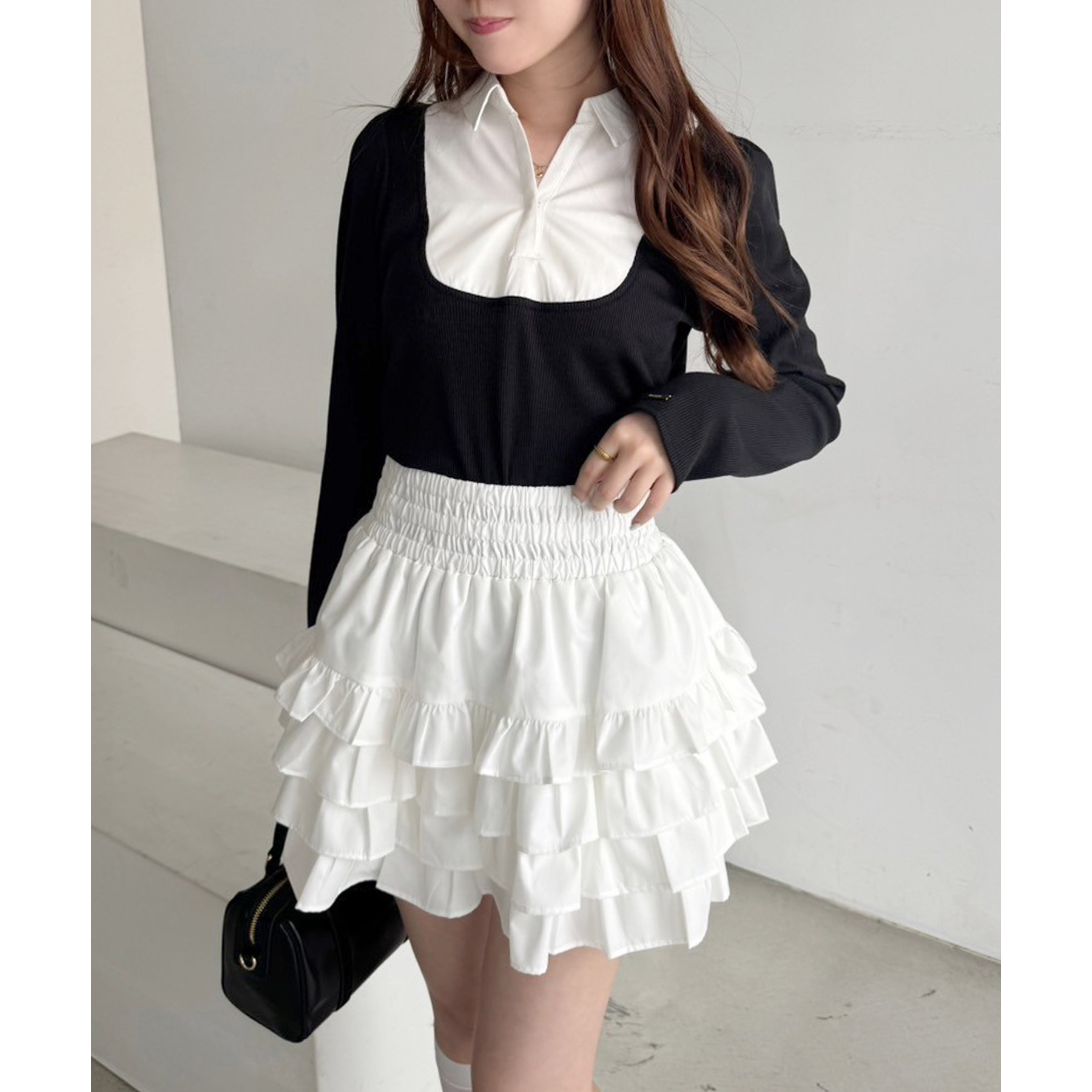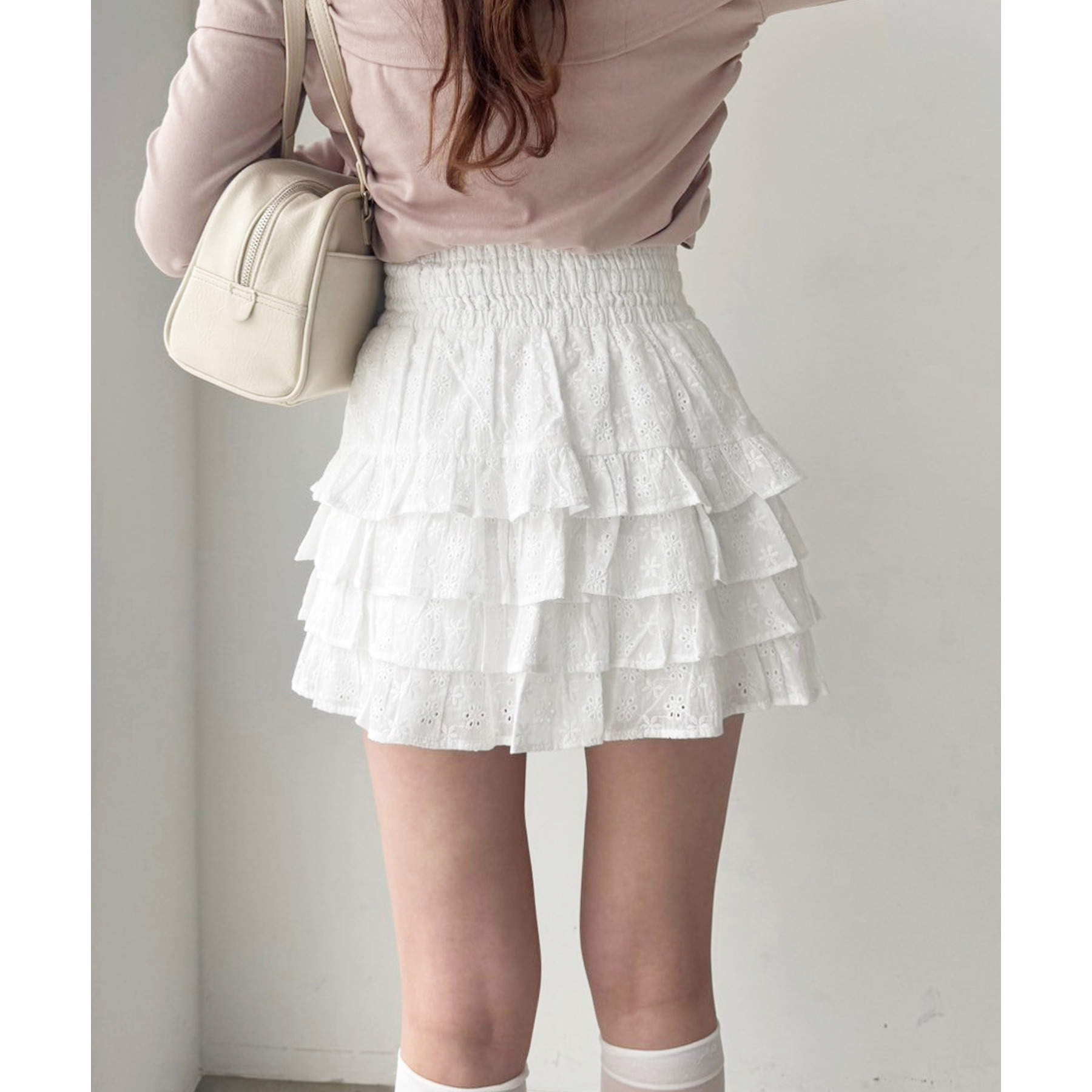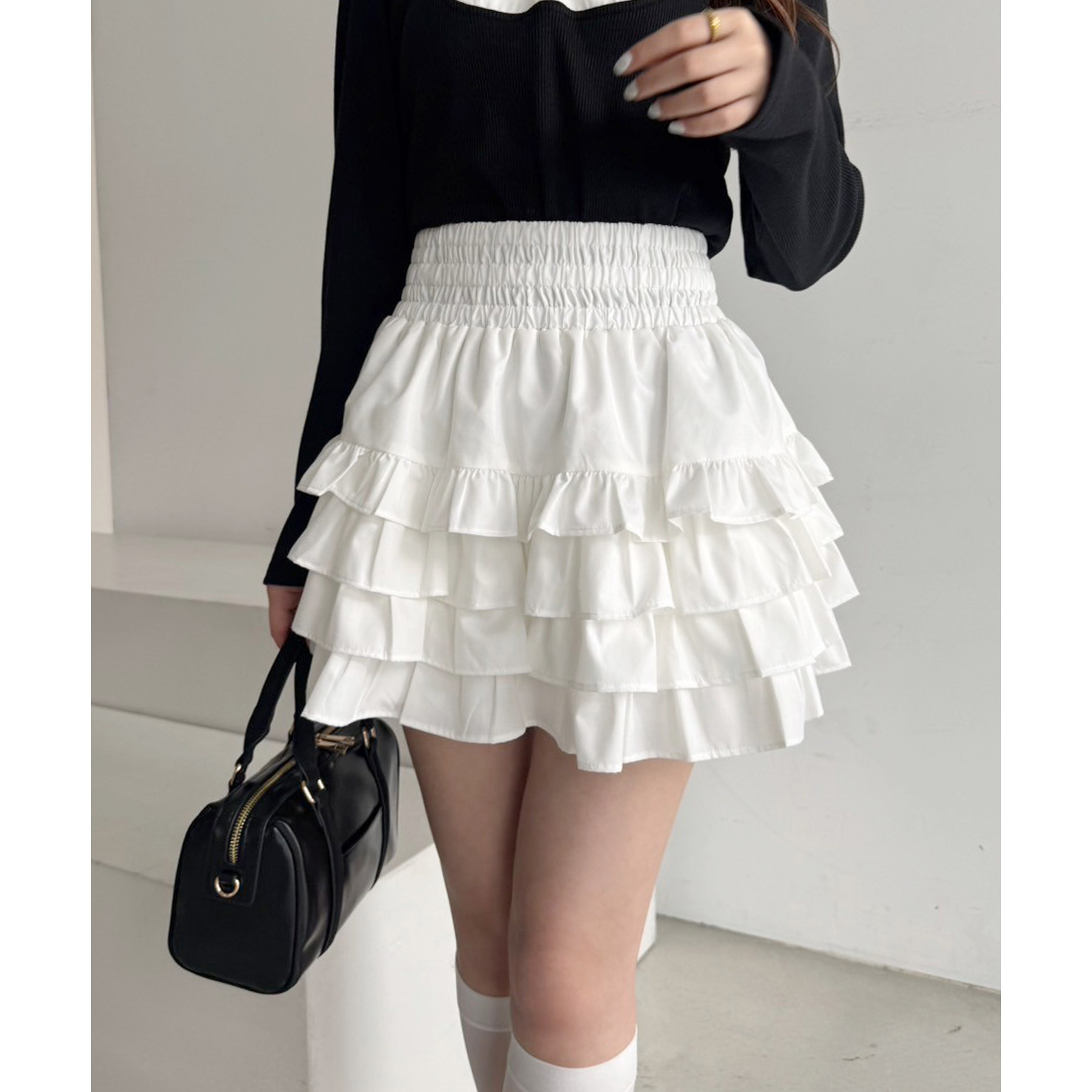 ふわっと広がるフリルティアードがかわいい韓国風スカート