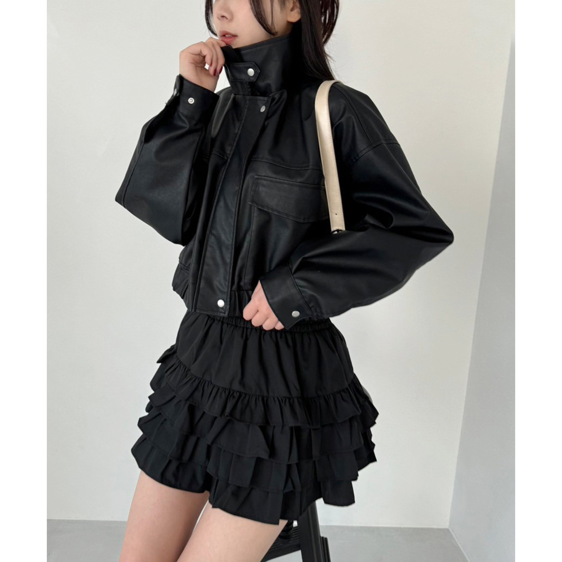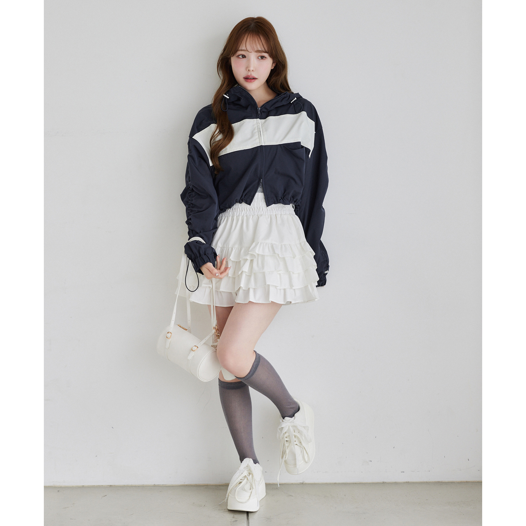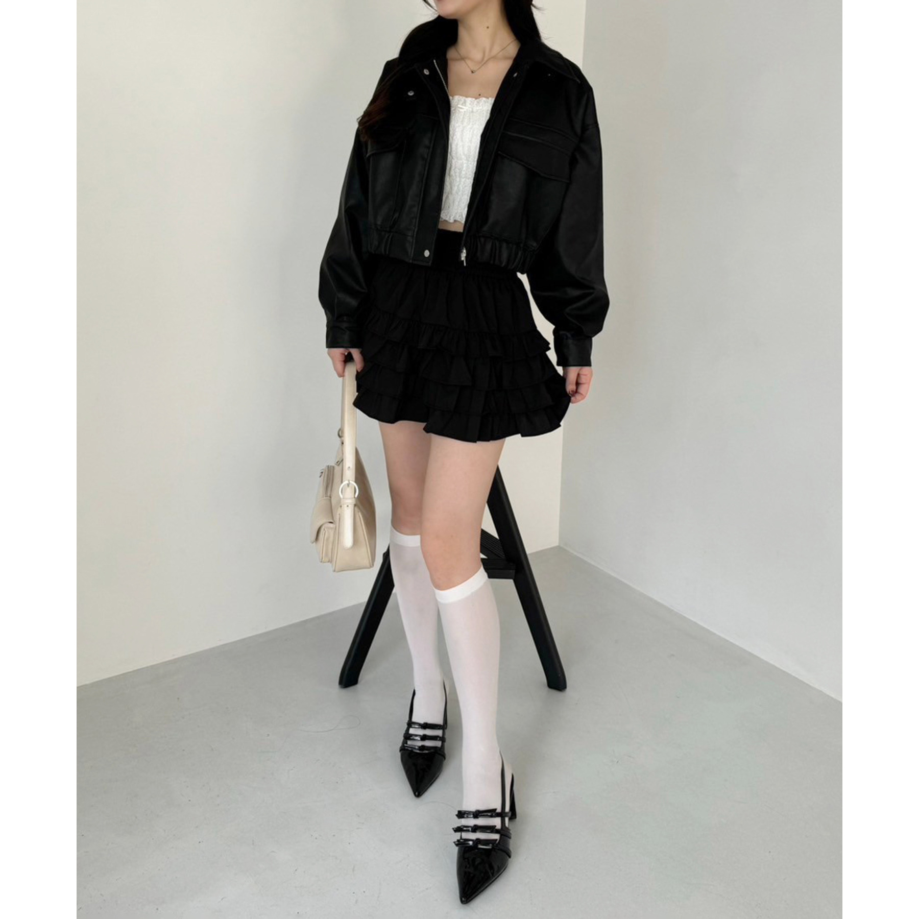 ふわっと広がるフリルティアードがかわいい韓国風スカート