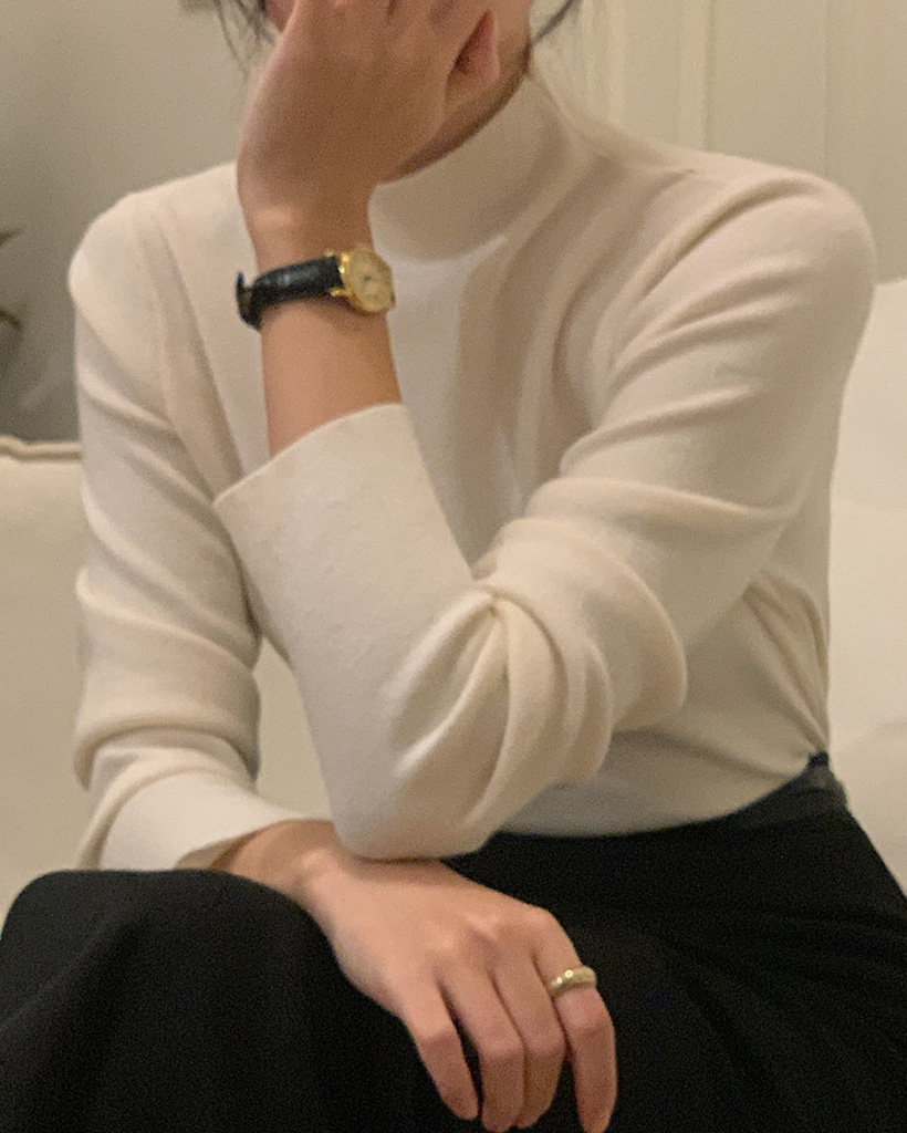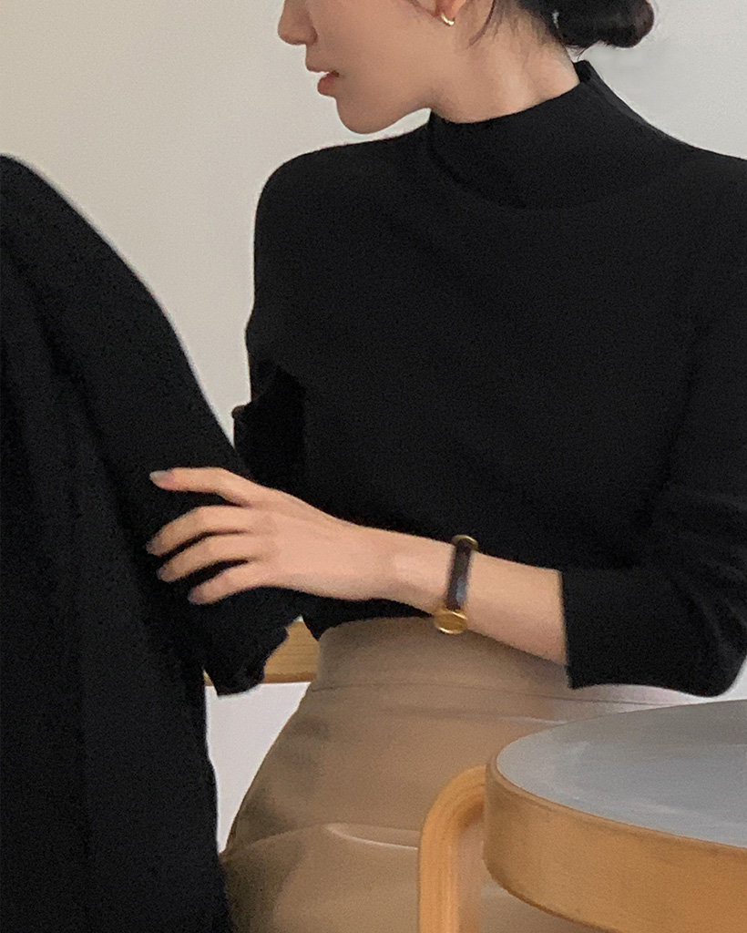 [made] Moist soft tock half neck knit