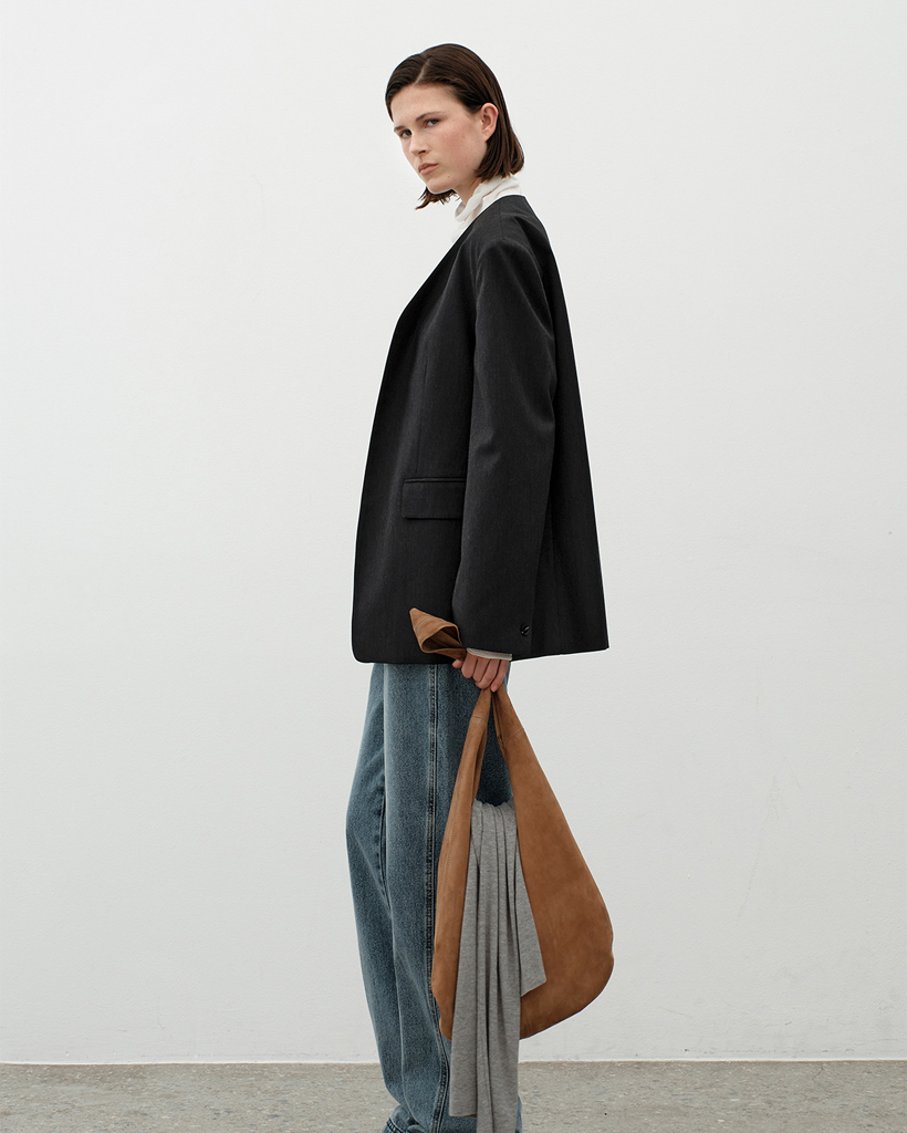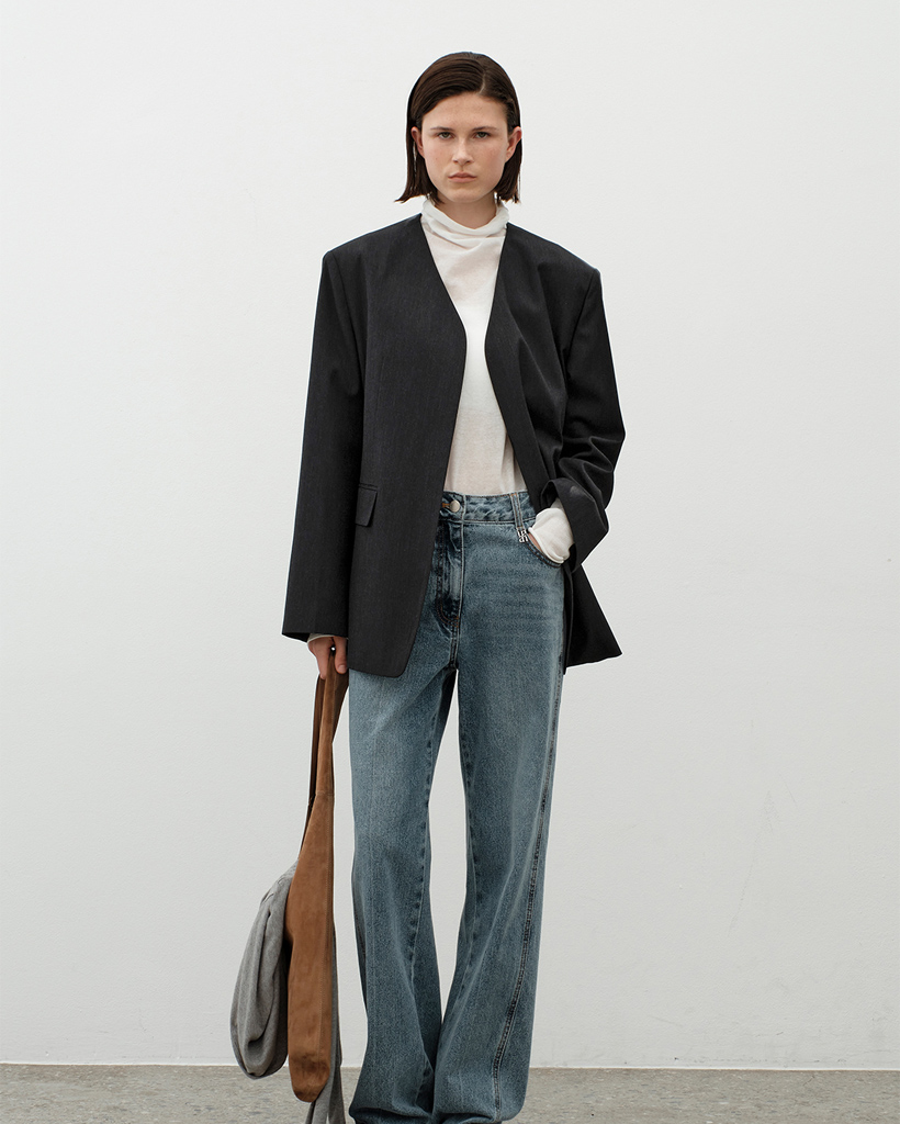ゆとりのあるシルエットとミニマルなディテールがモダンなムードを演出し、