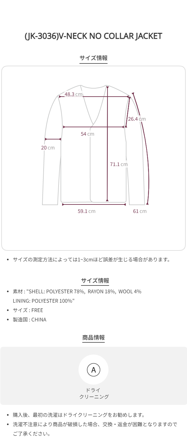 (JK-3036)V-NECK NO COLLAR JACKET