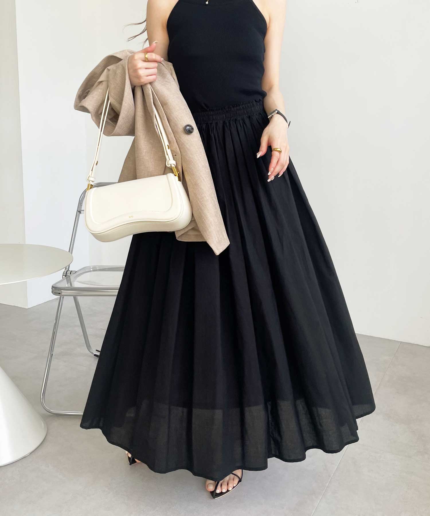 こなれ感あるナチュラルなコットン素材と、フレアーシルエットがシーズンムードを高めるスカート。