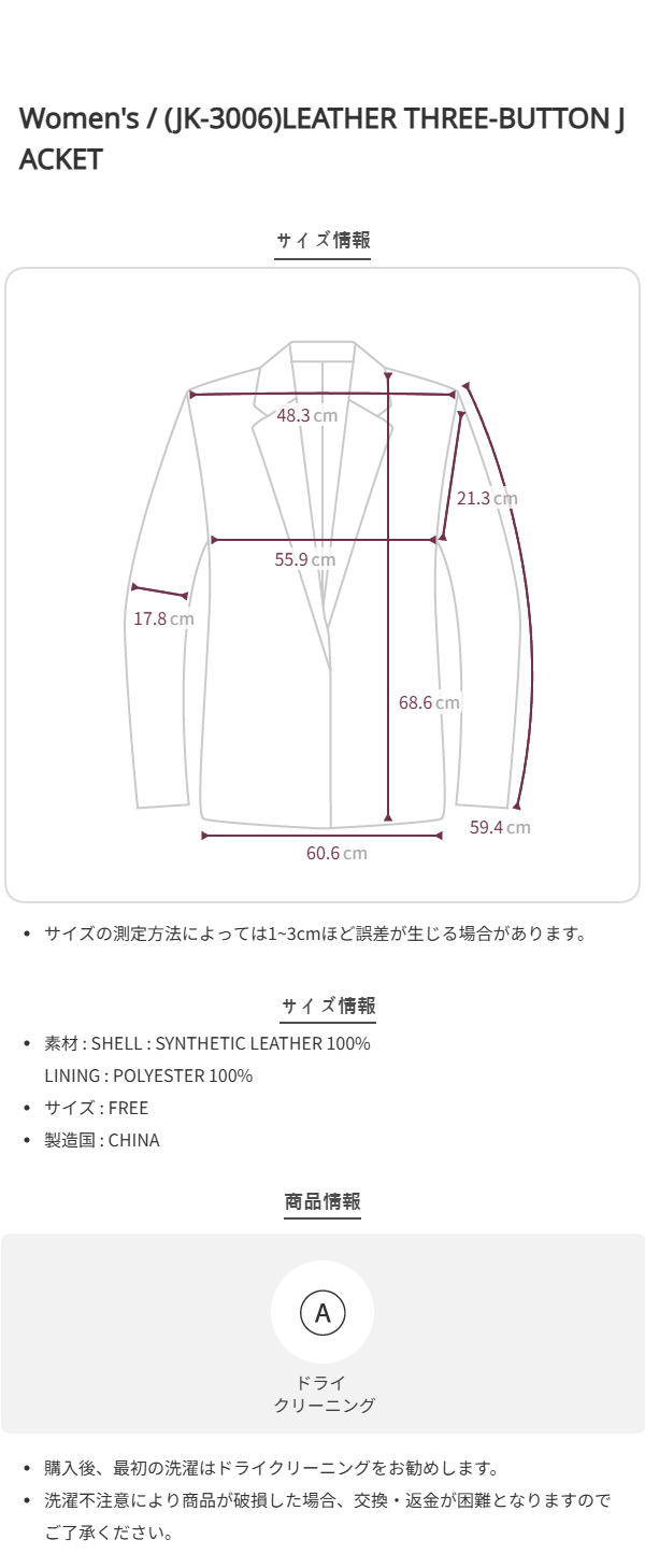 (JK-3006)LEATHER THREE-BUTTON JACKET
