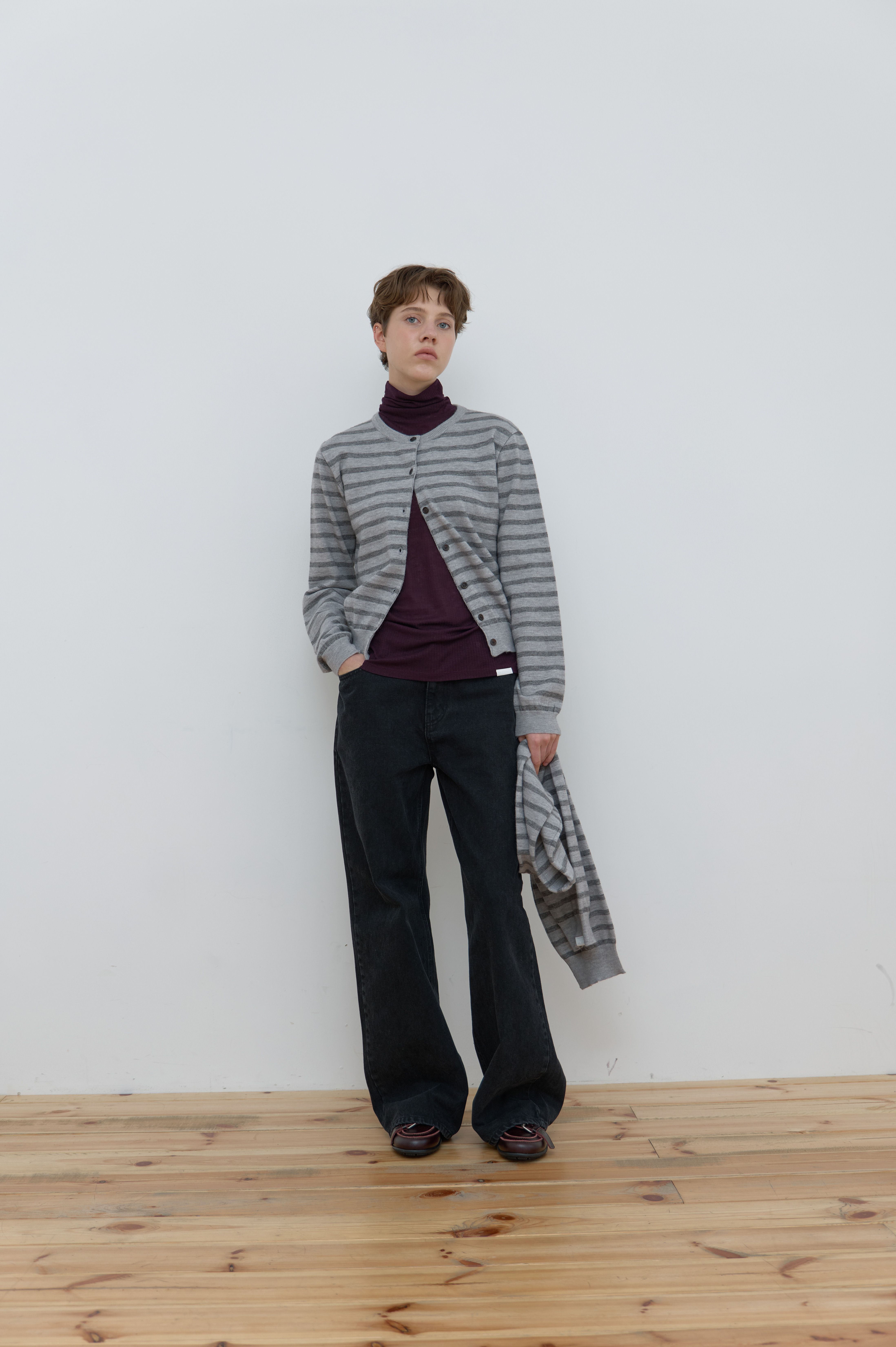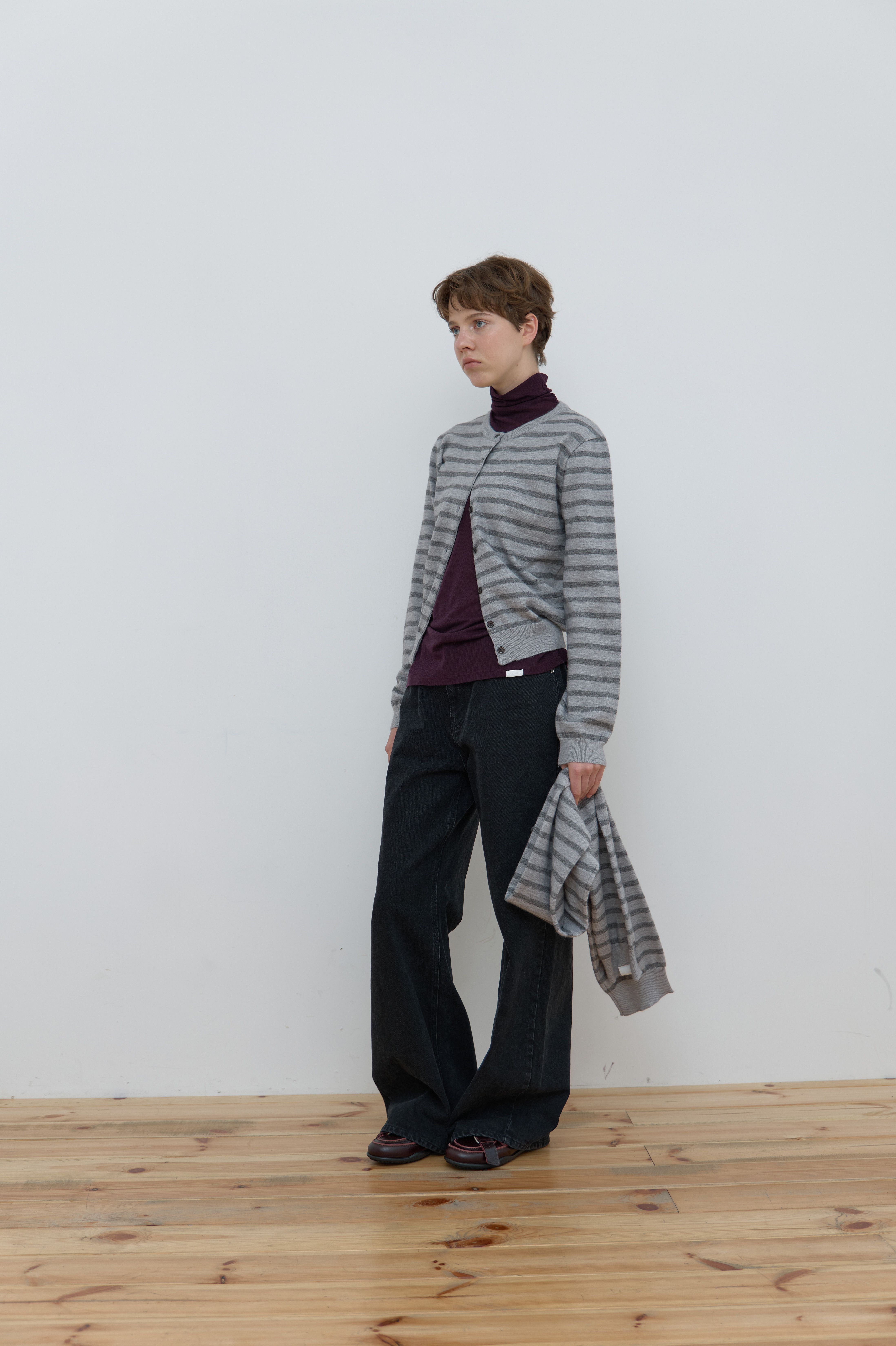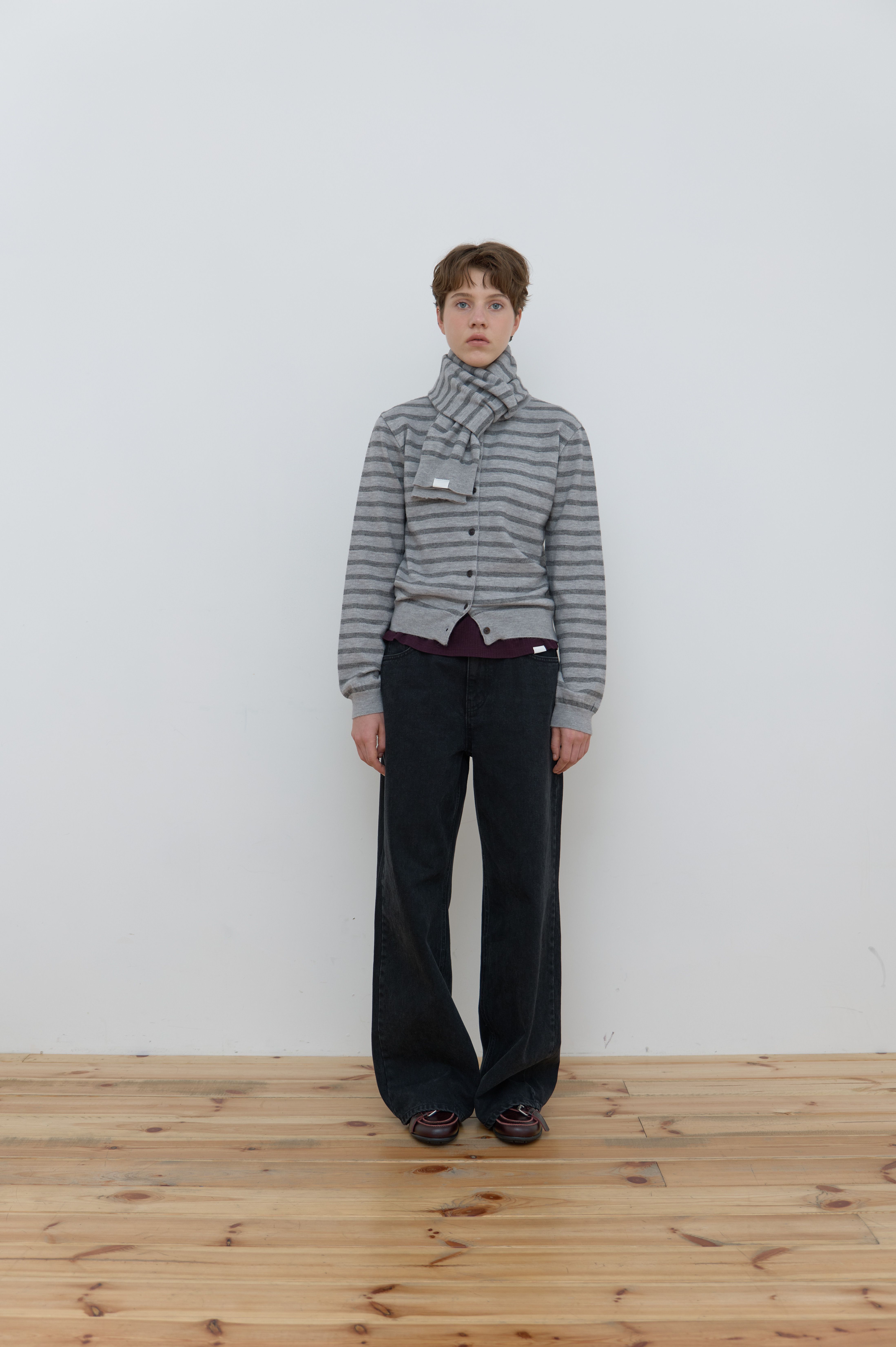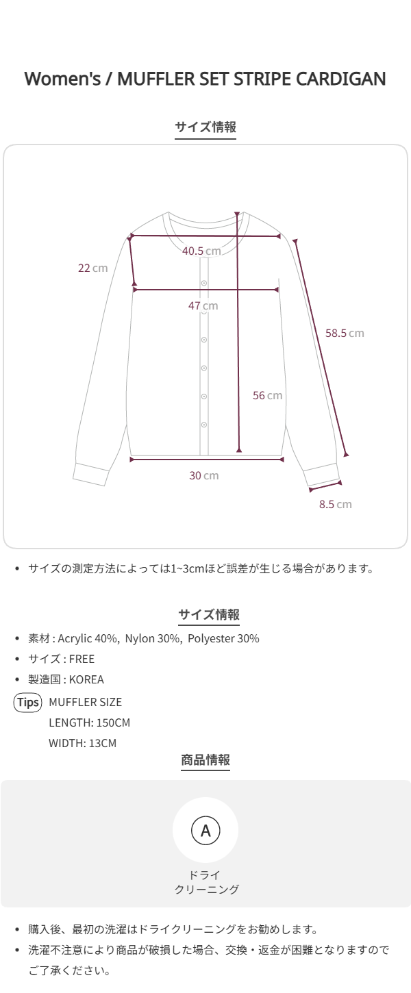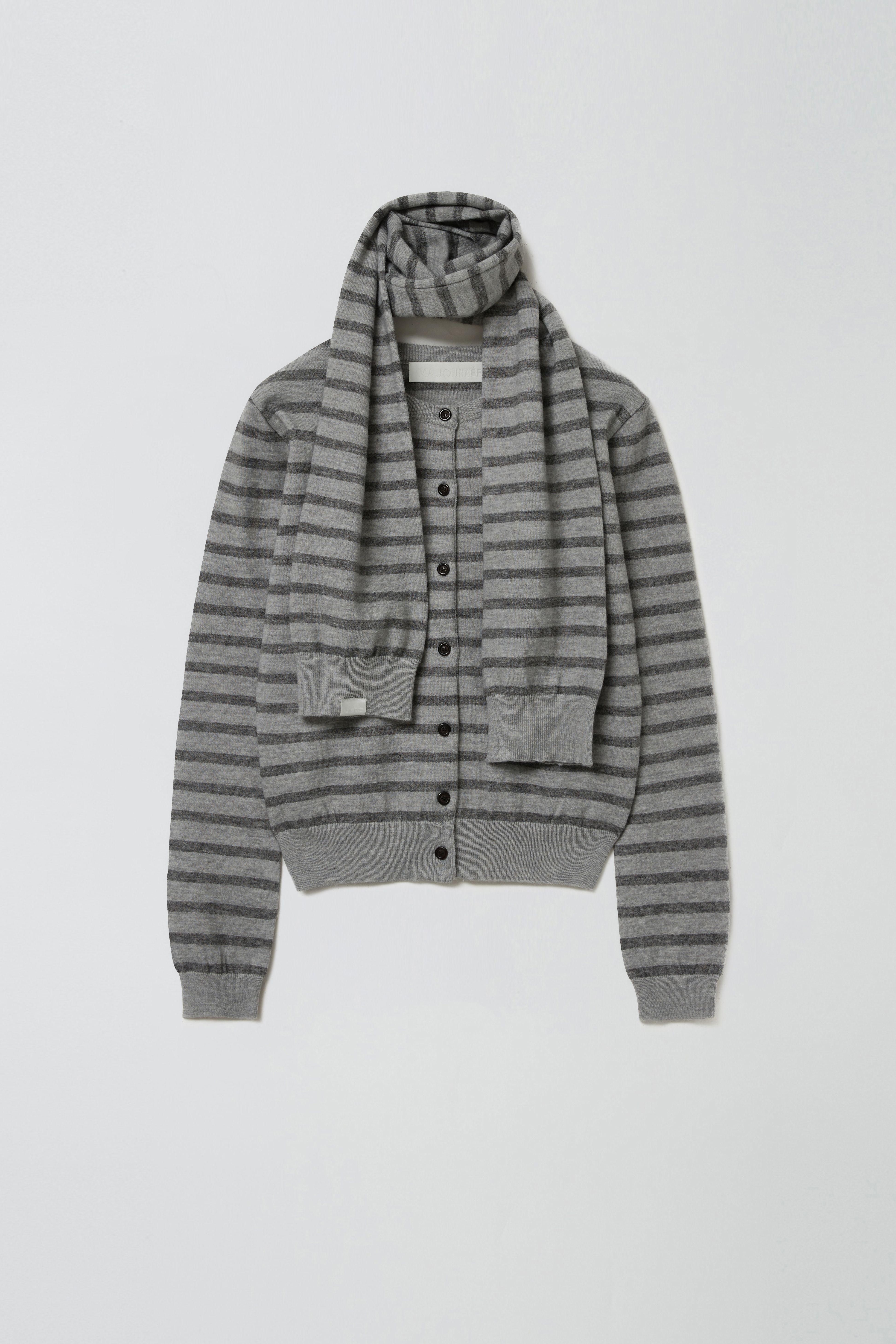 MUFFLER SET STRIPE CARDIGAN_GREY