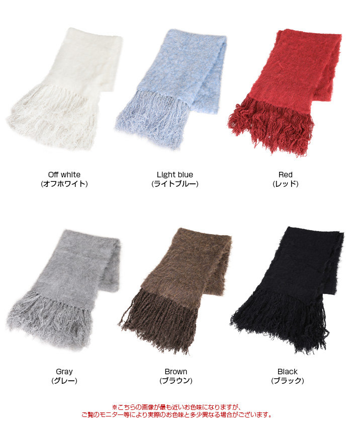・程よい長さとフリンジデザインがアクセントに。巻き方次第で表情を変えられる一枚