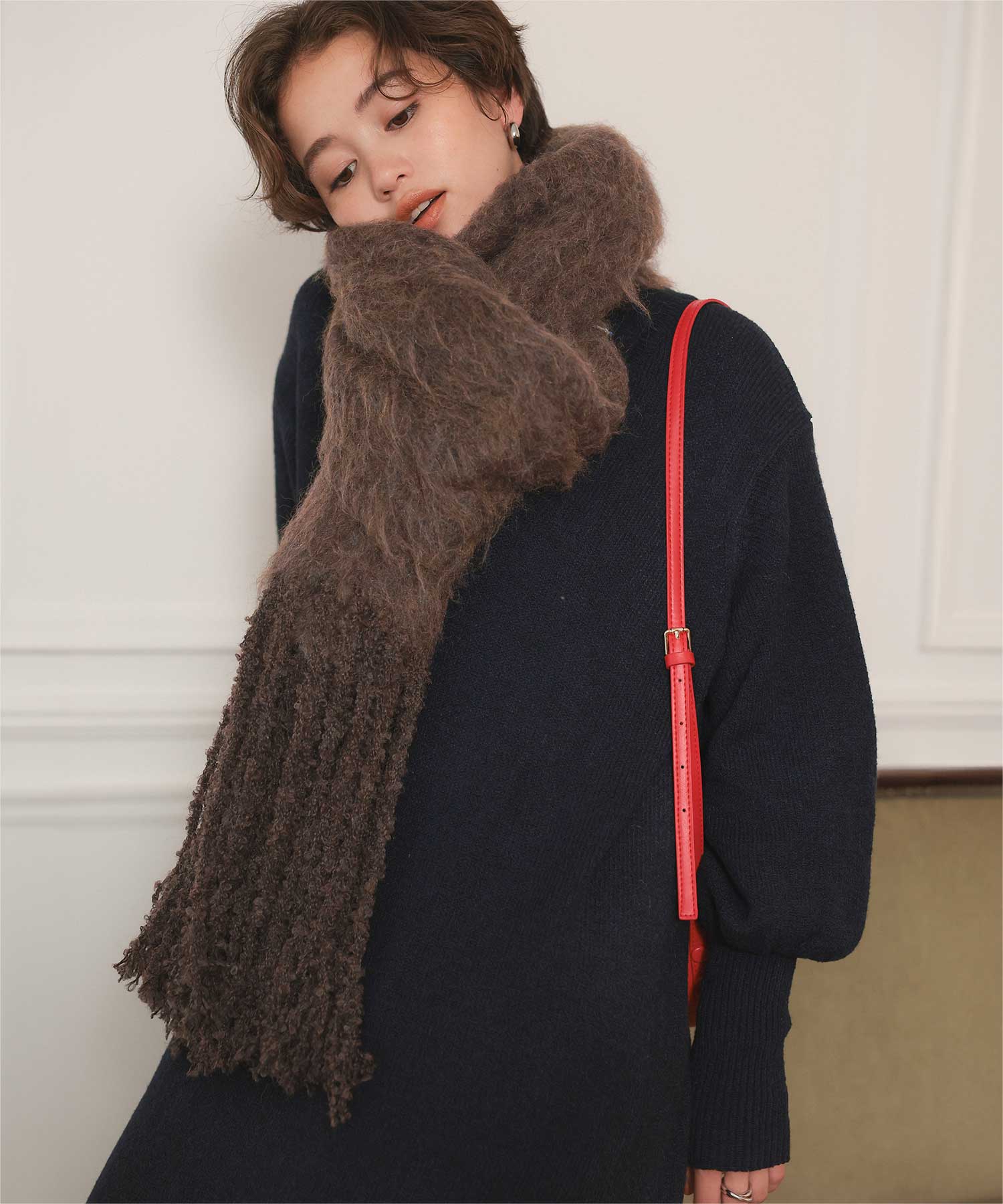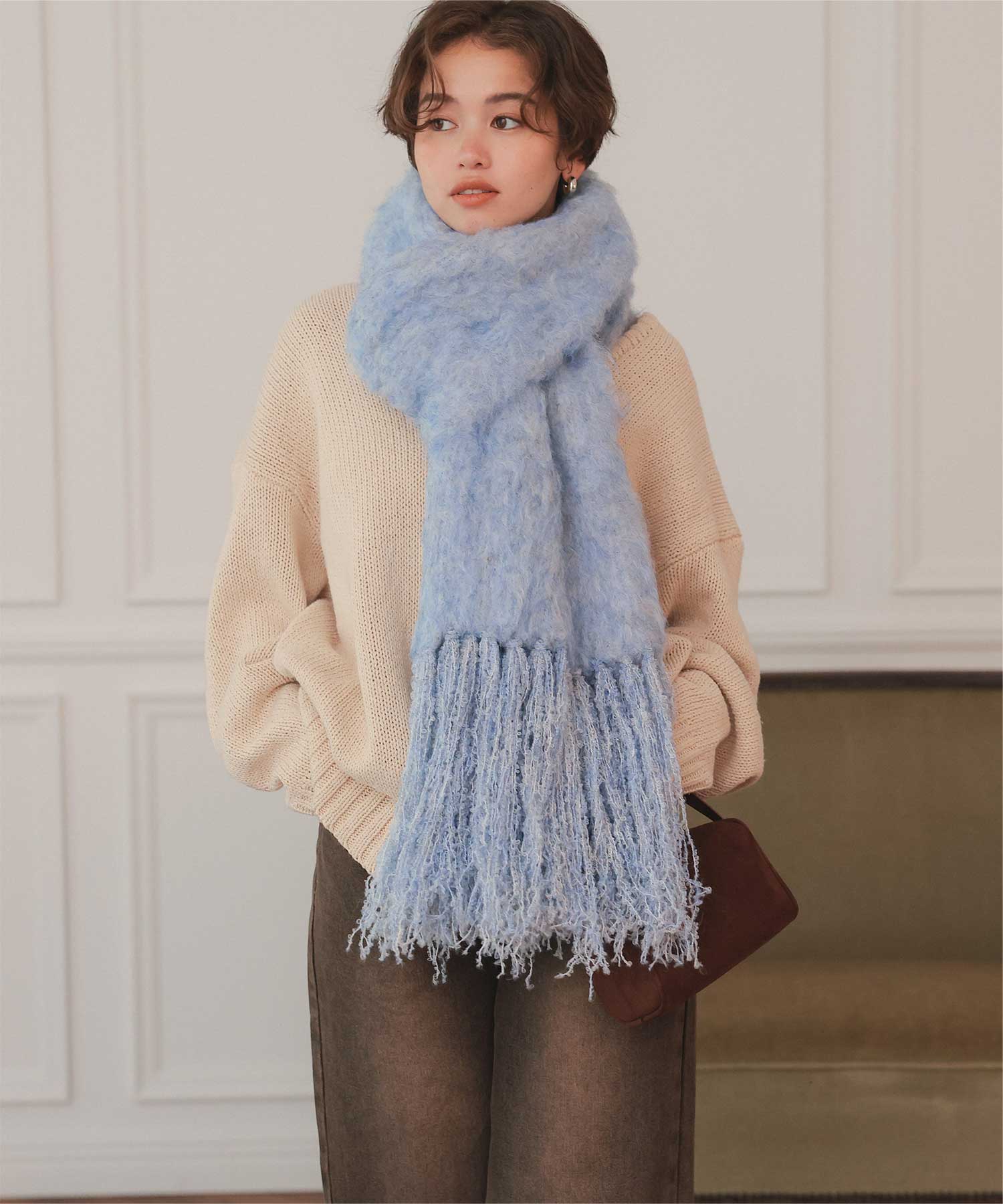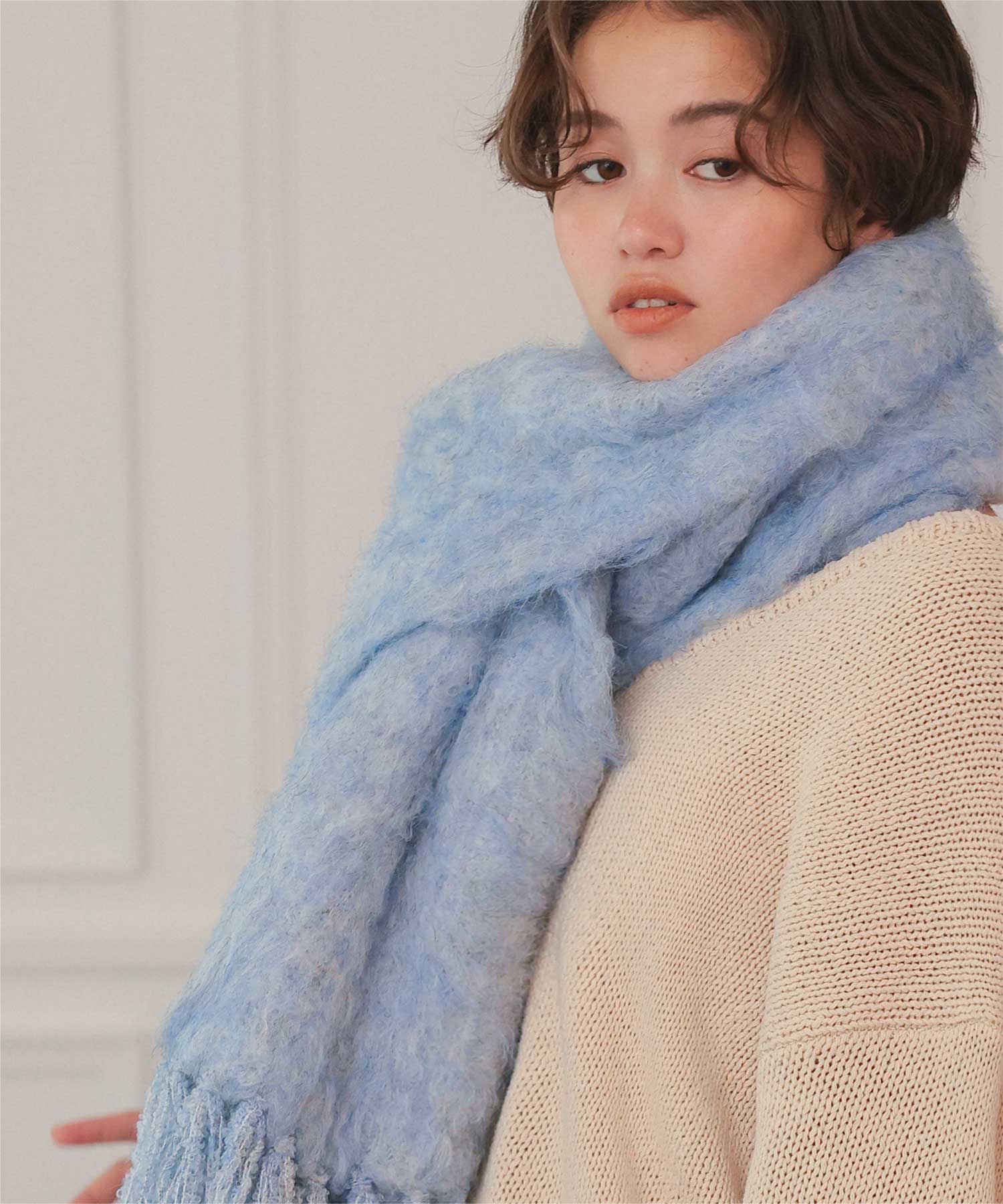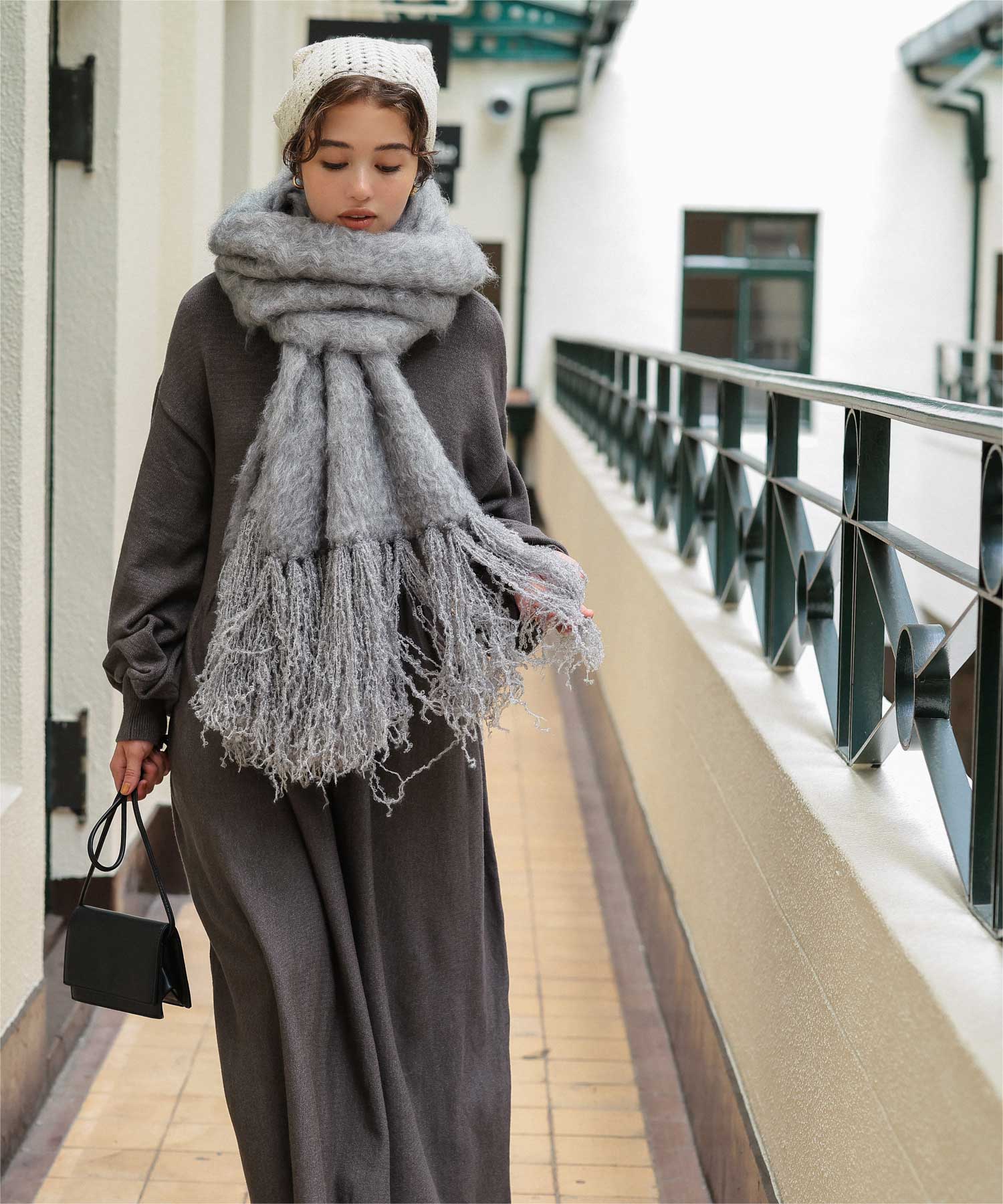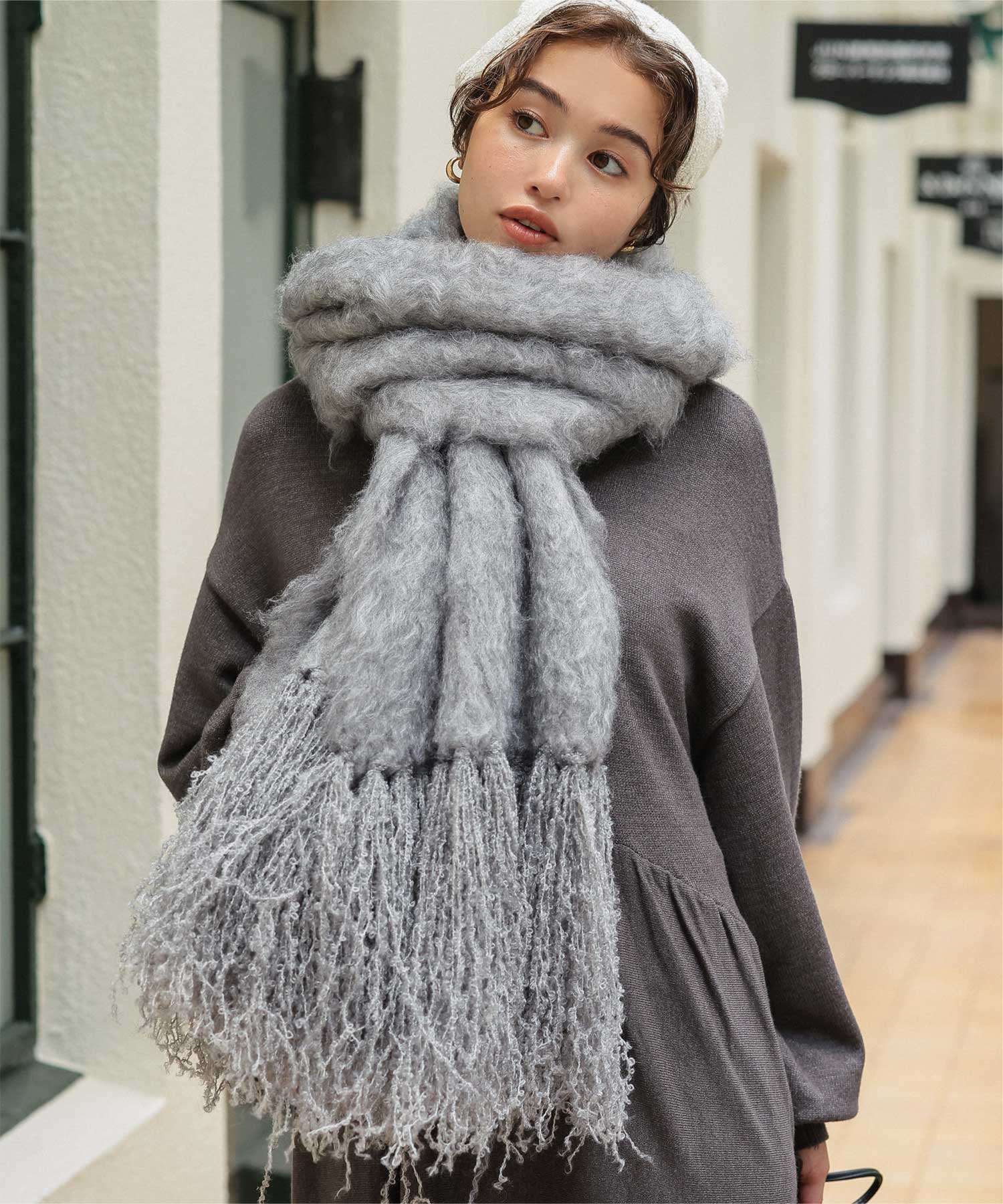 ・ふんわりとしたシャギー素材で柔らかく、暖かさとトレンドを両立したマフラー
