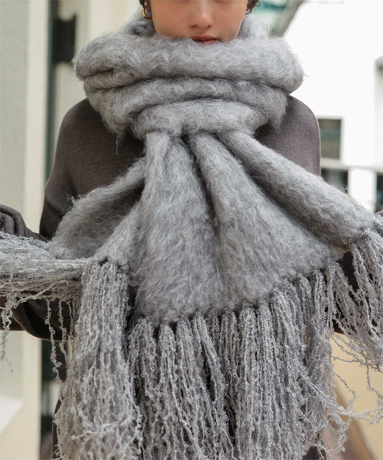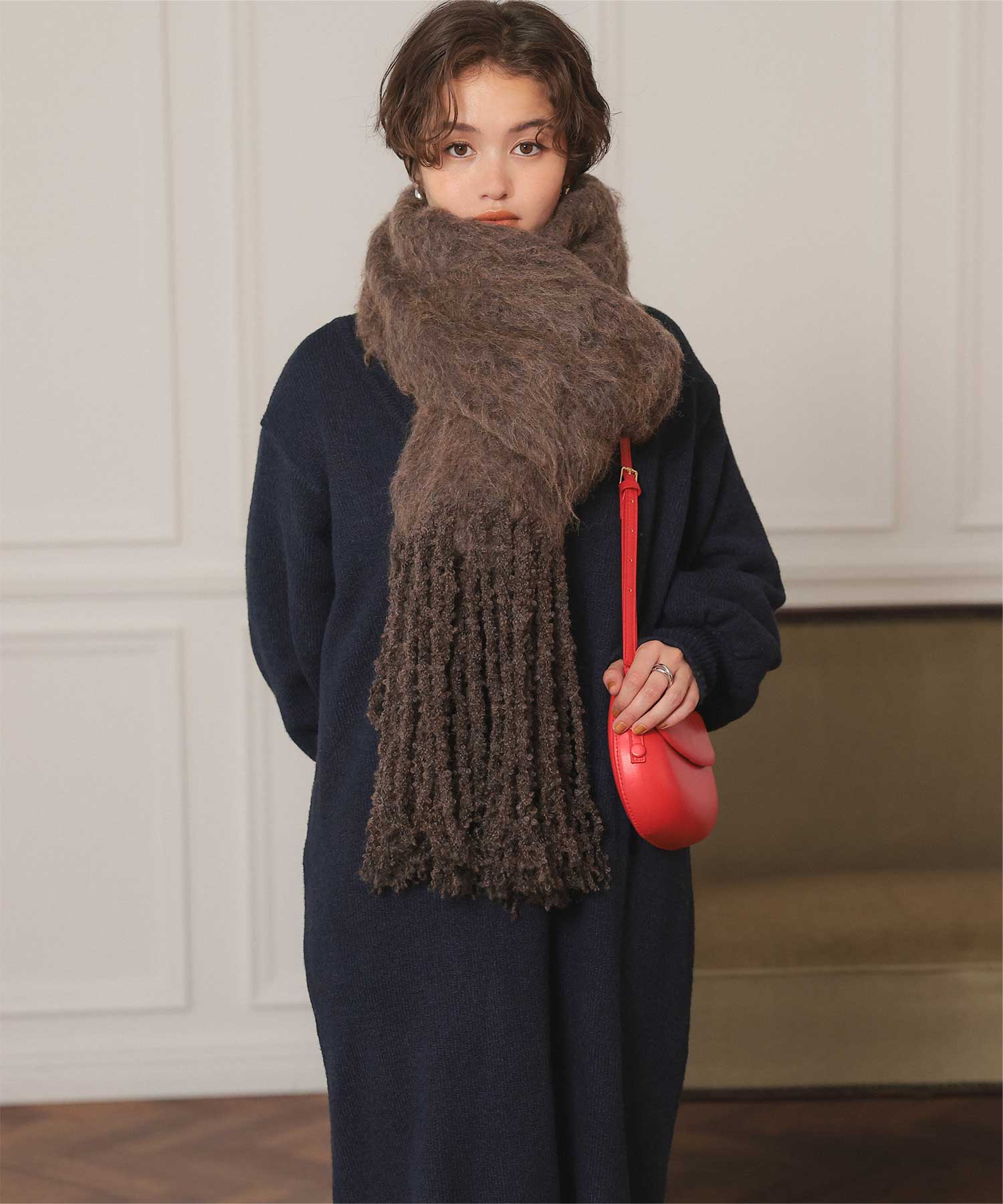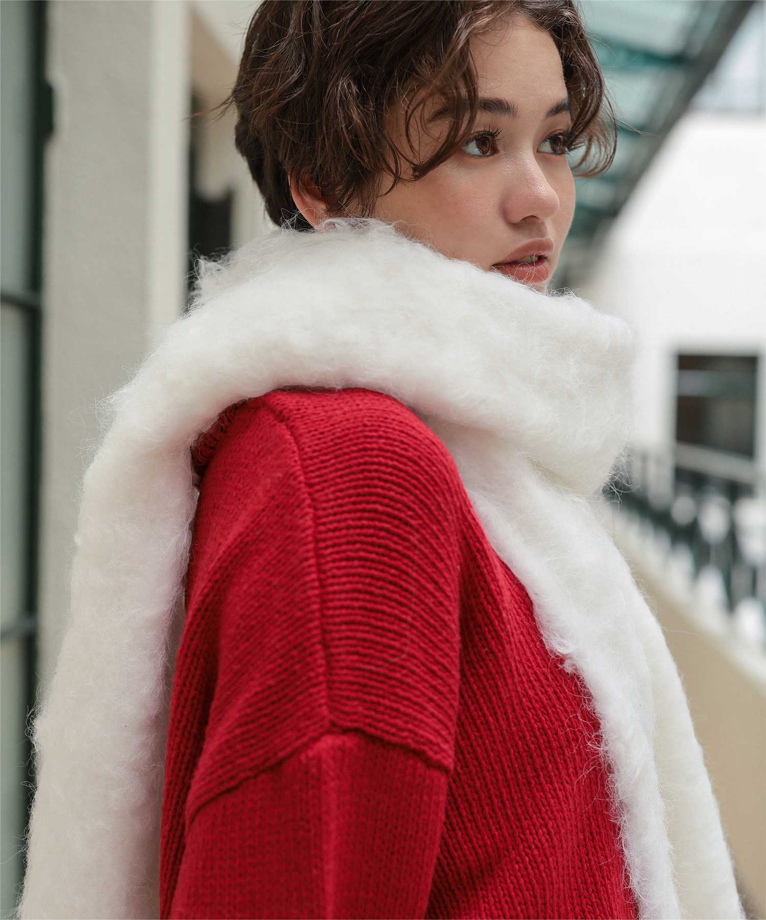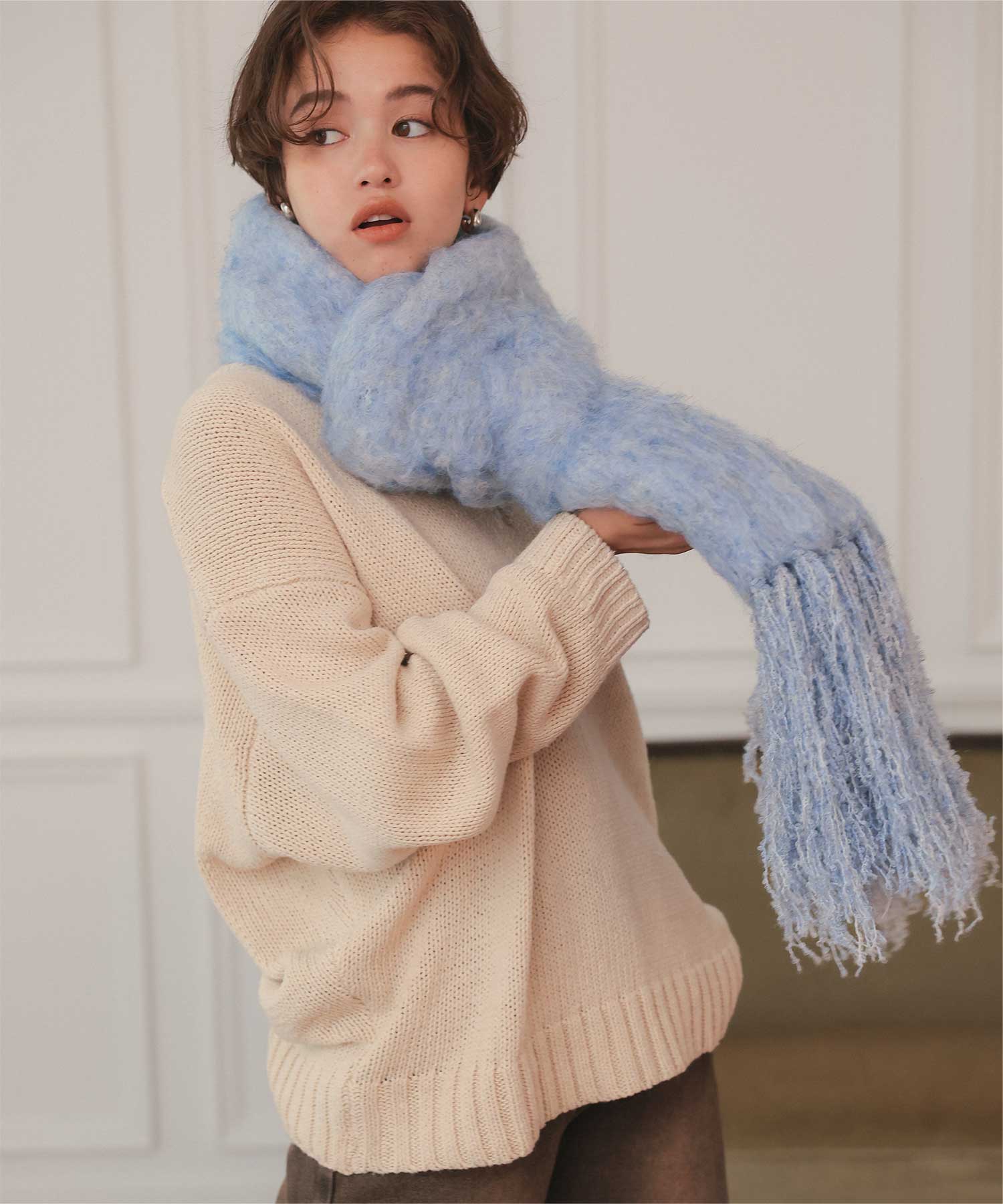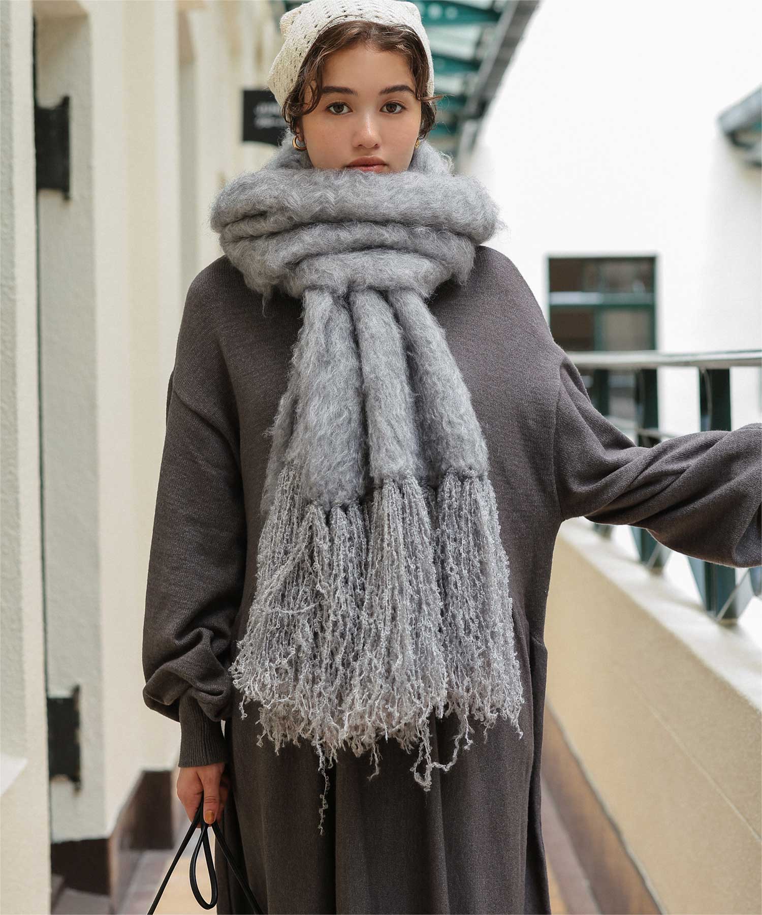・ふんわりとしたシャギー素材で柔らかく、暖かさとトレンドを両立したマフラー