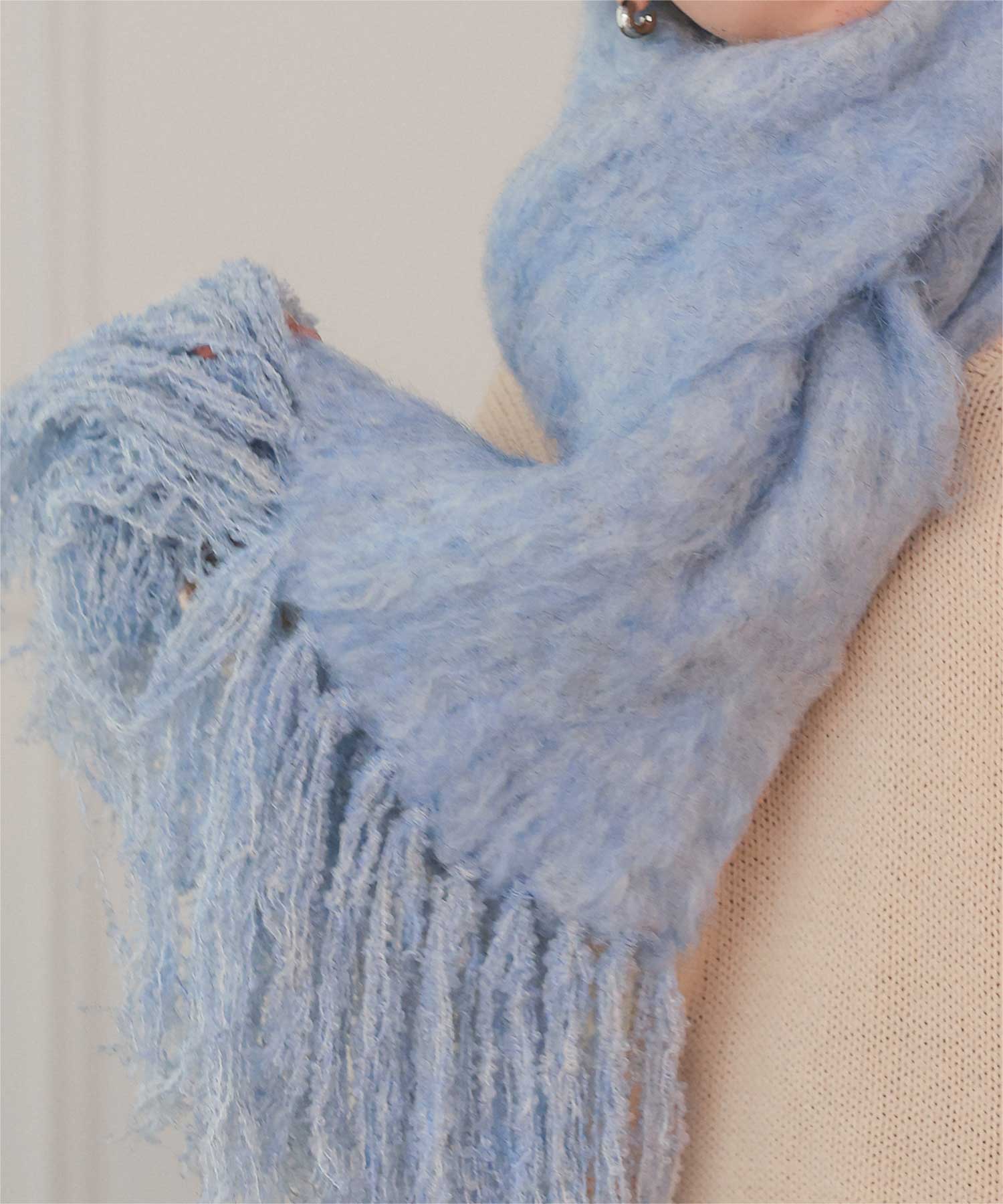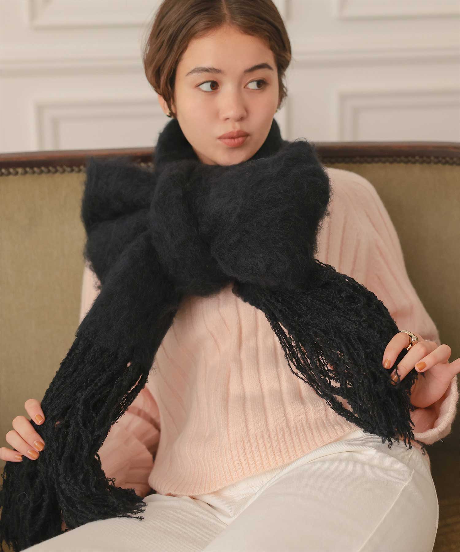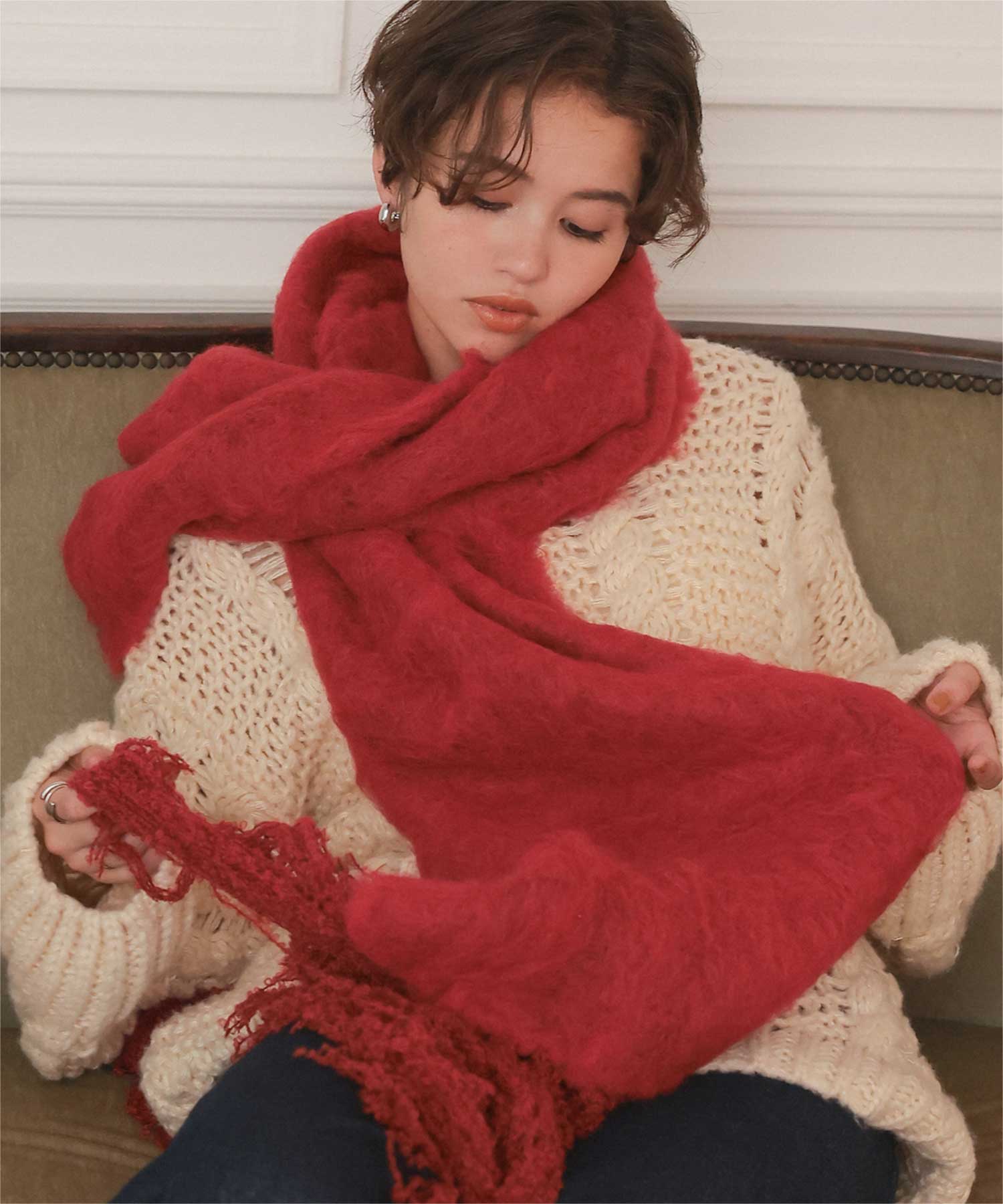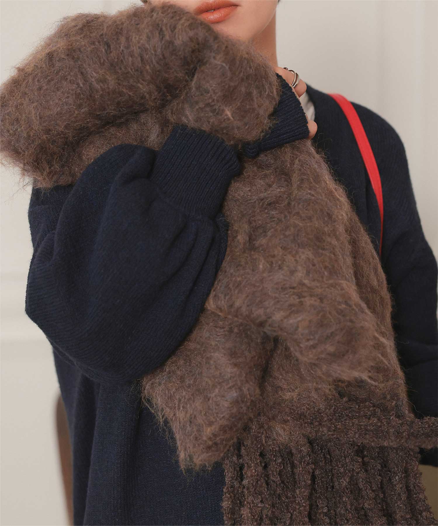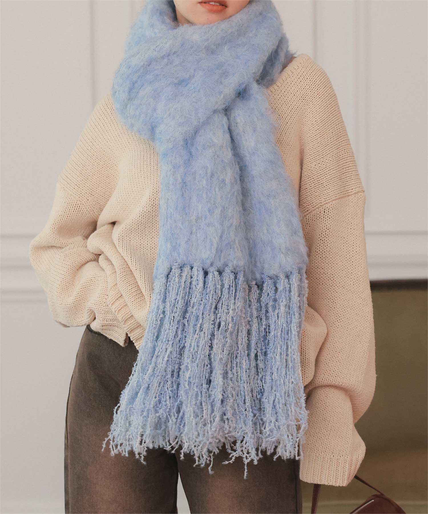 ・ふんわりとしたシャギー素材で柔らかく、暖かさとトレンドを両立したマフラー