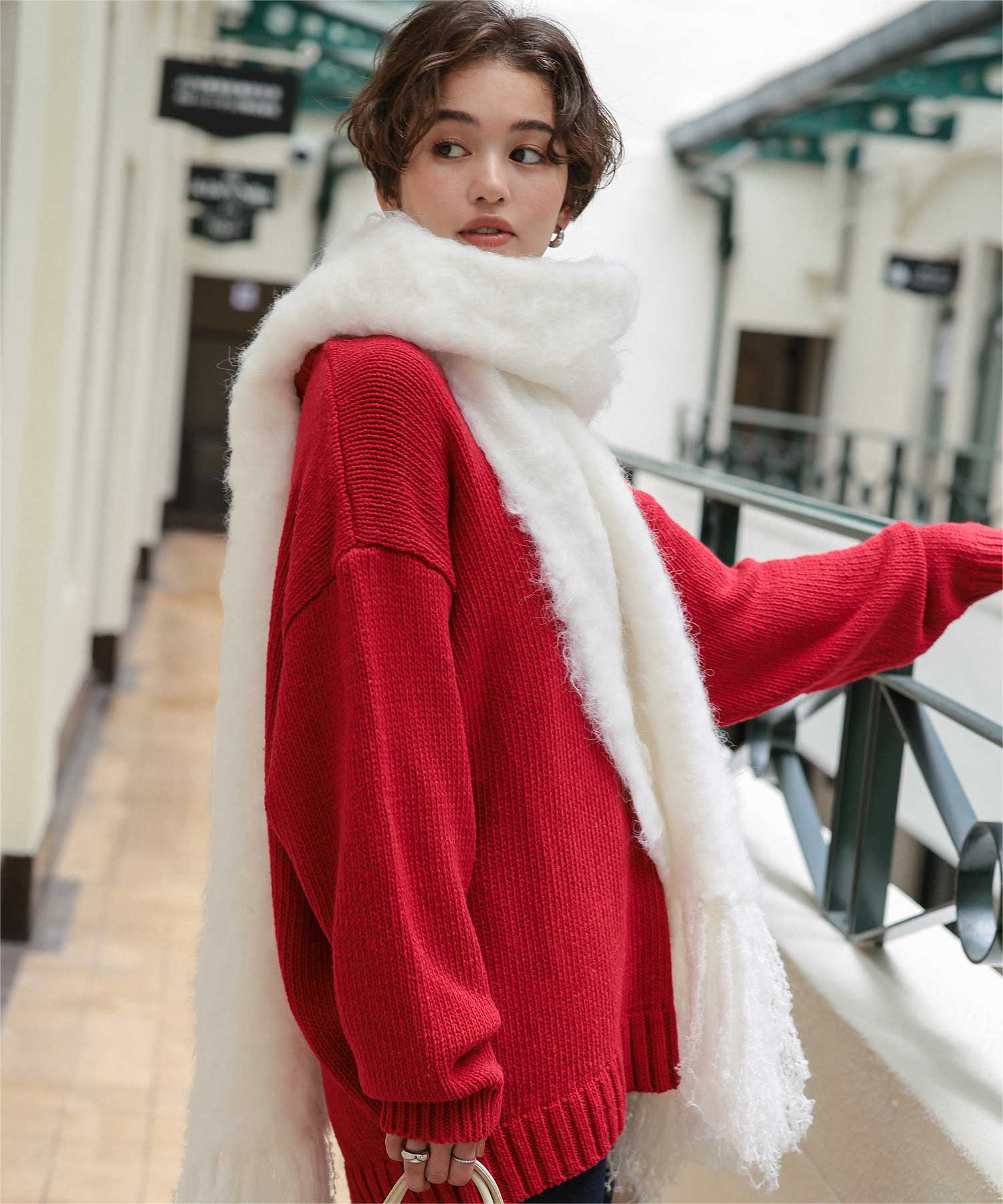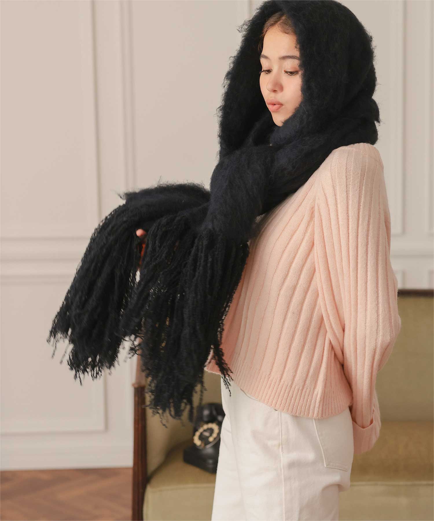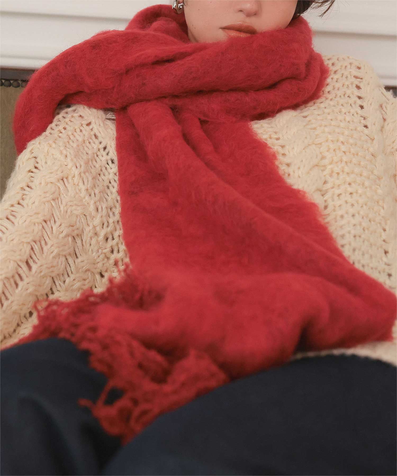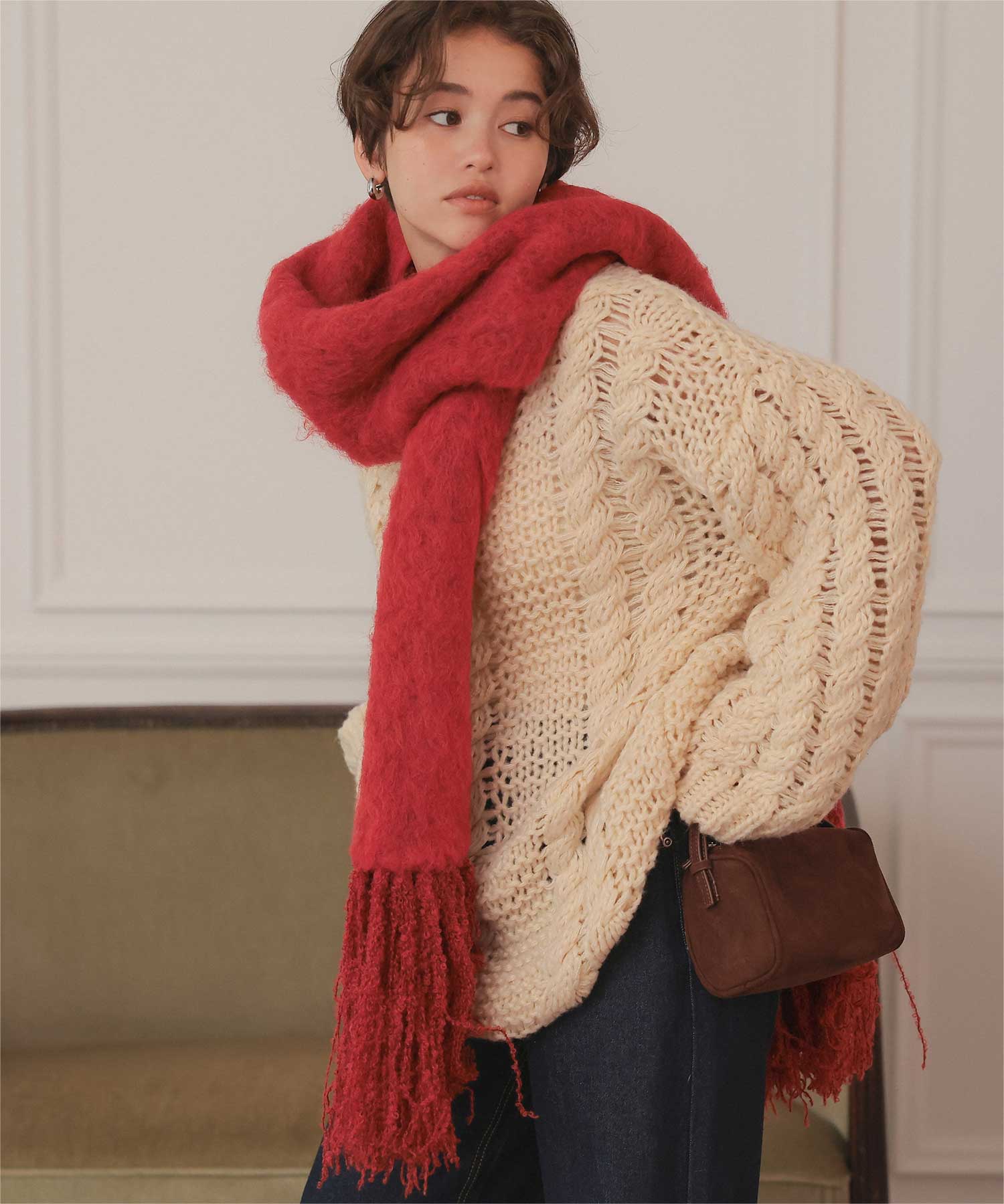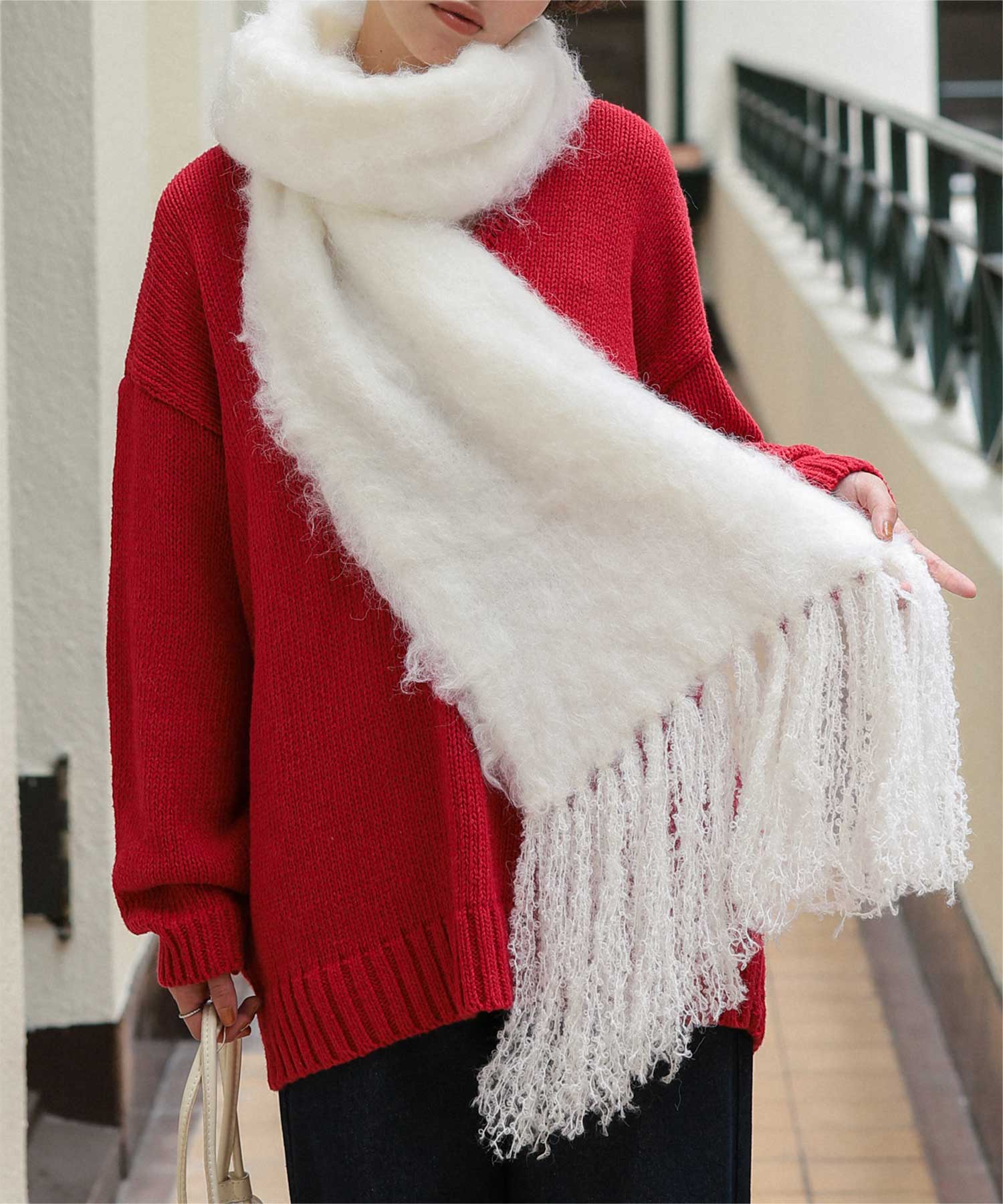 ・ふんわりとしたシャギー素材で柔らかく、暖かさとトレンドを両立したマフラー