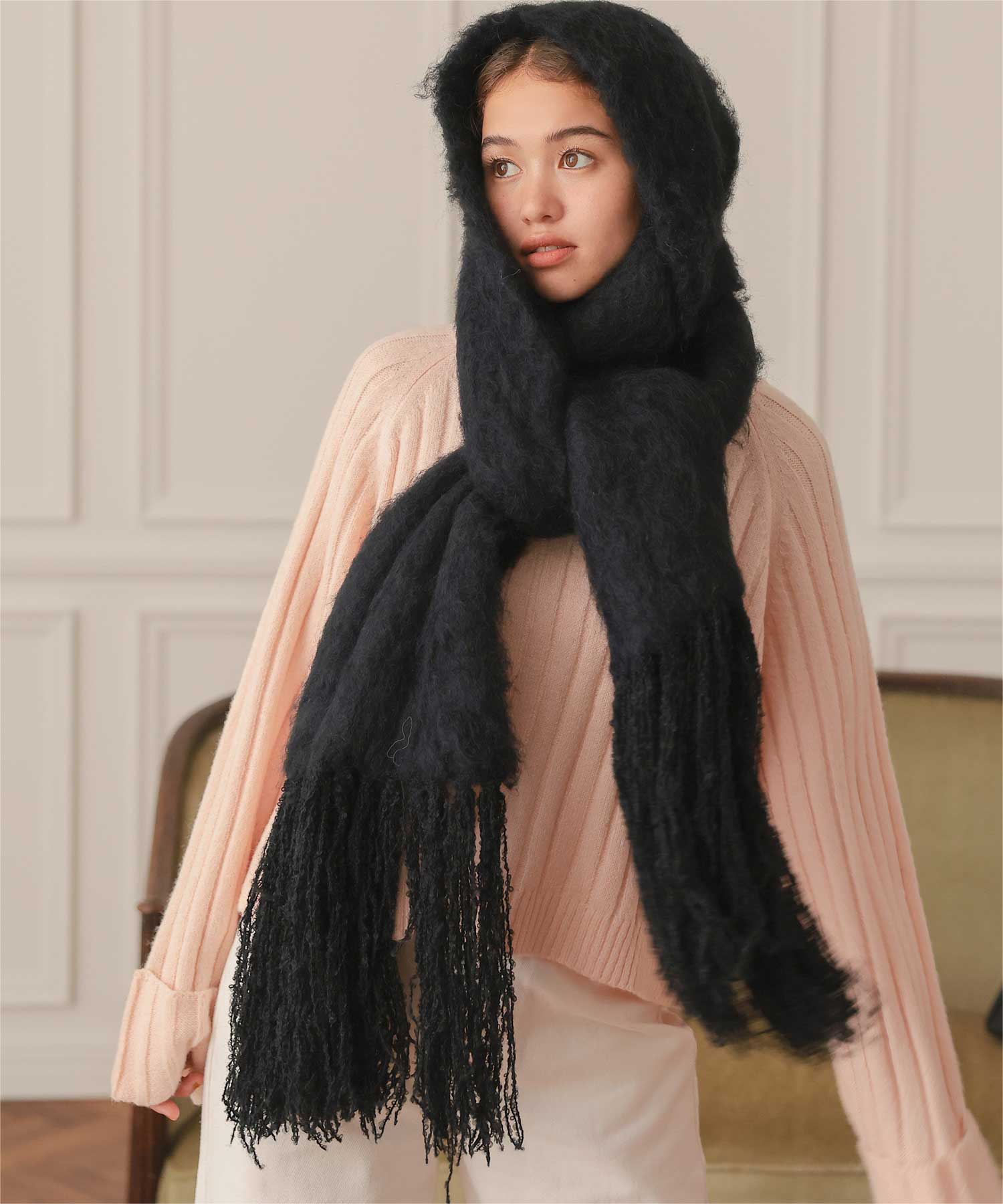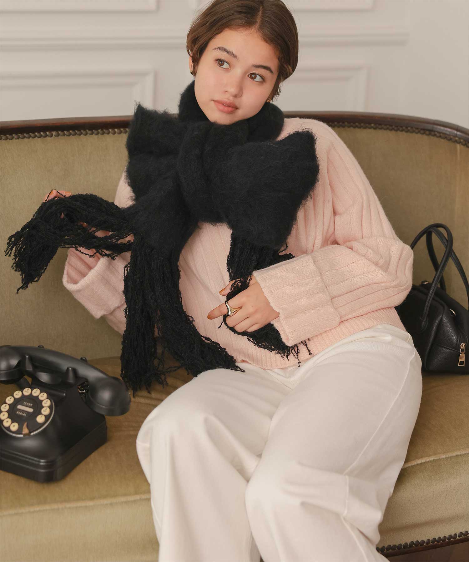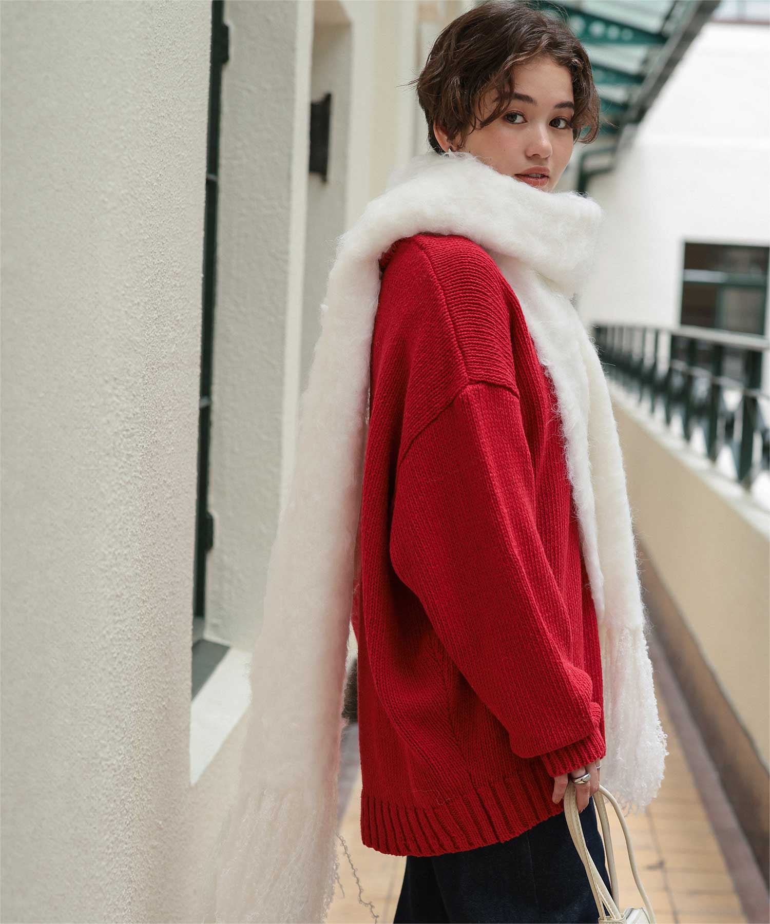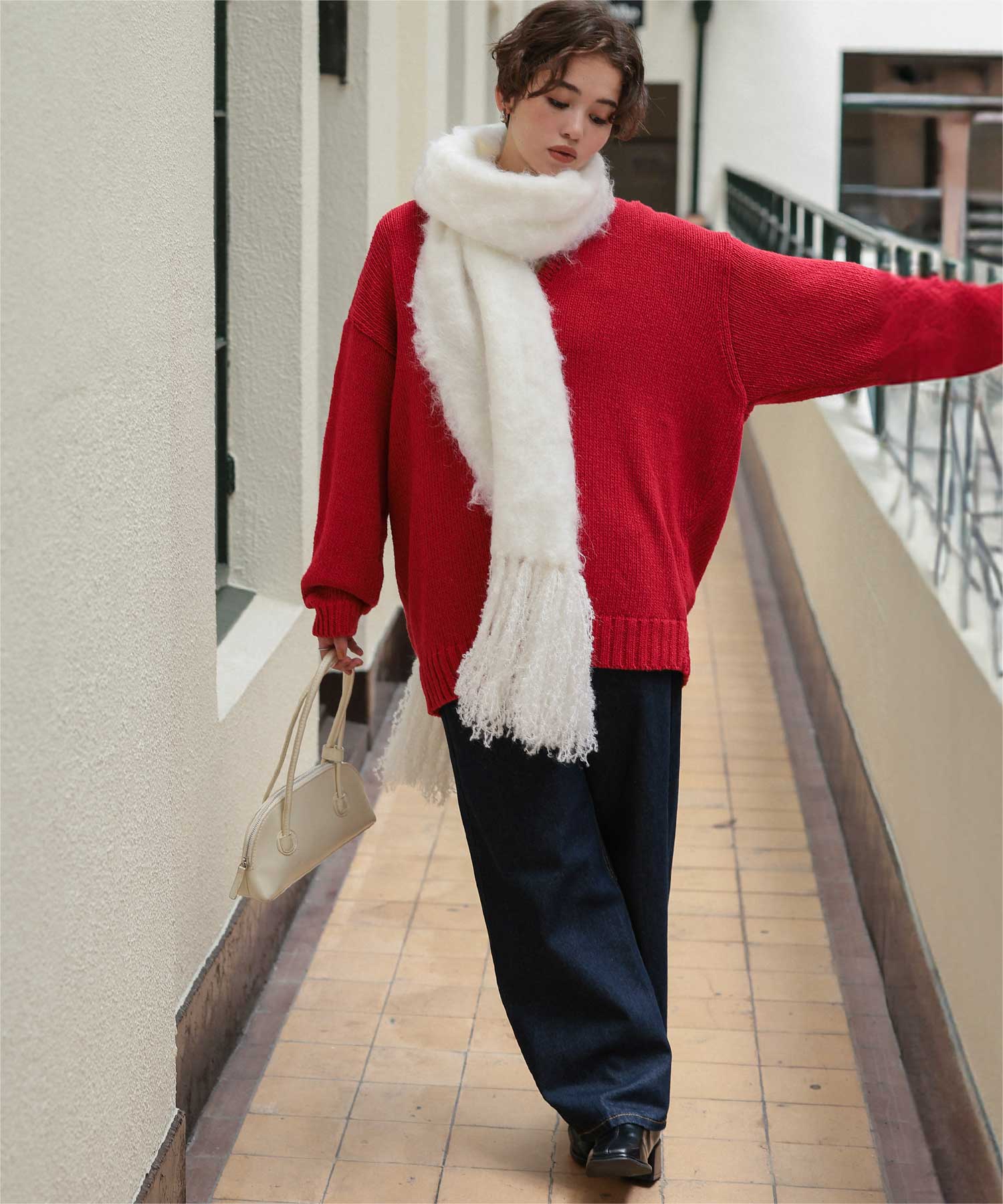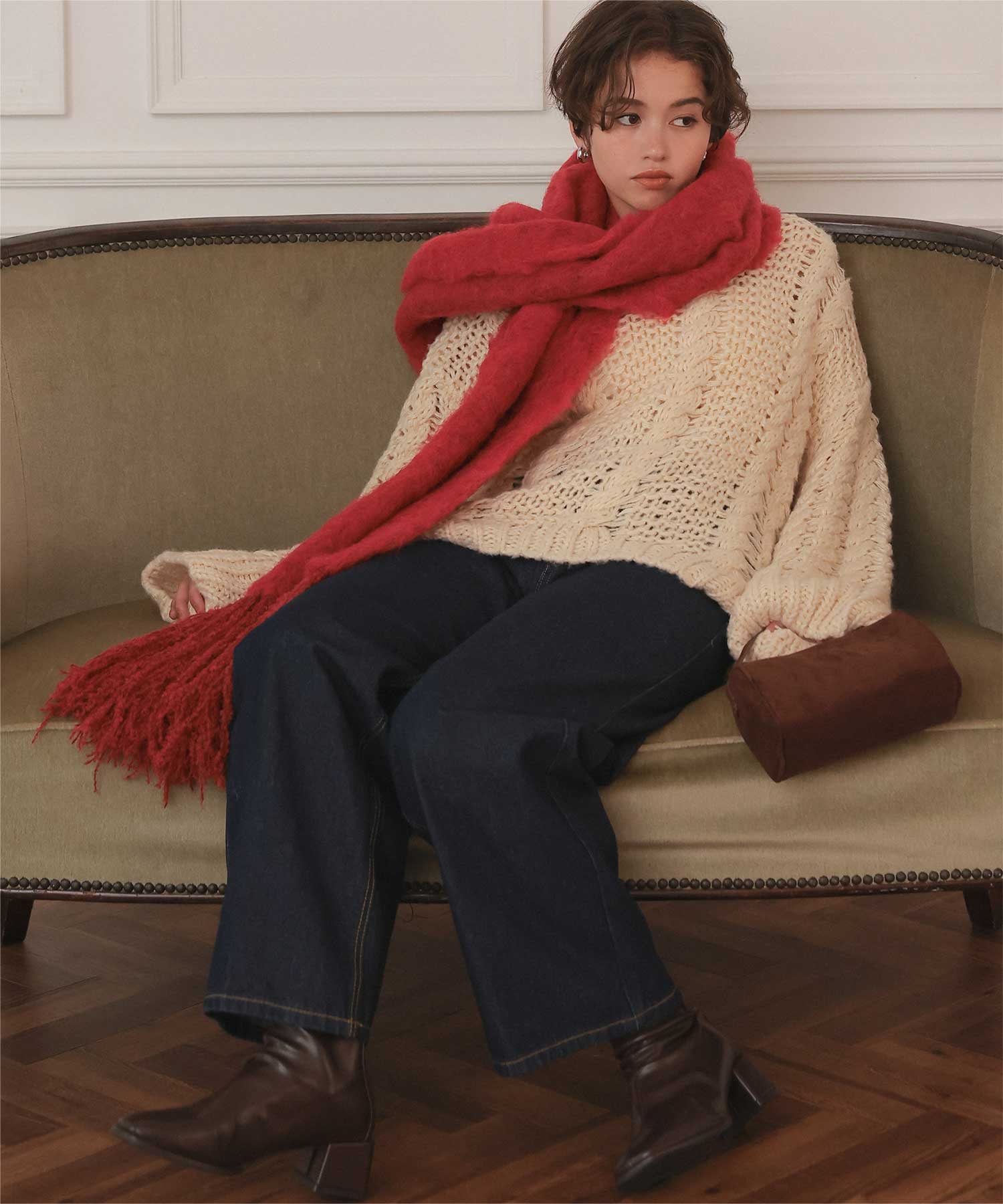 ・ふんわりとしたシャギー素材で柔らかく、暖かさとトレンドを両立したマフラー