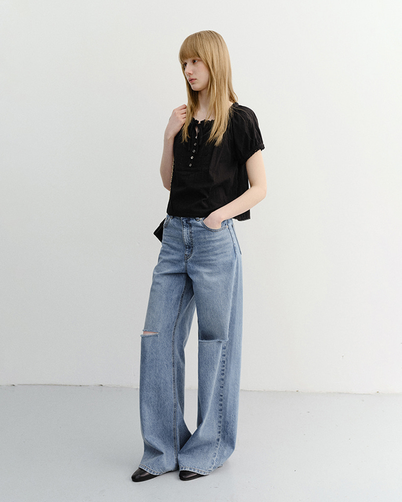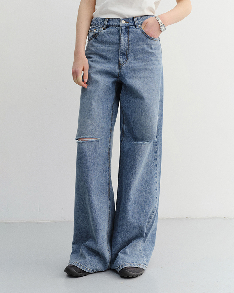 DAMAGED WIDE JEANS CLASSIC BLUE_UDPA6B233B2