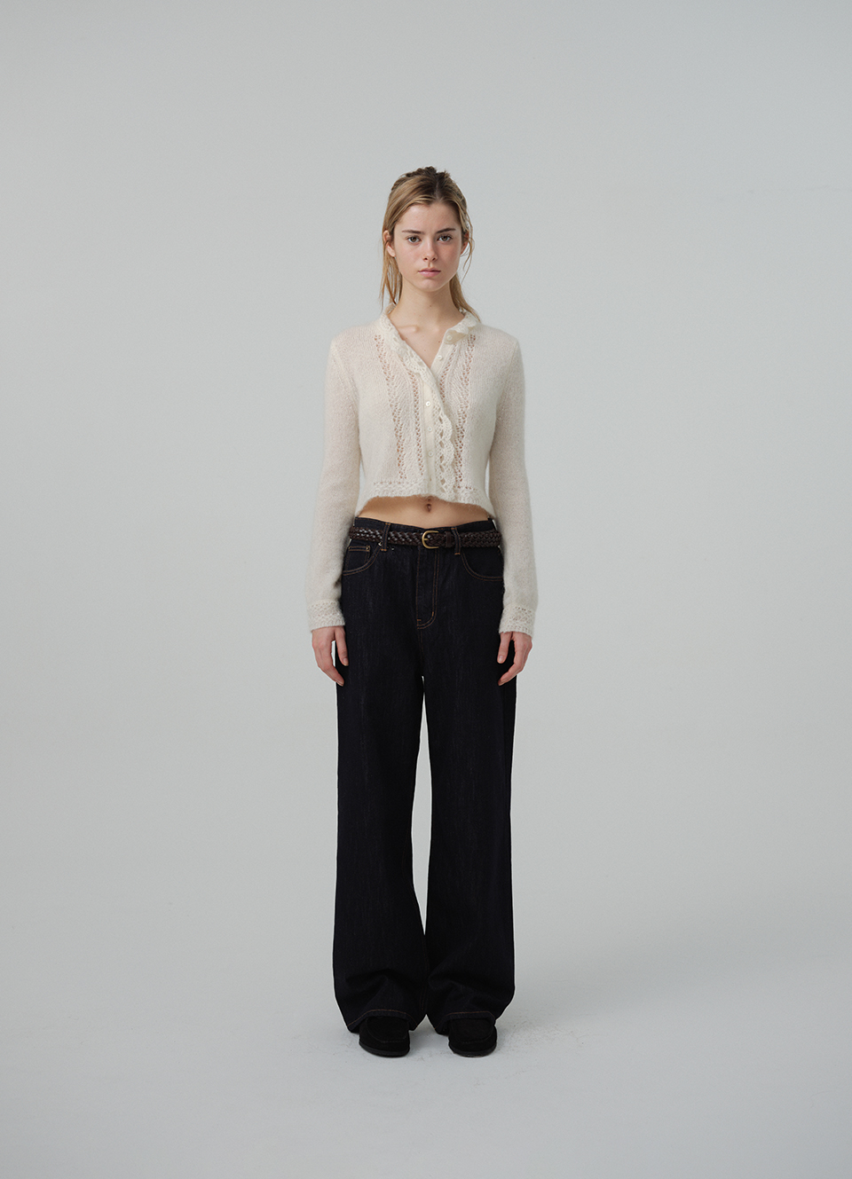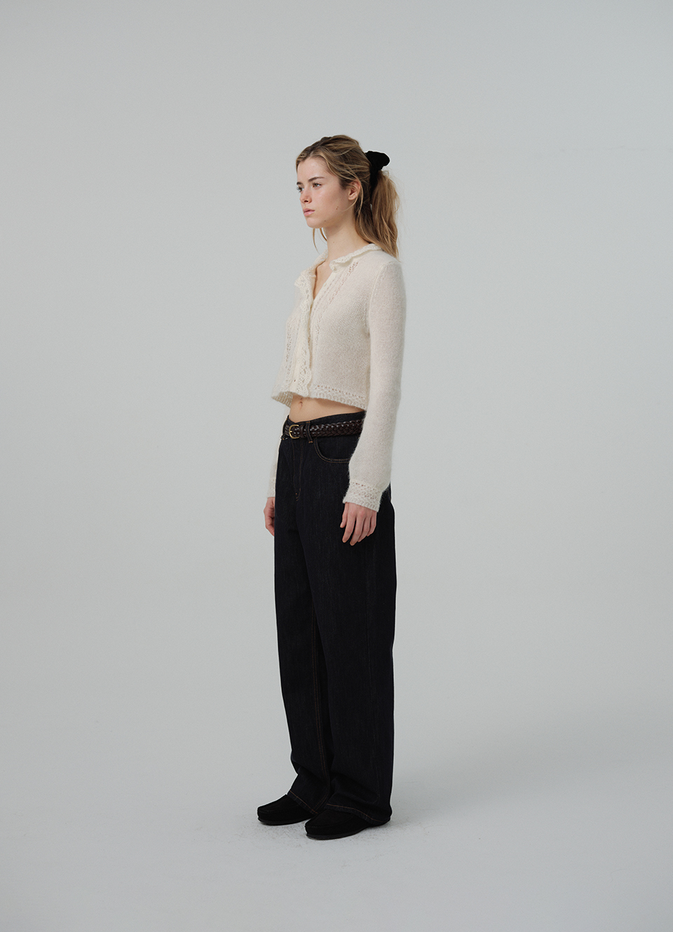 クロップド丈のショートデザイン、フリルデザイン、レーストリミングなど、女性らしいディテールがポイントです。