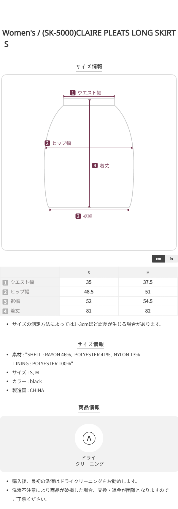 (SK-5000)CLAIRE PLEATS LONG SKIRT S
